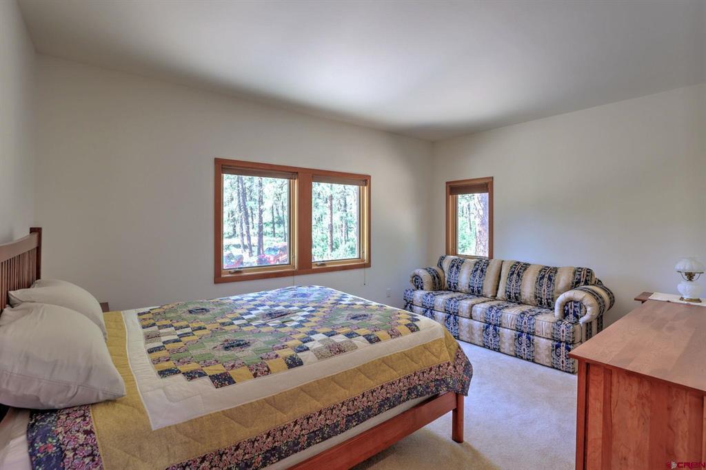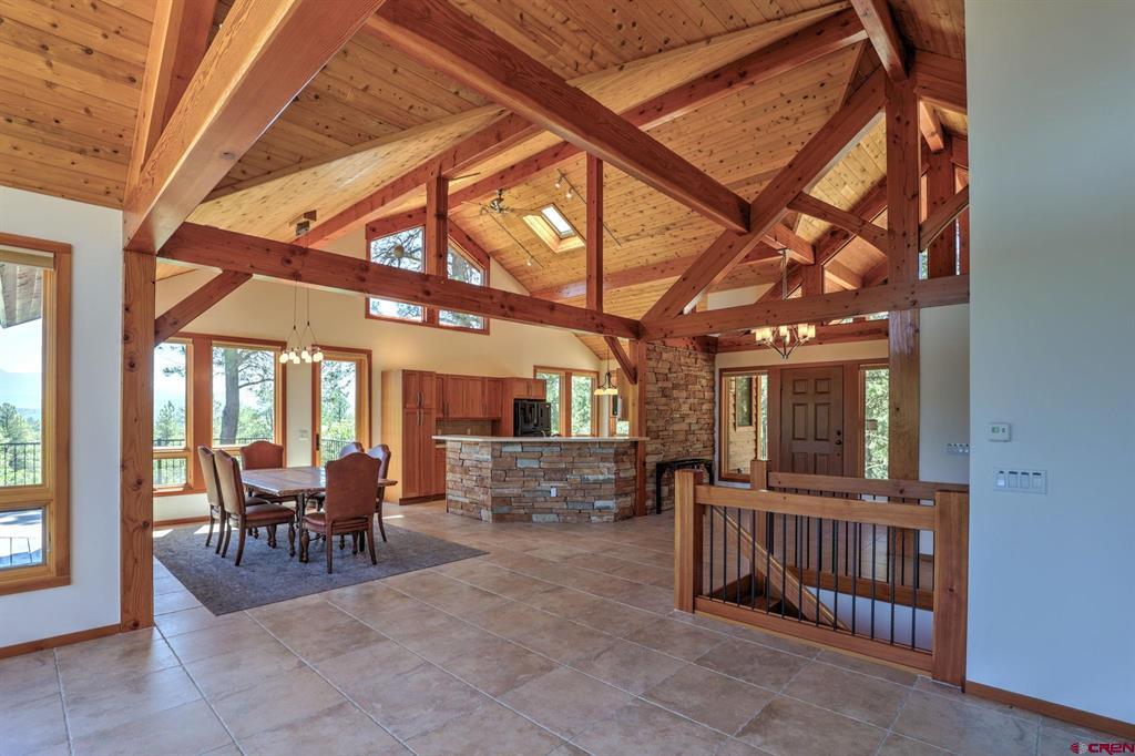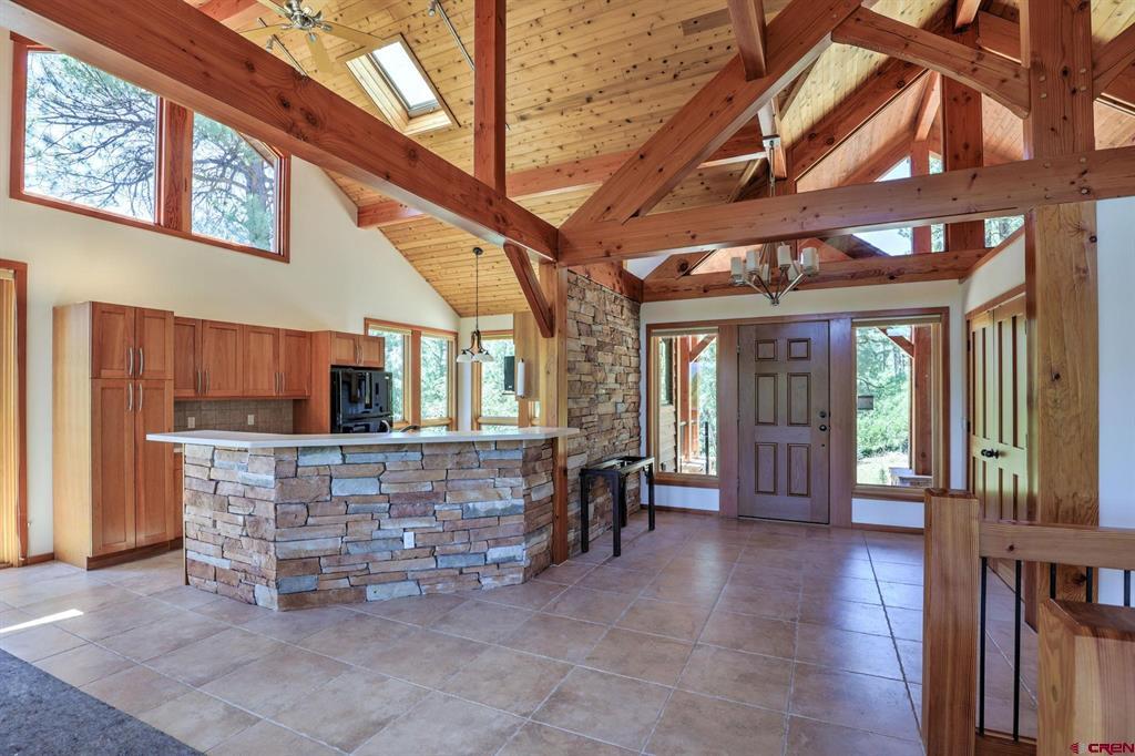 Extremely well-built timber frame home sitting on 36 gorgeous acres with fantastic mountain views. Very private location only three miles from Pagosa Springs. Property is not in a subdivision and has no CC&Rs, but does have city water. Property is 80 percent wooded and 20 percent meadow with no neighbor in sight. If you enjoy viewing wildlife, you are in for a treat. You will have to share your estate with lots of deer, elk, and turkey. The home itself has all sorts of upgrades. The timber frame beams and trim are made of Douglas Fir. The Wood-Mode cabinets are cherry. The floors are tile and the heating is in floor radiant. The countertops are solid surface. The main level has a large great room that goes out to a beautiful deck, and down the hall, there are two master suites and a third bedroom that needs a closet. Downstairs, is a multi choice room, which could be a mother-in-law quarters, a man cave, or an additional bedroom. This space has its own outside entrance, a bath, and plenty of additional plumbing for a kitchen, bar, or an additional bathroom. The septic system is authorized for four bedrooms. The home is priced well below today's replacement cost. Home has been pre-inspected as well as radon tested.