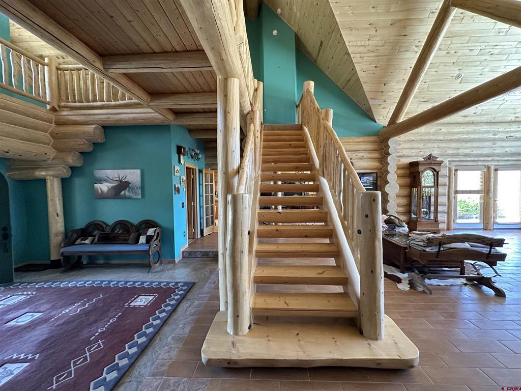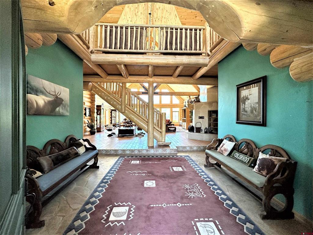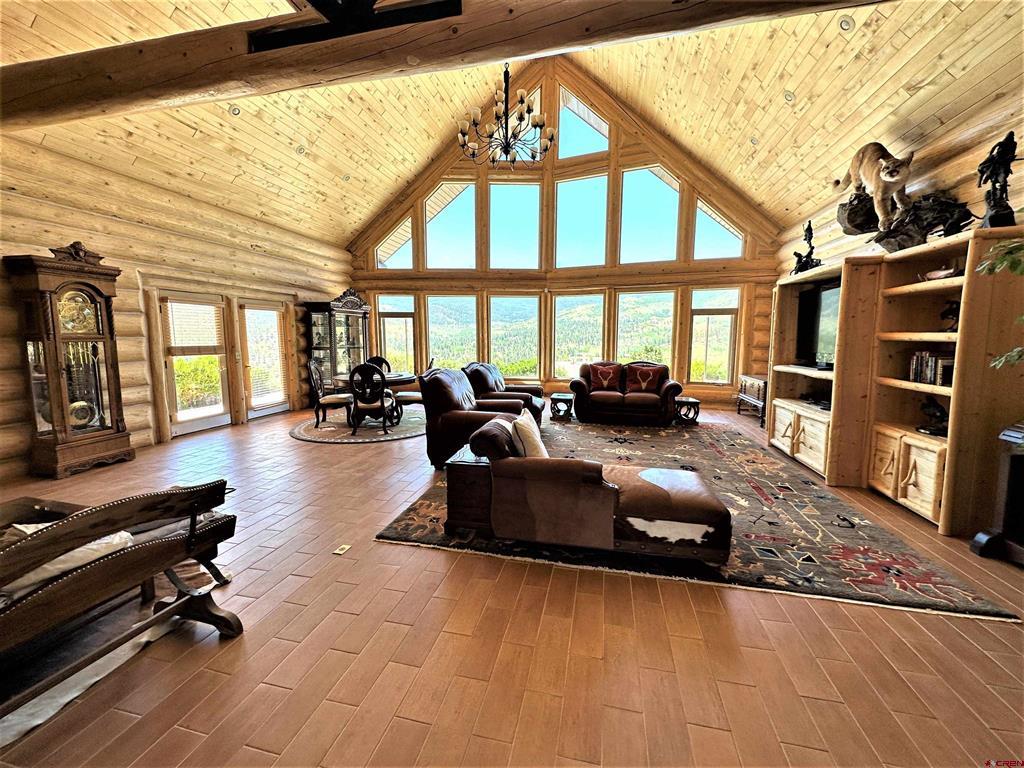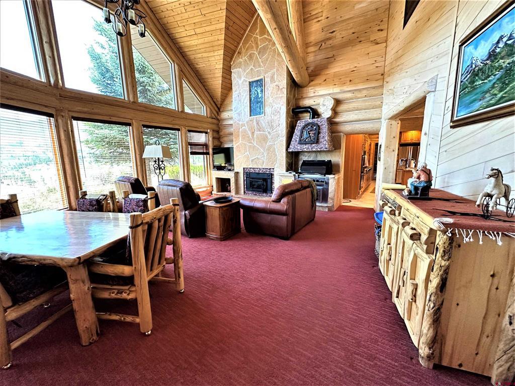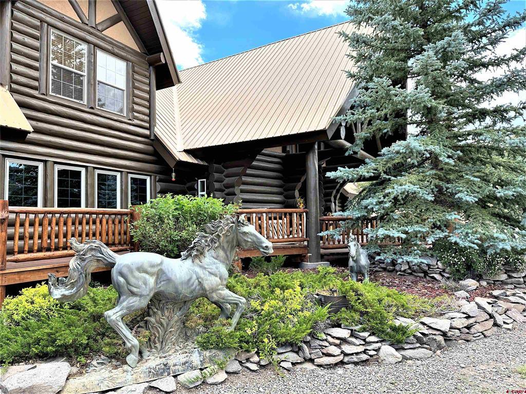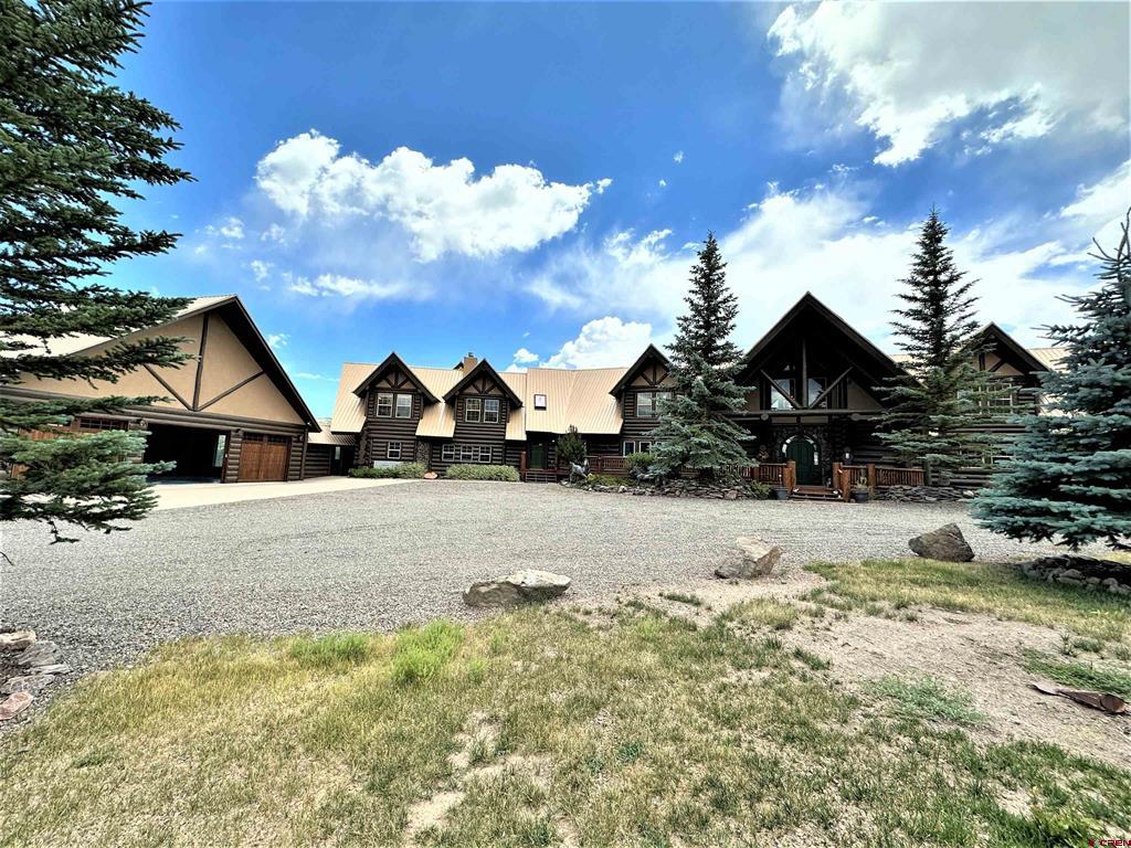 Breathtaking custom log home in the exclusive locked gate community of Willow Park. The home living area is approximately 7354 square feet with another 1830 square feet of garage and upstairs storage room, totaling almost 9200 square feet under roof. The home sits in a location with unparalleled views of the Sangre de Cristo mountains and the San Juan mountains. The home has five bedrooms (several with propane fireplaces), six bathrooms with several living/family rooms, a large gourmet kitchen with granite countertops, a beautiful and spacious formal dining room, numerous decks and a flagstone patio for outdoor entertaining. The property is professionally landscaped with many species of trees and even has a small pond and walking bridge and gardens to enjoy in the summer. The property is in the very secure subdivision of Willow Park and is a short distance to fishing, skiing, hunting, hiking, four wheeling and golf! There is an excellent well (25 gallons per minute when drilled) with Augmentation certificates for outside watering. This one checks ALL the boxes!! Shown by appointment to pre-qualified buyers only.