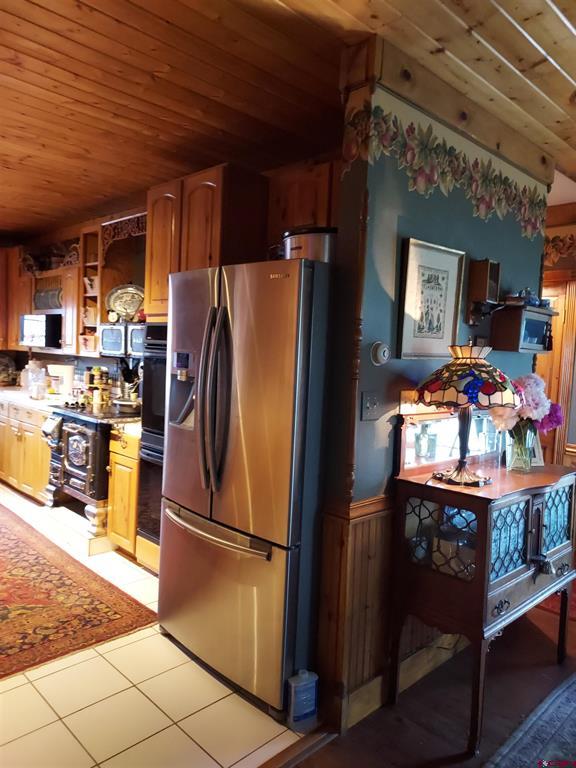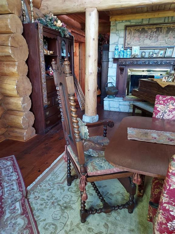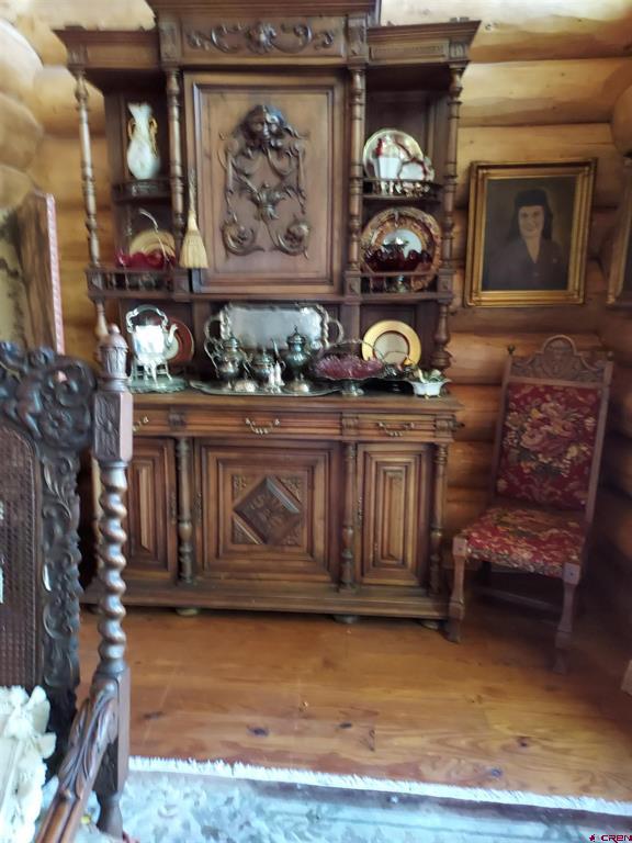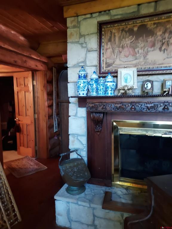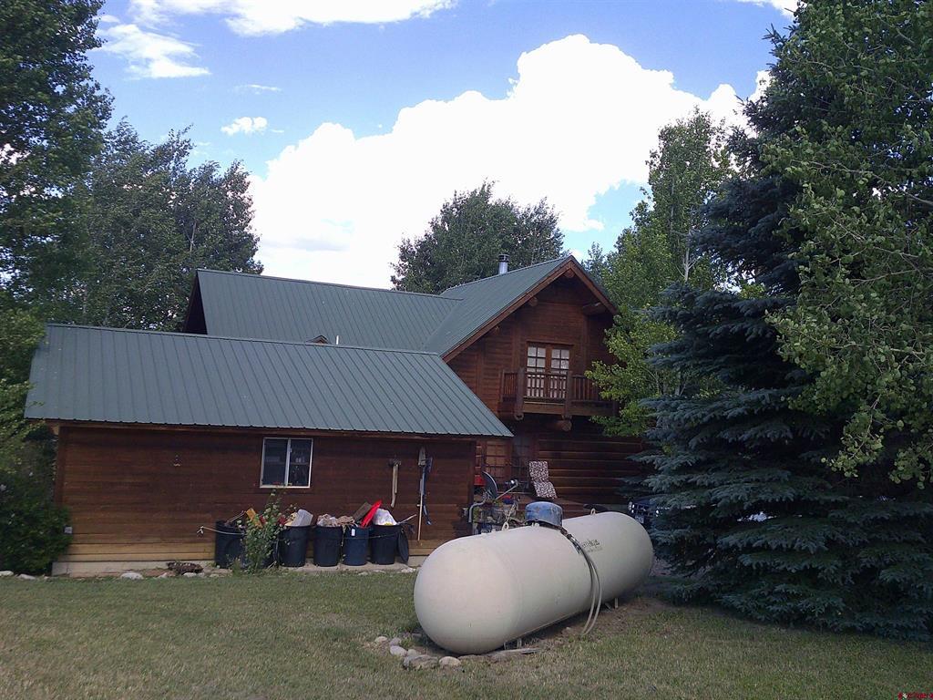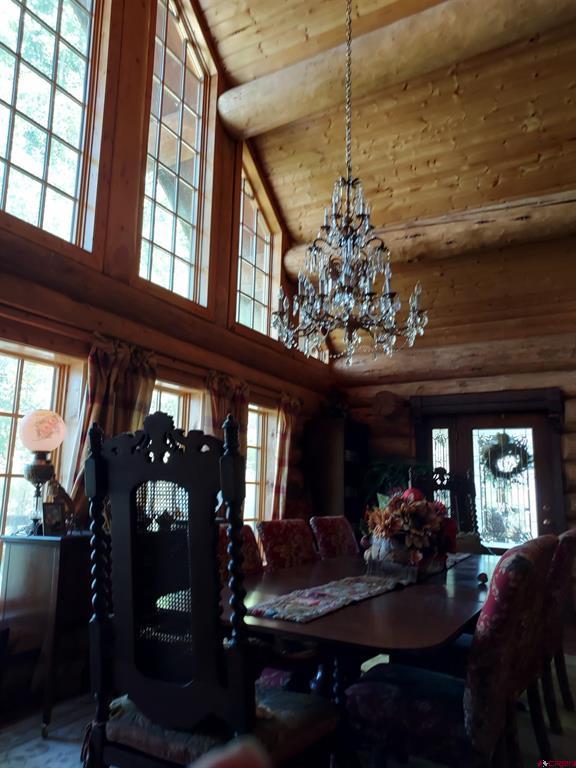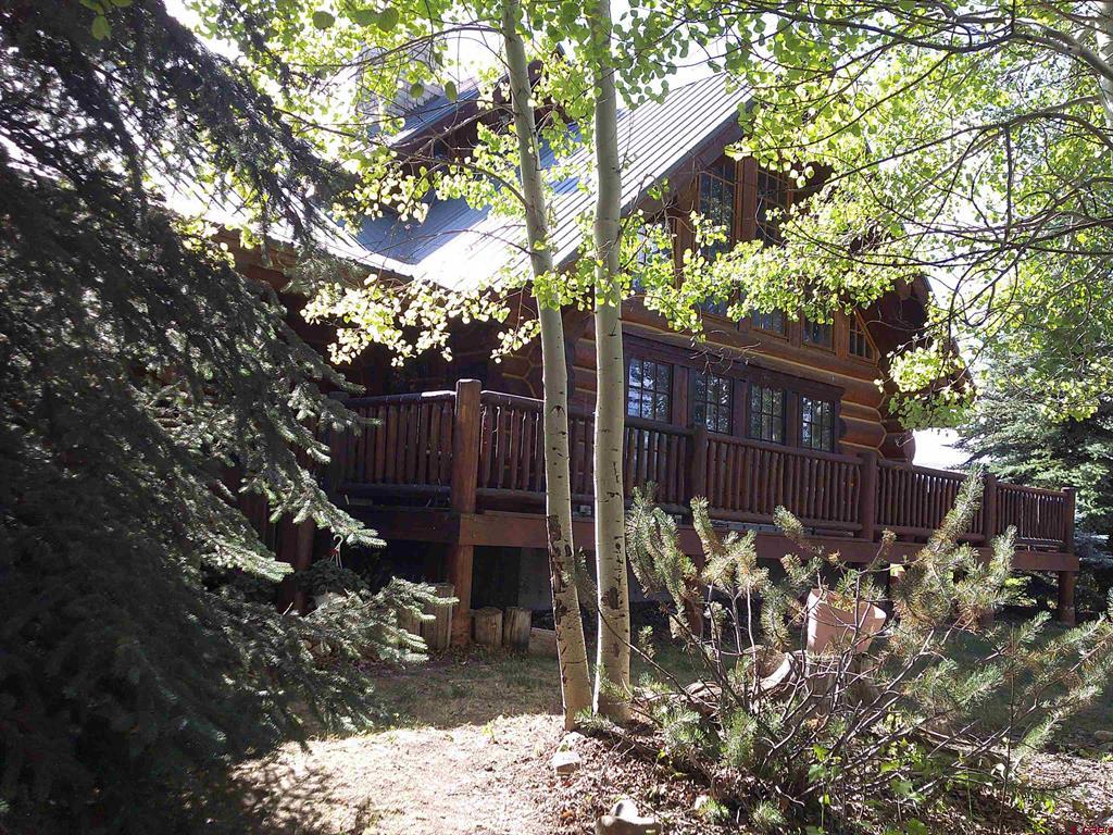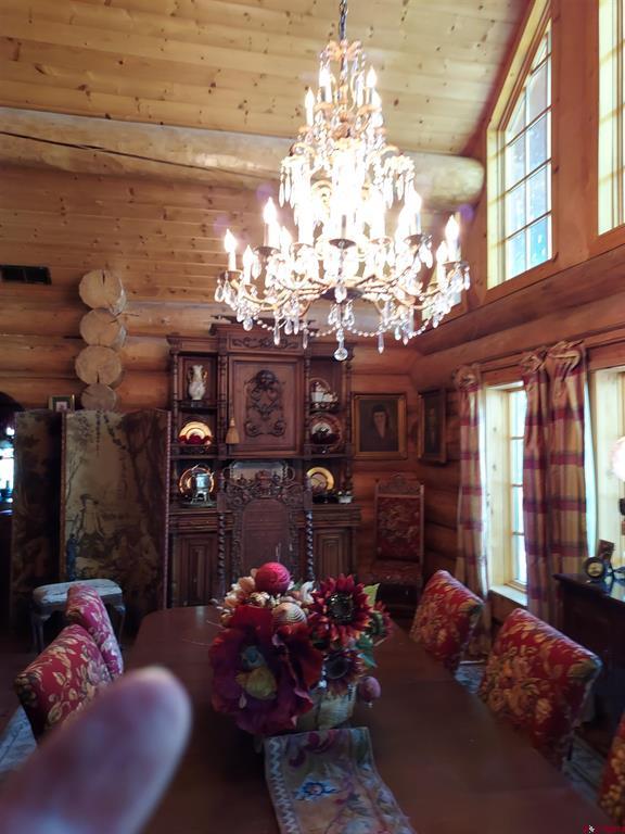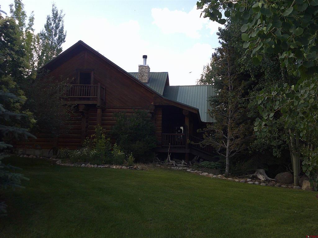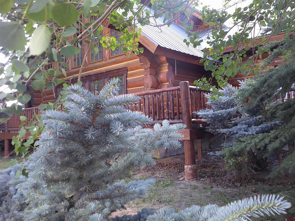Beautiful Engelmann Spruce log home surrounded by huge magnificent Blue Spruce, Pine and Aspens with irrig. ditch in back of property for hay crop or horses! A one owner, one of a kind home that was especially designed for this nearly 4 acre meadow lot with most outstanding views of the entire valley! Huge spacious rooms seemed to be the requirement in this outstanding floor plan. Outstanding fully appliance d kitchen with fully restored Majestic electrified antique range, plus double oven & long pass-through eating bar. Very luxurious baths. Lots of very antique lighting in home which may stay at this price. Some antique furniture in home may be negotiable or "For Sale". Beautiful custom built two way fireplace with custom built mantels. Many outstanding features in this home which you need to see to appreciate.