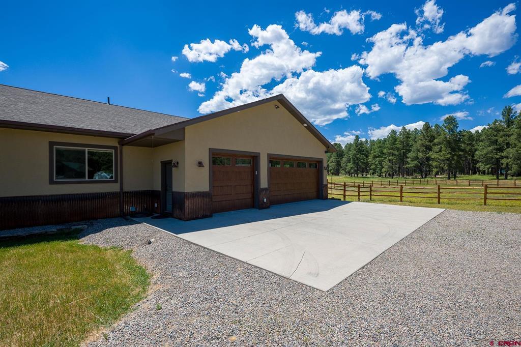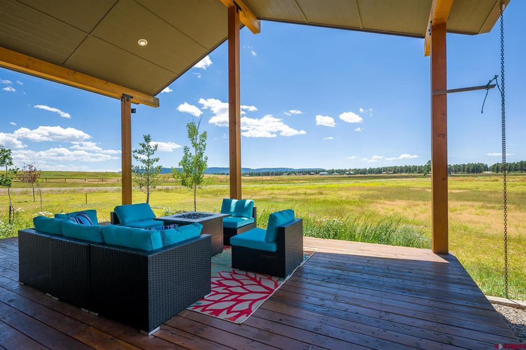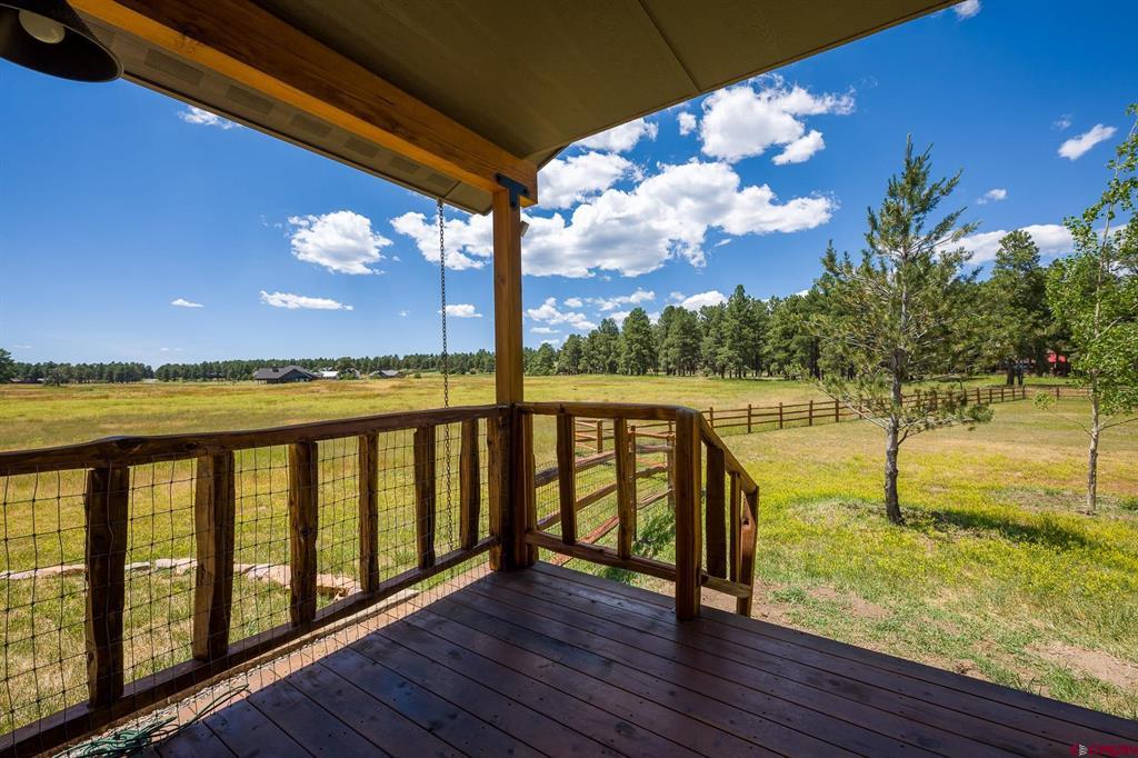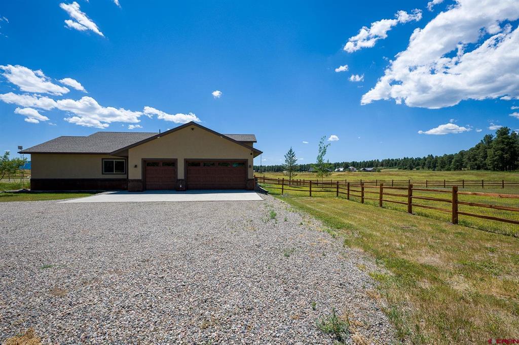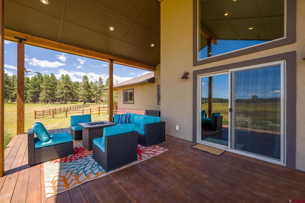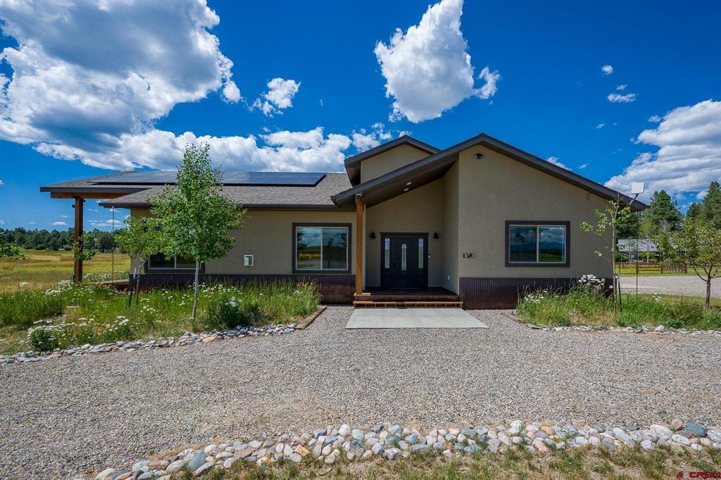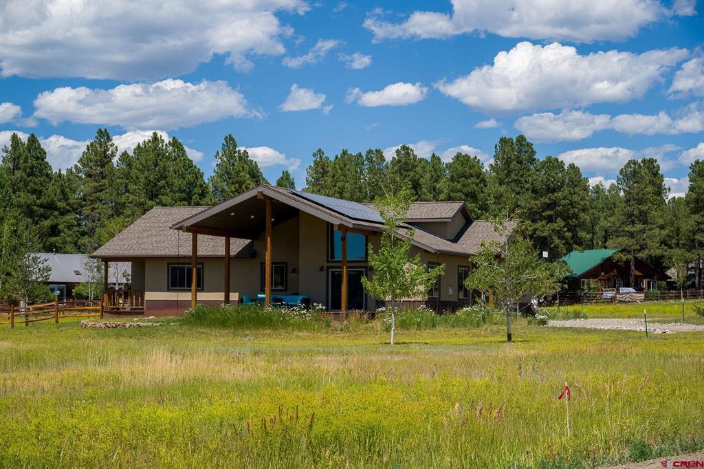 This beautiful, hardly-lived-in, partially furnished home is located in The Ranch Community, with large open spaces, mountain views, and only 5 minutes to the "core area" of town (grocery store, restaurants, etc). Open kitchen includes upscale finishes, under-cabinet lighting, large island, pot filler faucet over gas stove, walk-in pantry, and direct access to the covered deck for entertaining. Spacious master bedroom with private back patio. Master bath with double sinks, premium shower, and rare dual walk-in-closets. Guest bedrooms and shared bathroom can be screened from the living room by a beautiful, hand-crafted barn-style door offering excellent privacy for your guests. Fenced back yard is ready for your pets. Modern, energy efficient home with Solar PV system (owned not leased). Over the last 12 months solar has fully offset seller's electricity usage (part time occupancy). Exterior cameras, hard-wired security system, and Nest thermostat system with central A/C make this a great option for the owner who wants to control and monitor the home remotely. Circular driveway, separate parking area, and true three-car garage give you plenty of space for guests and toys. This home sits on 1.19 acres and borders 160+ acres of open space with over 2.25 miles of dedicated walking trails, all accessible right out your front door. As part of Pagosa Lakes, access the Rec Center, private fishing, clubhouse, and many additional miles of hard-surface walking trails and sidewalks. This home is 10 minutes to Pagosa Hot Springs, and 40 minutes drive to Wolf Creek Ski area, with "the most snow in Colorado". This home won't last long, so schedule your showing today.