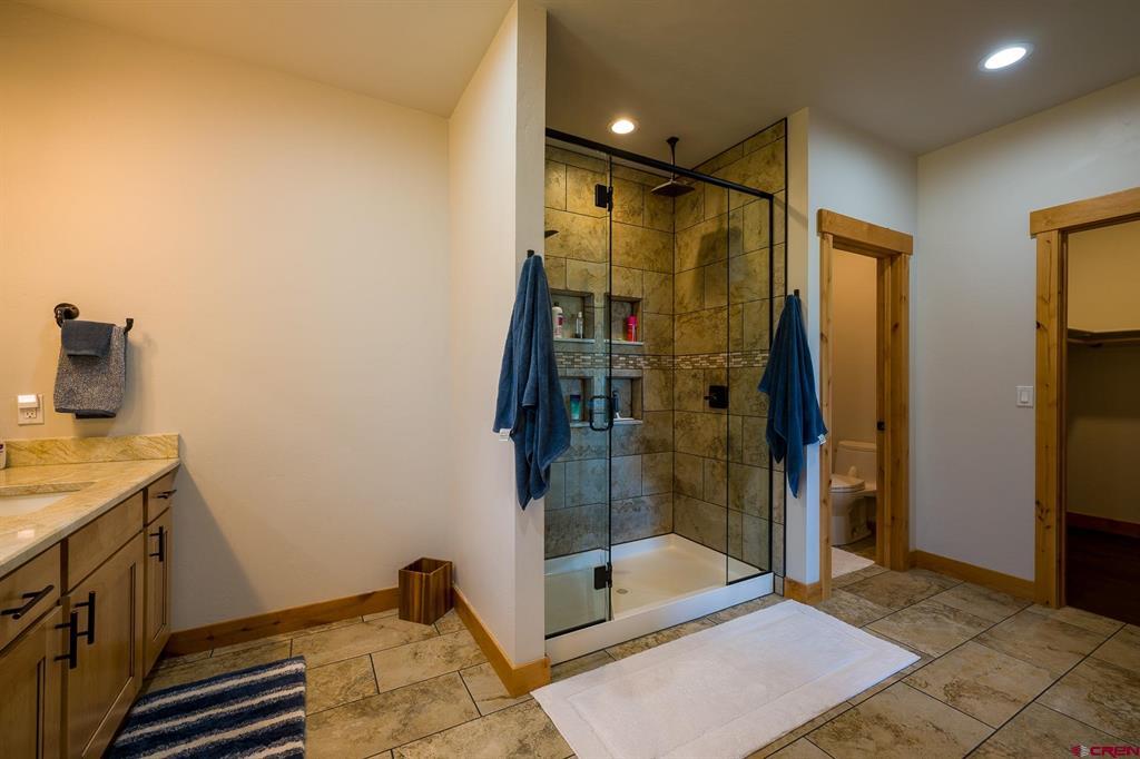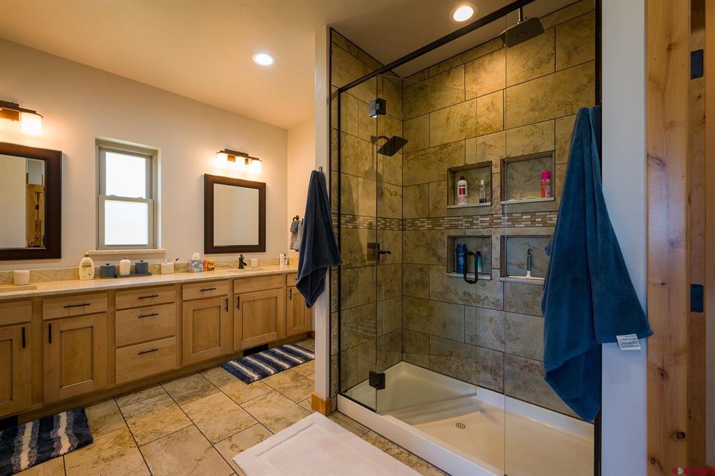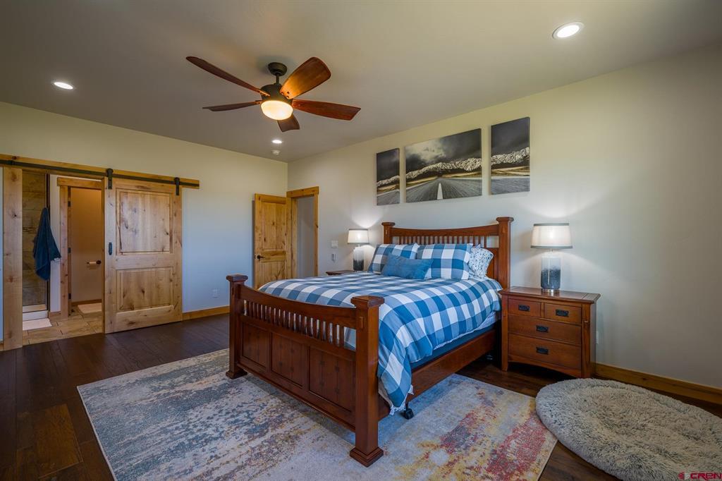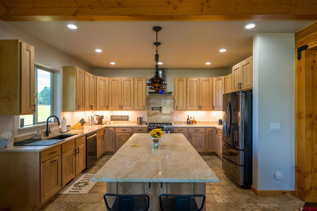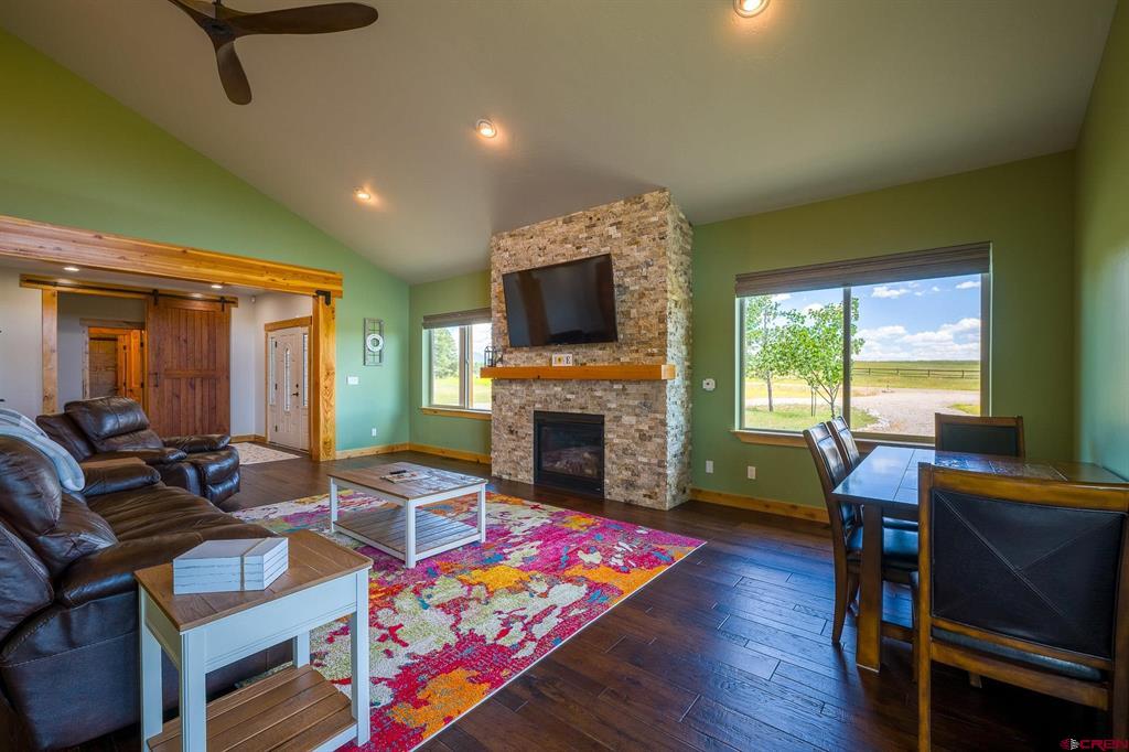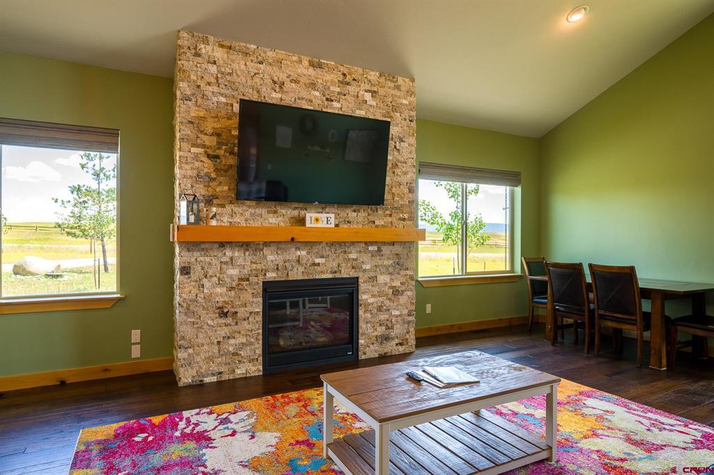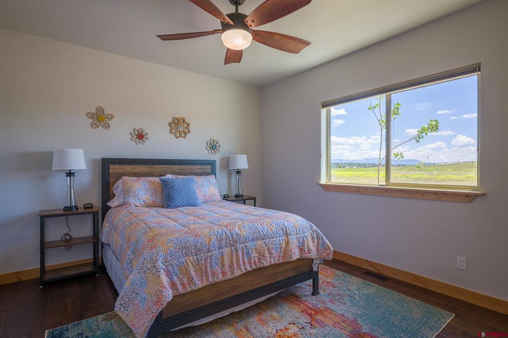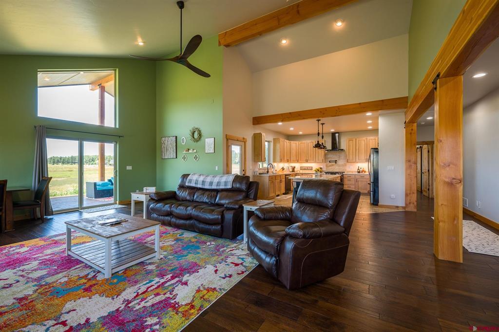 This beautiful, hardly-lived-in, partially furnished home is located in The Ranch Community, with large open spaces, mountain views, and only 5 minutes to the "core area" of town (grocery store, restaurants, etc). Open kitchen includes upscale finishes, under-cabinet lighting, large island, pot filler faucet over gas stove, walk-in pantry, and direct access to the covered deck for entertaining. Spacious master bedroom with private back patio. Master bath with double sinks, premium shower, and rare dual walk-in-closets. Guest bedrooms and shared bathroom can be screened from the living room by a beautiful, hand-crafted barn-style door offering excellent privacy for your guests. Fenced back yard is ready for your pets. Modern, energy efficient home with Solar PV system (owned not leased). Over the last 12 months solar has fully offset seller's electricity usage (part time occupancy). Exterior cameras, hard-wired security system, and Nest thermostat system with central A/C make this a great option for the owner who wants to control and monitor the home remotely. Circular driveway, separate parking area, and true three-car garage give you plenty of space for guests and toys. This home sits on 1.19 acres and borders 160+ acres of open space with over 2.25 miles of dedicated walking trails, all accessible right out your front door. As part of Pagosa Lakes, access the Rec Center, private fishing, clubhouse, and many additional miles of hard-surface walking trails and sidewalks. This home is 10 minutes to Pagosa Hot Springs, and 40 minutes drive to Wolf Creek Ski area, with "the most snow in Colorado". This home won't last long, so schedule your showing today.