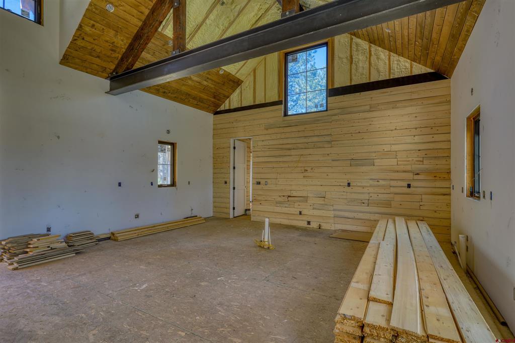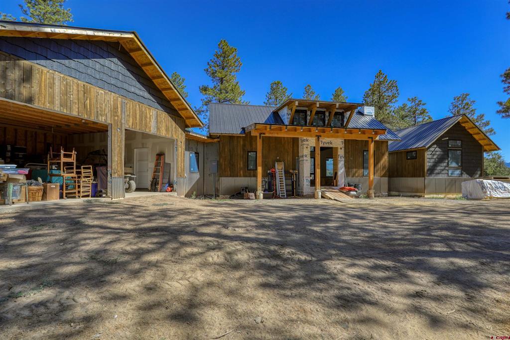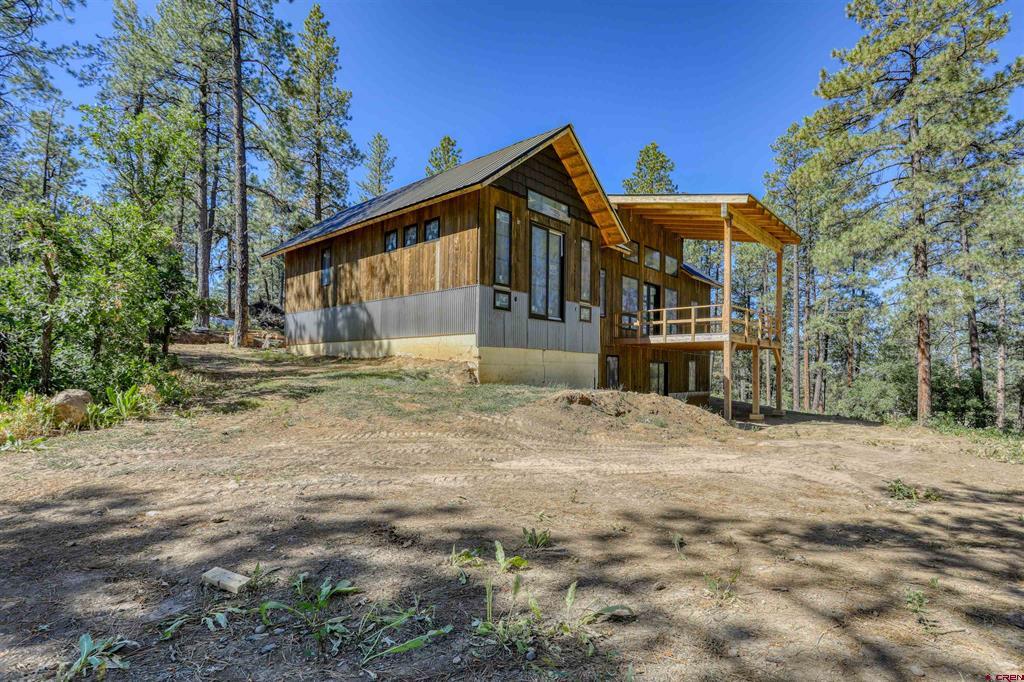 Opportunity seekers or investors don't let this one get-away. Sitting on an 3.46 acres backing to National Forest this brand new Mountain Modern home is ready to be COMPLETED. Appraisal says 70% complete and ready for finishes and your personal touches. The home has ample covered decks where you can enjoy the mountain views and lots of pine trees for a true Colorado experience. Your new home will feature 2,320 heated SF with 3 bedroom, 2 full bath, powder room and a 640 s.f 2 car garage. The main level of the home has an open great room, kitchen/dining room and built-in fireplace (not installed) that all opens onto the 280 s.f of covered deck. The primary bedroom is on the main level along with the utility/laundry room, a half bath for guests. The lower level has a family room and two bedrooms, along with a safe room and root cellar/storage. The home is ready to be finished and enjoyed. Located in a very desriable area on the way to Wolf Creek Ski Area but close to downtown Pagosa Springs for all the conveniences town has to offer.