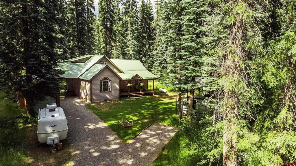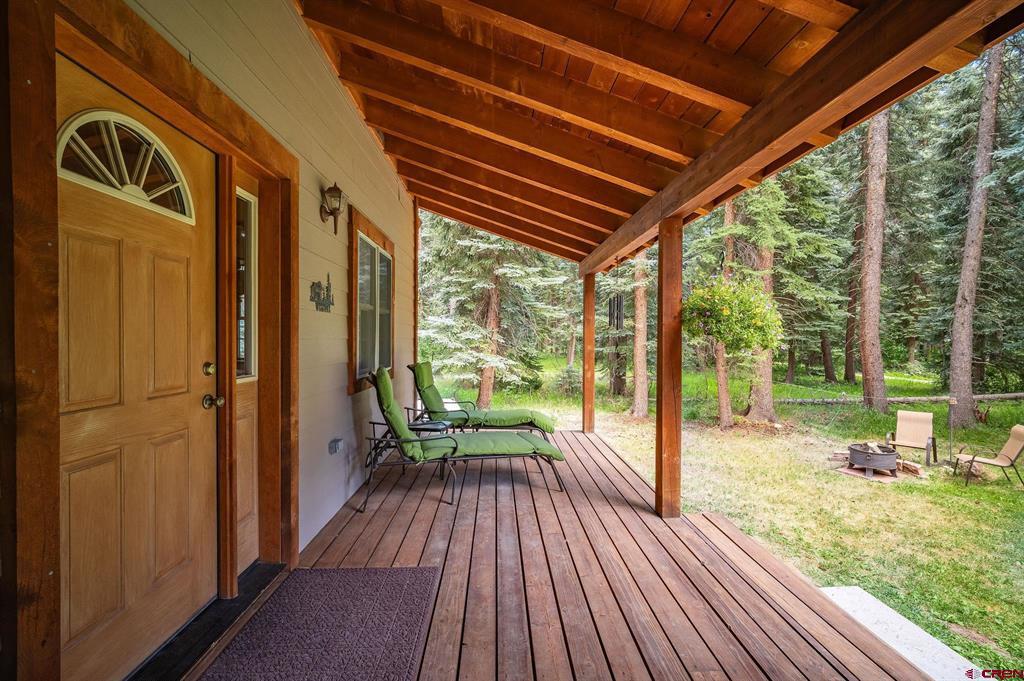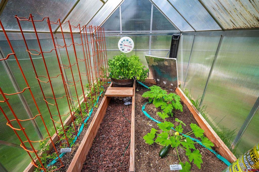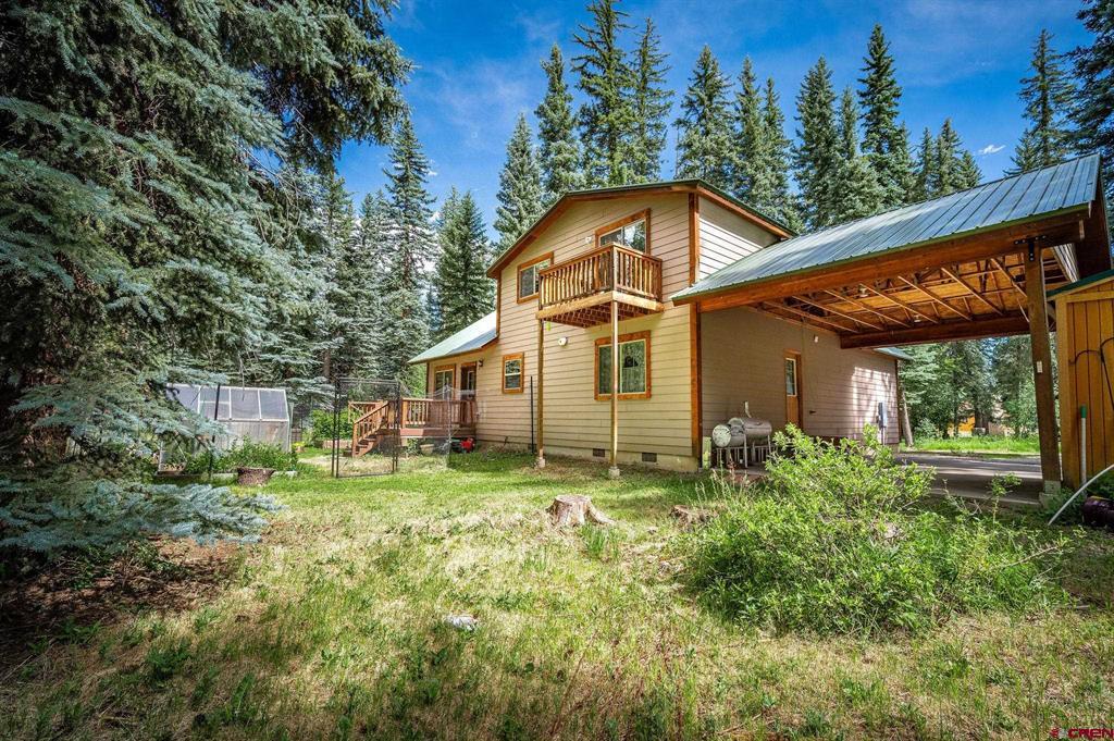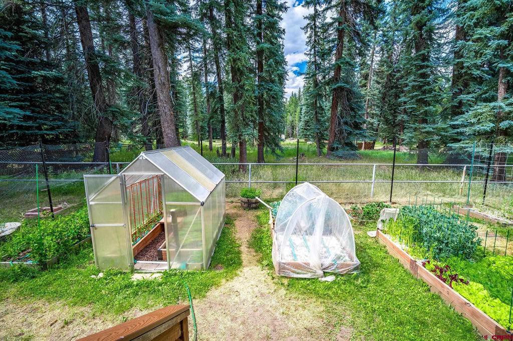 This beautiful, well-maintained custom home nestled in the pines is ready for you to enjoy year round or as a vacation home! You’ll enjoy the quality of work throughout this one-owner home and notice the extra mile that the builder took to make this home a gem. The kitchen has beautiful solid wood custom cabinets and a spacious pantry. The hand-hewn log stair railing, spindles, and wood trim throughout are made from logs harvested from the property when the home was built. The spacious main bedroom suite with a large walk-in closet is on the ground floor. On the second floor you'll be delighted by a third bedroom, bathroom and extra space that could be used as a home office, den, game room, etc. This space leads to the upper deck allowing the outdoors to be enjoyed from the second floor. You'll find fresh veggies from the raised garden beds and greenhouse that has a timed water system in place. The Instant Navien Propane Water Heater is a great plus as well as the Williams heater in the living room that efficiently heats the home with minimal expense. A covered carport keeps your vehicle out of the snow and sun and there is room to park an RV! (RV shelter that is in place is negotiable). This property has an excellent well (be sure to taste the water when you view this home!) and easy year-round access, just minutes from Vallecito Lake, hiking, biking and other outdoor activities.