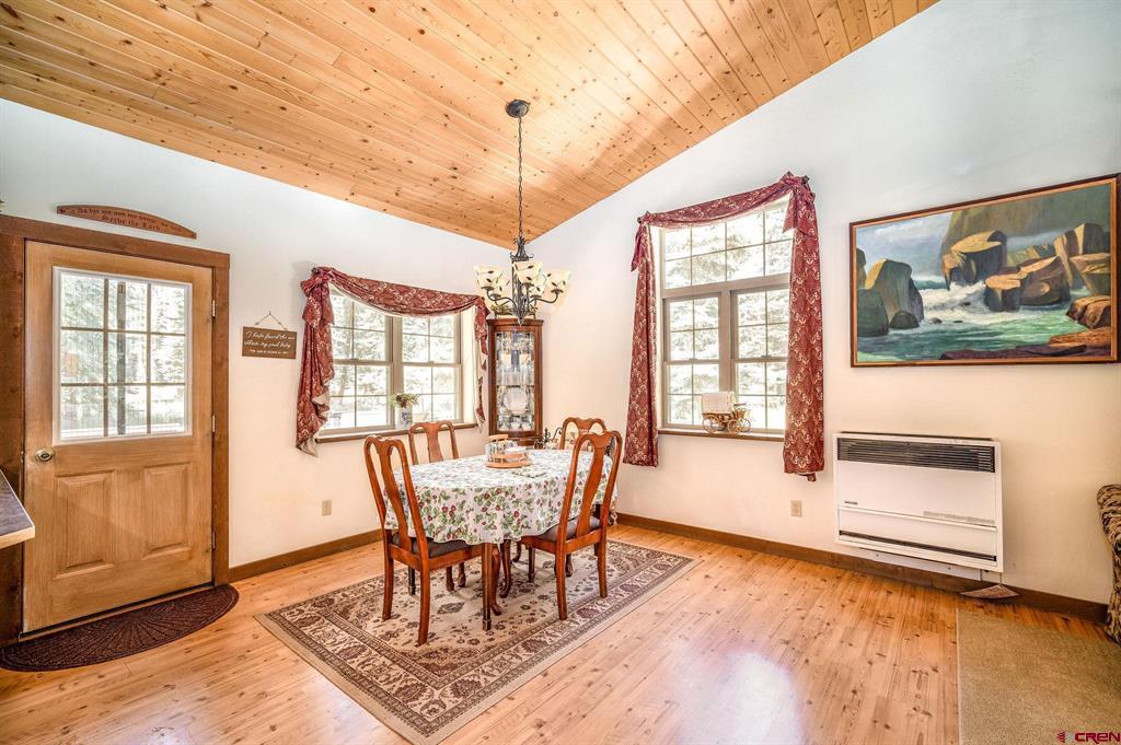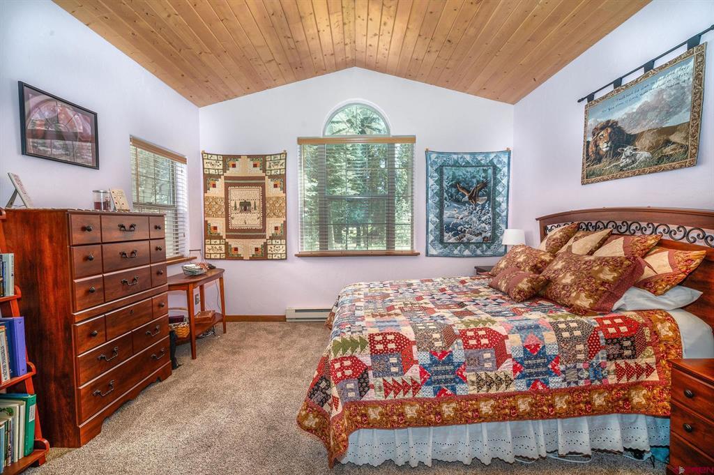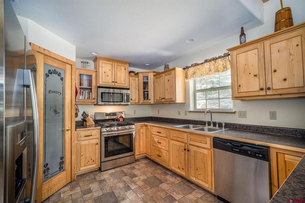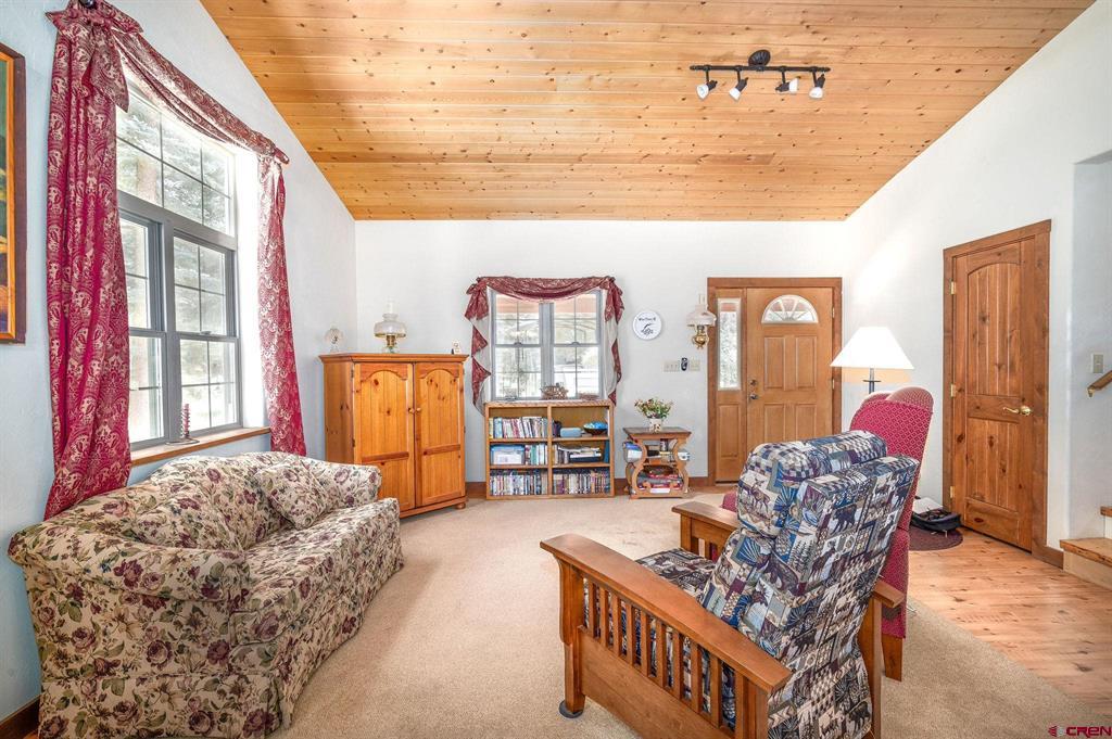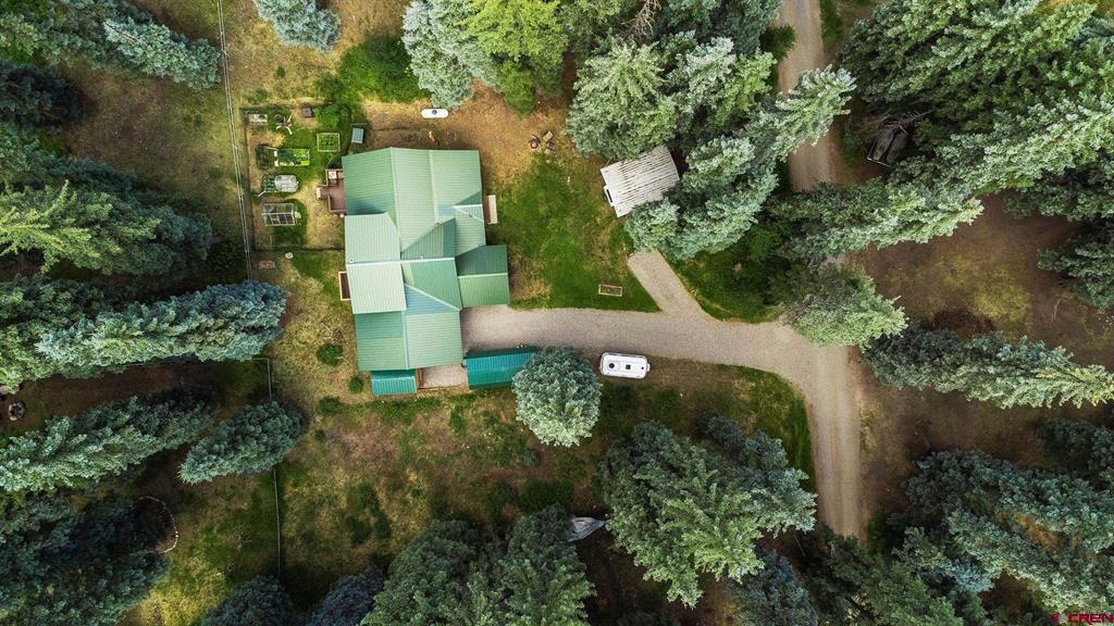 This beautiful, well-maintained custom home nestled in the pines is ready for you to enjoy year round or as a vacation home! You’ll enjoy the quality of work throughout this one-owner home and notice the extra mile that the builder took to make this home a gem. The kitchen has beautiful solid wood custom cabinets and a spacious pantry. The hand-hewn log stair railing, spindles, and wood trim throughout are made from logs harvested from the property when the home was built. The spacious main bedroom suite with a large walk-in closet is on the ground floor. On the second floor you'll be delighted by a third bedroom, bathroom and extra space that could be used as a home office, den, game room, etc. This space leads to the upper deck allowing the outdoors to be enjoyed from the second floor. You'll find fresh veggies from the raised garden beds and greenhouse that has a timed water system in place. The Instant Navien Propane Water Heater is a great plus as well as the Williams heater in the living room that efficiently heats the home with minimal expense. A covered carport keeps your vehicle out of the snow and sun and there is room to park an RV! (RV shelter that is in place is negotiable). This property has an excellent well (be sure to taste the water when you view this home!) and easy year-round access, just minutes from Vallecito Lake, hiking, biking and other outdoor activities.
