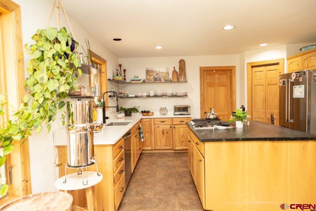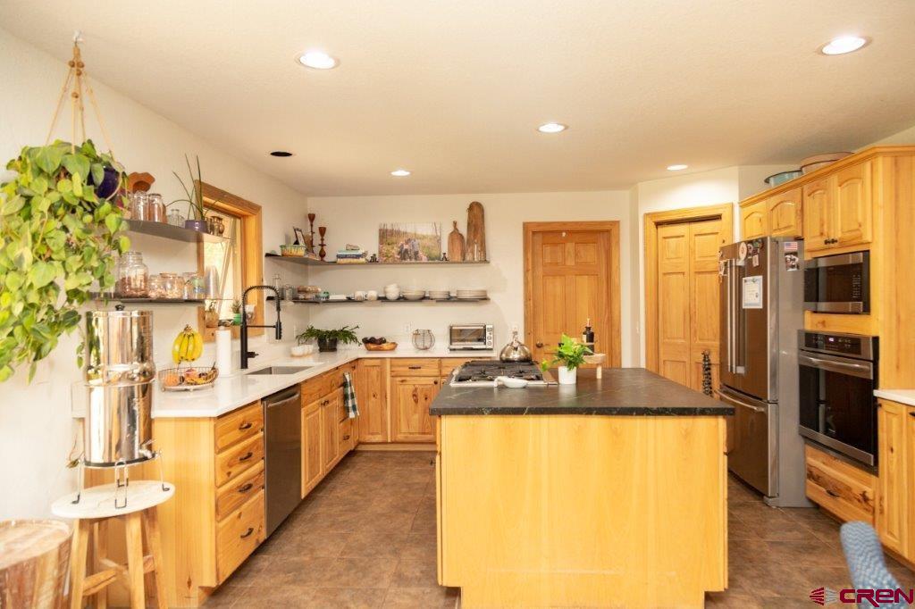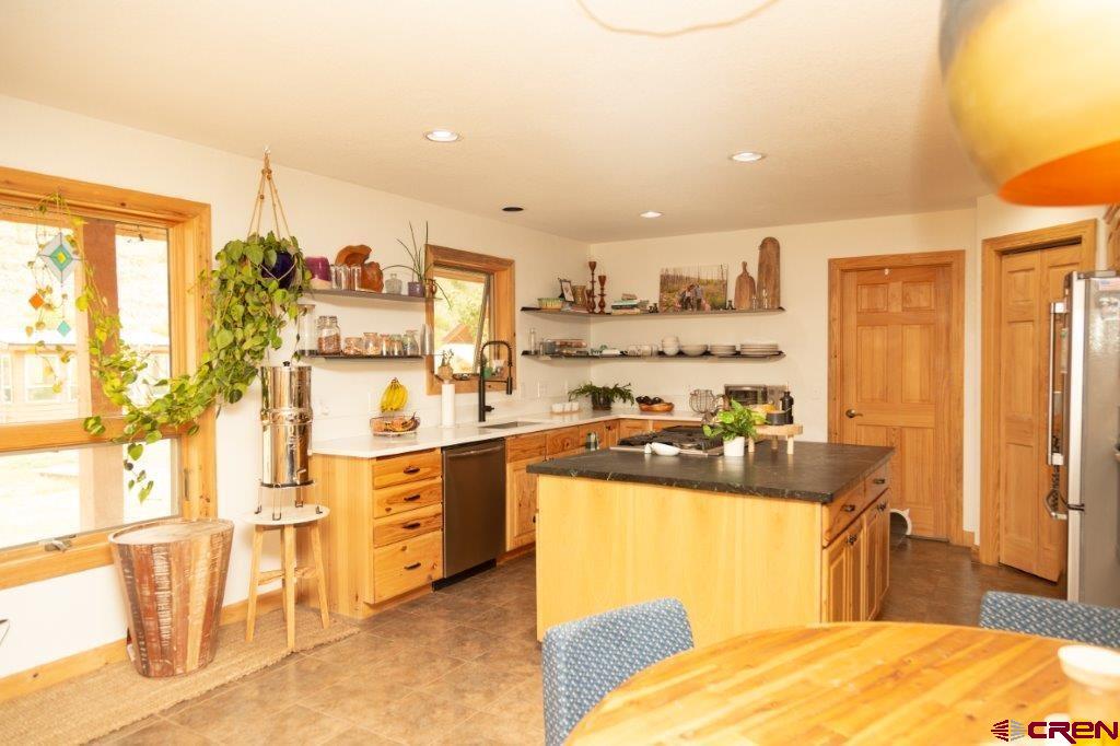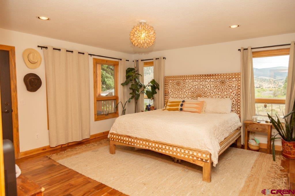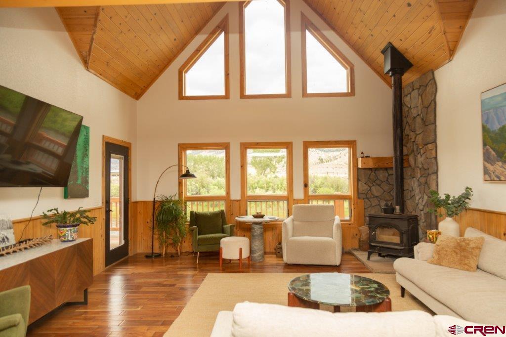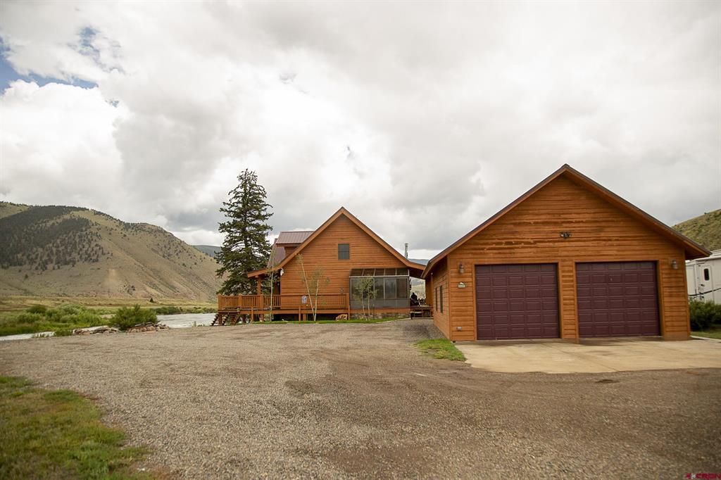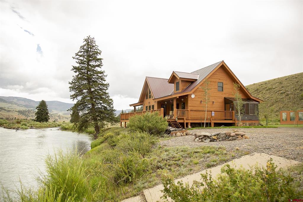 This custom home sits on three acres on the banks of the Rio Grande River with stunning vistas of the river valley. A good fly fisherman’s paradise you might even be able to cast from the porch! There is nothing more soothing and relaxing than listening to the sound of the river, except paired with a nice wine or fine bourbon. This home has had a complete remodel in the past year including a fresh coat of paint throughout, new light fixtures, faucets, washer and dryer. Wow your guests with a gourmet meal prepared in this chef's kitchen complete with new appliances, granite countertops, steel floating shelves, farmhouse sink and new faucet. This four bedroom four bath home has an open concept, kitchen living dining, with cathedral ceilings. The tile flooring is heated from the radiant floor furnace. The primary bedroom is on the main floor with an ensuite bath and features double closets. The suite opens to the river porch for enjoying the sounds of the Rio Grande. A smaller bedroom and bath are also housed on the main floor together with the spacious laundry room and sunroom. Upstairs you find two large bedrooms, each with its private bathroom and a loft living area. The two car oversized garage is detached and includes a shop space. There are two greenhouses out back, seating area with a firepit and ample space for enjoying the outdoors. River houses like this dont come available very often so give us a call and take a look at this beauty!