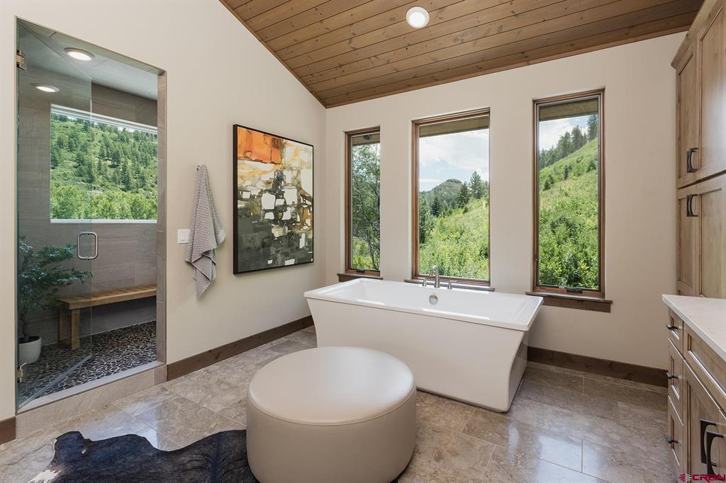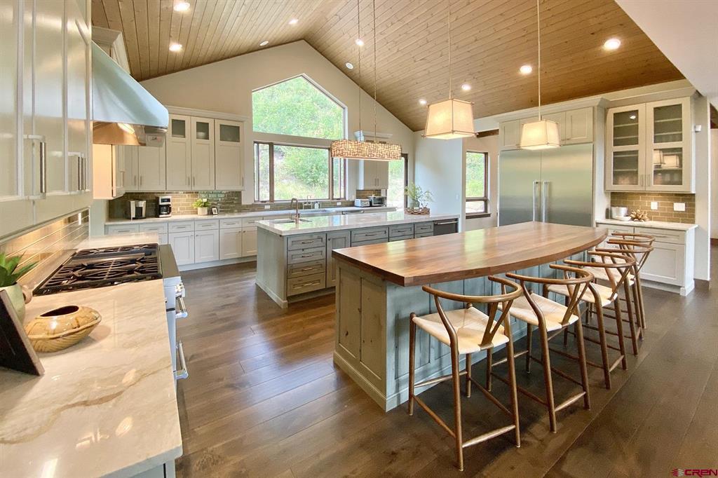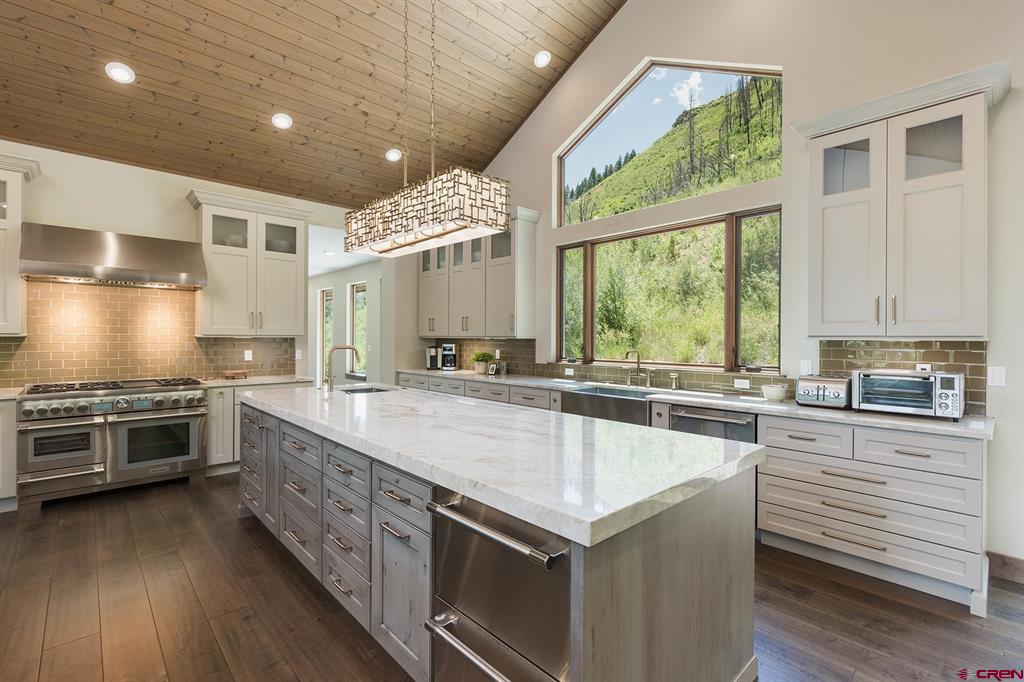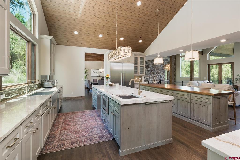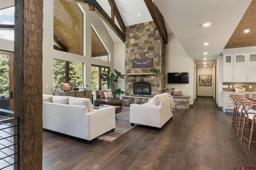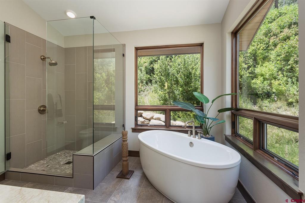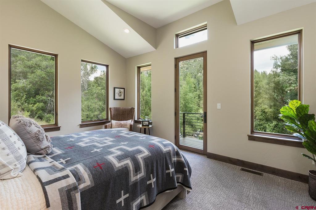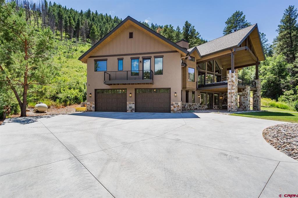 Welcome to Lightner Creek’s Secret Sanctuary. Resting between the rushing creek and a verdant hillside is a one-of-a-kind, 5299sf masterpiece. This gorgeous, furnished mountain contemporary home is sophisticated and warm. You'll feel like you’re living outdoors with the groves of trees framed by the large picture windows. The main kitchen is a true showstopper with Wi-Fi smart Thermador top-of-the-line appliances and two 11-foot islands surrounded by gracious space for entertaining. Two master suites plus an executive-sized office upstairs, and another two bedrooms, two bathrooms, gym, full kitchen, family room and 2-car garage on the ground floor. Both levels have laundry. This home makes for a great live-in in-law situation or for visiting friends and family. The detached two-car garage has plenty of storage space and a large workshop. Also on this remarkable, irrigated (with ditch rights) 4.2 acres are a beautiful pond, a custom-built She-Shed, and two superbly remodeled, 1406sf duplexes which provide 4 separate residences (that are currently rented month-to-month, grossing $76,800 annually) or use for caretakers' quarters, extra guest space or whatever suits your needs. Lightner Creek snakes through the property, rippling by the creekside fire-pit patio. With plenty of parking and space to pasture horses with seemingly endless open space around the property, equestrians, hikers, mountain bikers, walkers, snowshoers, and tranquility-seeking hammock-lovers will all feel at home here. Only 7 minutes to downtown Durango, to live here is to be on vacation year-round. Come lose yourself in Lightner Creek’s Magic.