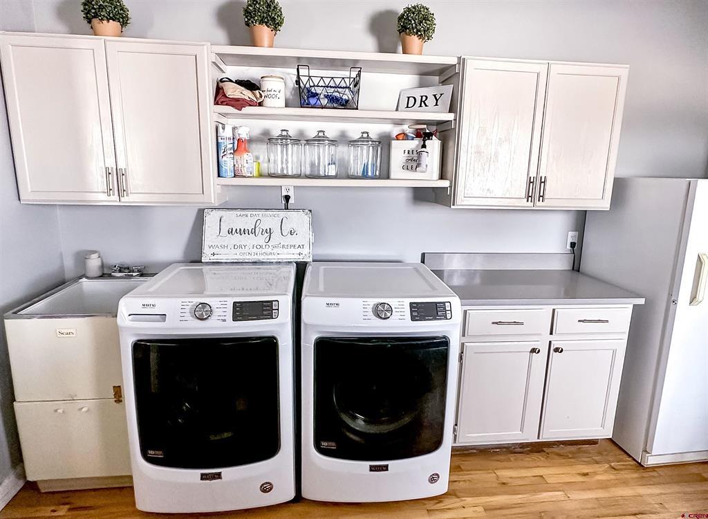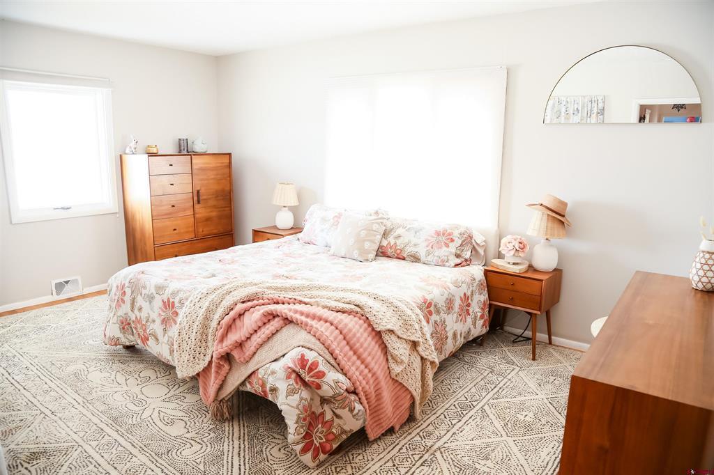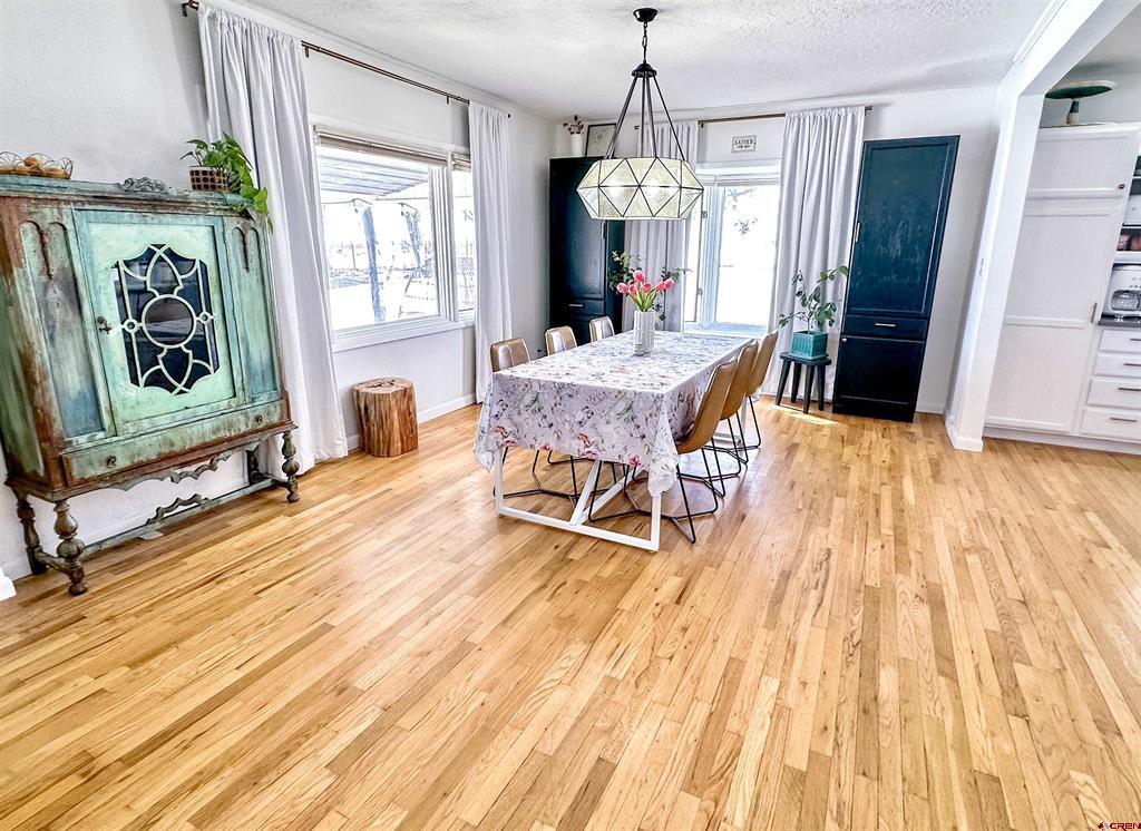 A stunning, modern farmhouse home in Bayfield offering privacy on 3.369 acres. Recently updated there are new light fixtures, kitchen appliances, and solid alderwood doors. Hardwood floors lead you through the single level home to the four large bedrooms and two baths, one with a dual vanity. One of the bedrooms has direct access to the backyard. With high ceilings and a wood fireplace, the living room is cozy but spacious with high ceilings and large windows featuring incredible views. There’s a formal dining room that connects with the beautiful kitchen complete with quartz countertops, new appliances and custom built island. The yard is grassy and fenced with mature trees and expansive views. Outbuildings include a three car covered carport, shed, and greenhouse for storage, work space, horses and farm animals, and fresh produce. With short commute to Durango, Pagosa Springs, Vallecito Reservoir, and more area amenities, this is the perfect Colorado home.