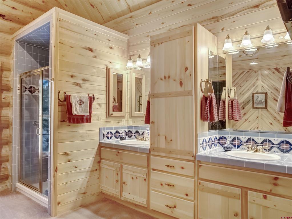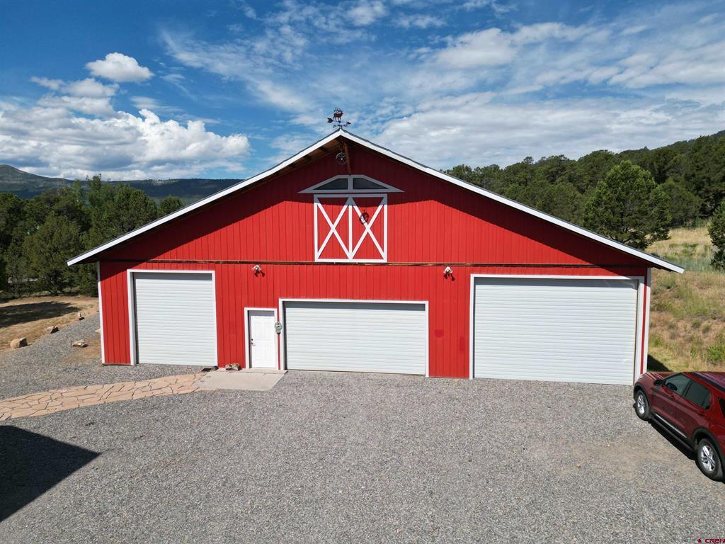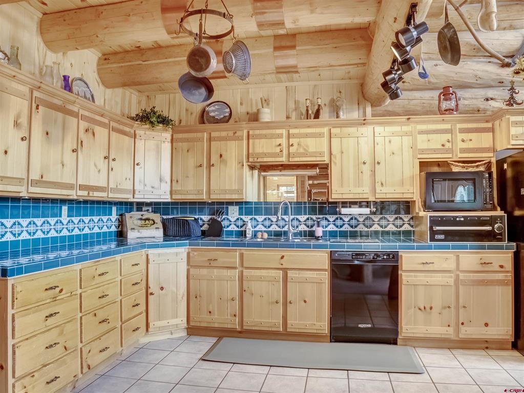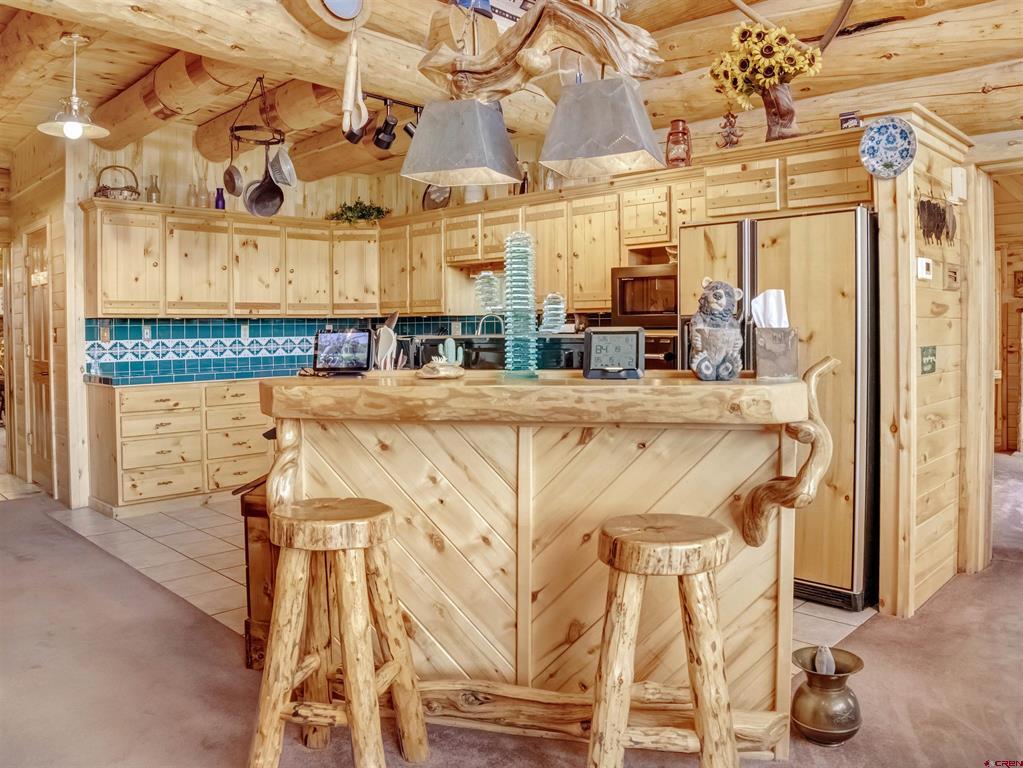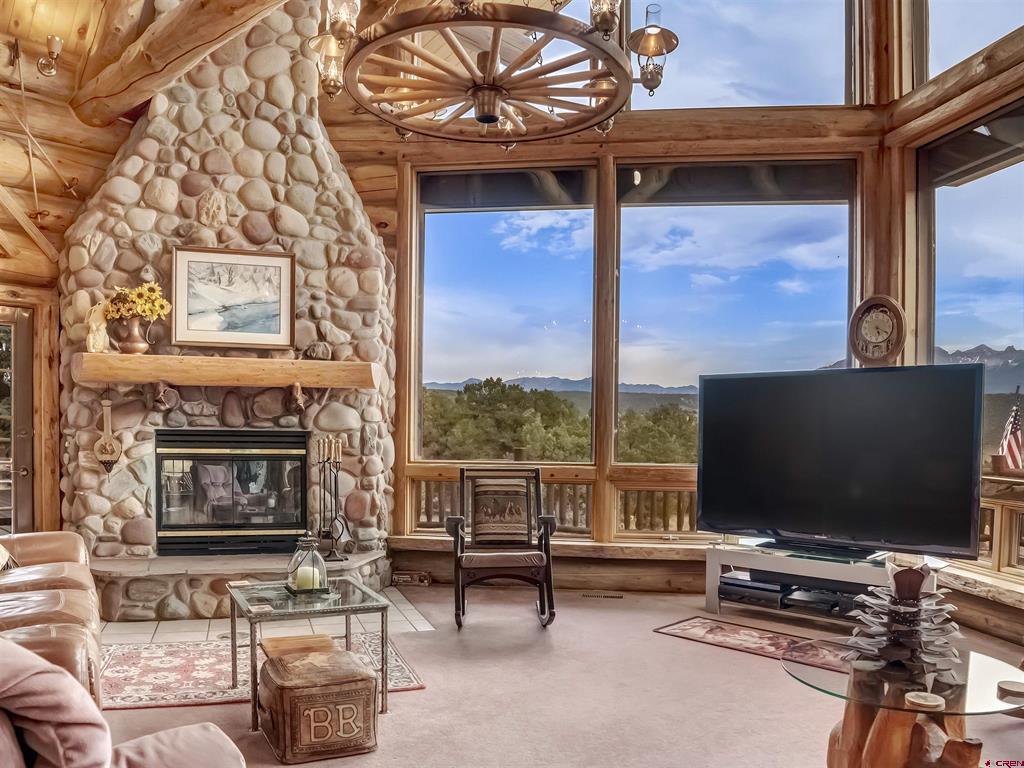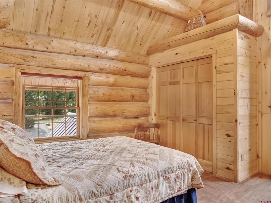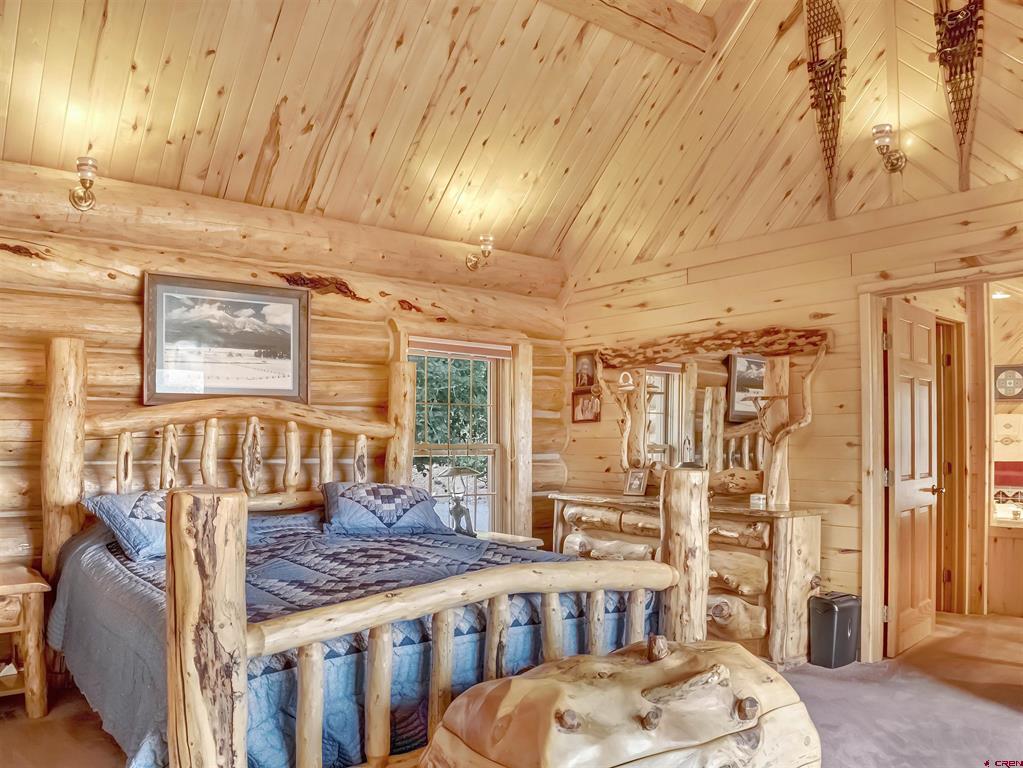 This Yellowstone lodge style log home sits on a nicely treed 5 acre parcel with views of the Cimarron range, the Sneffels range and the valley floor. Just a few miles west of Ridgway's RAT bike trails and 30 miles to Telluride, where there is world class skiing, golfing, mountain biking, fly fishing and restaurants. Only 17 miles to beautiful Ouray with a Hot Spring pool, two Via Ferrata's, Ice Climbing Park and outstanding hiking, snowshoeing, cross country skiing and restaurants. This would make a beautiful basecamp for the outdoor enthusiast. In the country enough to not feel the impact of the tourist season, yet just a few minutes from great restaurants, grocery shopping and the wonderful little community of Ridgway. The house has 3,815 square feet with five bedrooms, three baths, a 32X60 garage/barn, and a 30X48 pole barn for RV and other storage. The two story windows frame the Sneffels range and the valley floor. Beautiful Aspen tongue-n-grove on the interior walls, half log stair case, and a gorgeous river rock fireplace all make this home feel warm and welcoming. There is a very nice deck that wraps around the front of the house. A nice flagstone pathway connects the front door, door the the mud room and garage/barn. The primary bedroom and bath are on the main level, along with another bedroom, den/game room, bathroom, and great room, with a nice dining area, living room and kitchen with a southwest flair. The upper floor has three bedrooms, a full bath and a nice loft sitting area that could be used as an office. Horses are allowed in this HOA. You can have up to four. The place has been lovingly cared for. It's a family home where lots of love has been shared. The setting is so tranquil and peaceful. Come see this place for yourself.