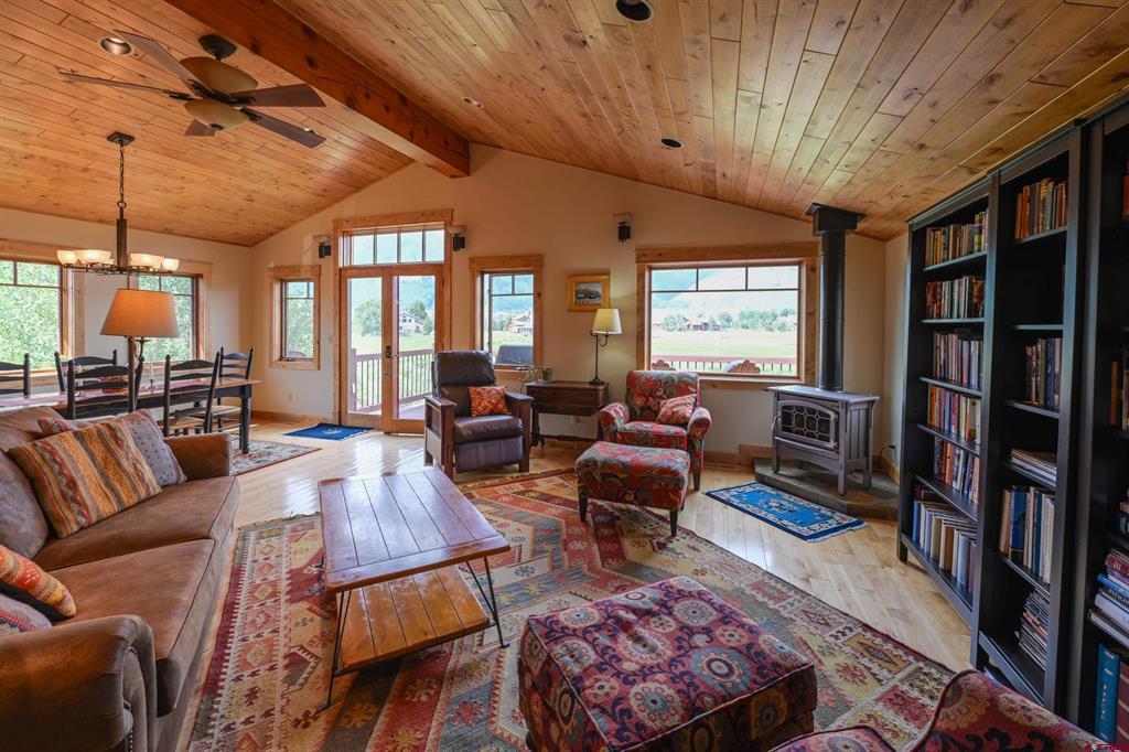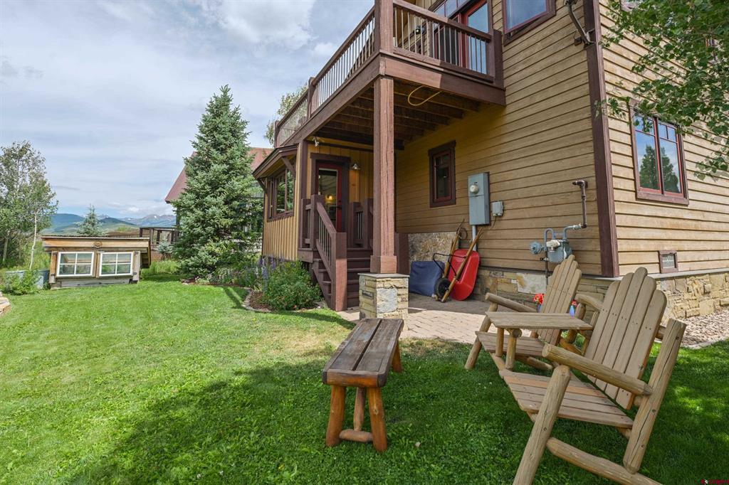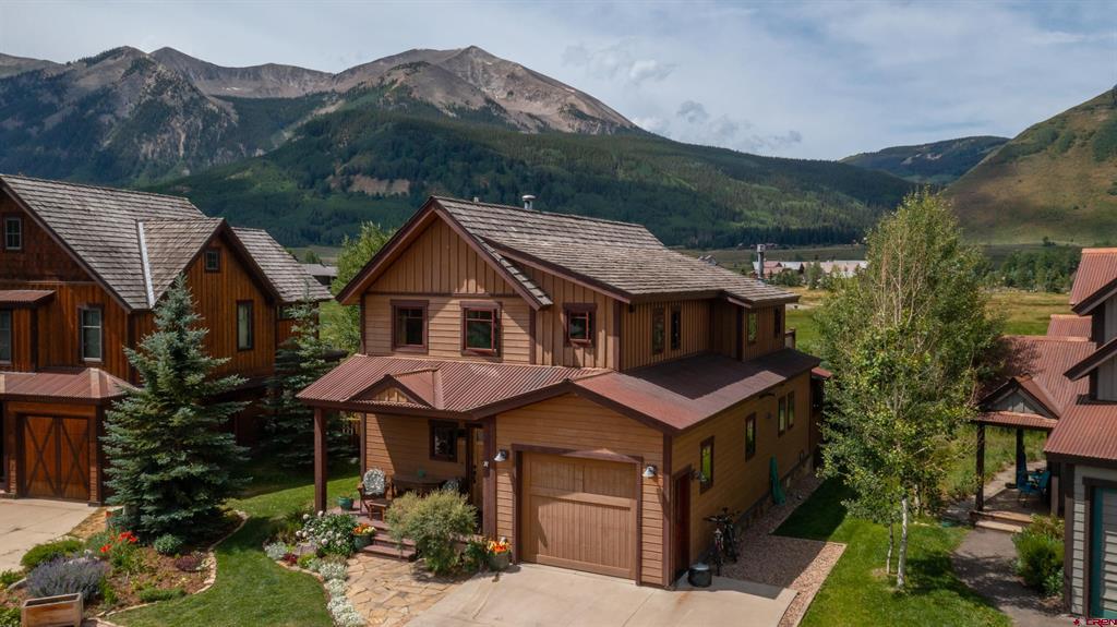 Beautifully crafted home in the desirable Skyland River Neighborhood. Proximity to town, river access and a quiet location make this a very desirable single family home in Crested Butte. The open-air staircase from front entry leads to the elevated second story living room and kitchen with customized office/TV room. Big views from every window on the level with tons of natural light! The deck off the living space overlooks the Slate River and HOA open space. Open kitchen concept allows for a great entertaining space & room for large dining room table. The main level entry is perfect for gear which leads to the three bedrooms with bathroom and laundry room. A primary bedroom features added square footage sitting area and access into the back patio. Custom timber accents with newer flooring. Oversized one car garage is built-out with work benches and storage. Ideal location on quiet street providing two access points to the Slate River. Contact us today for a private tour of this amazing Crested Butte home!