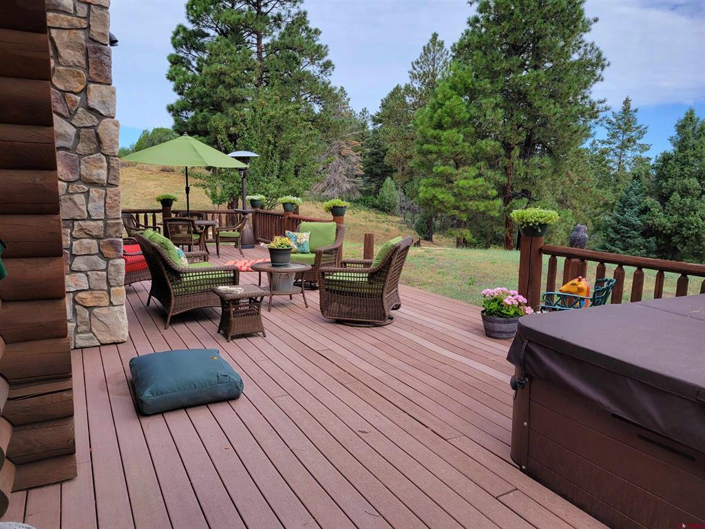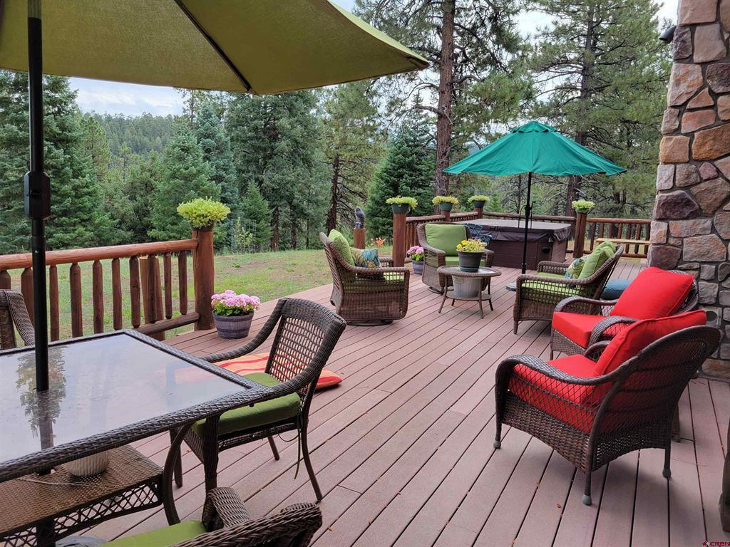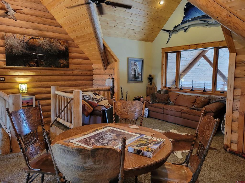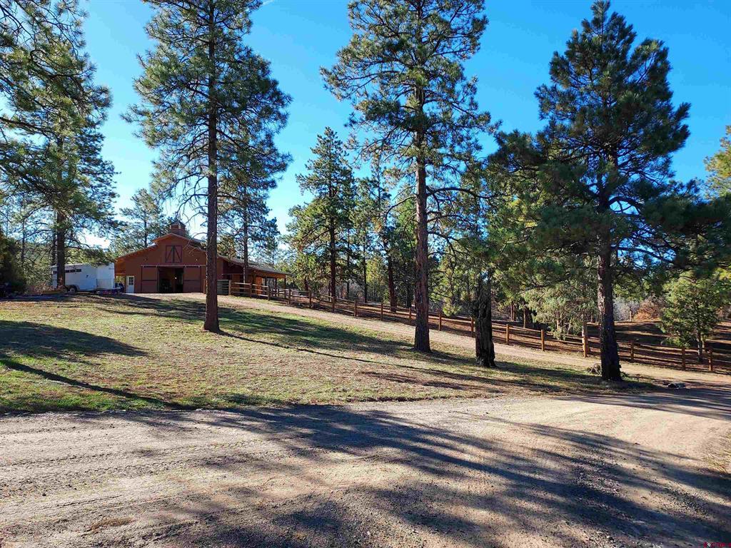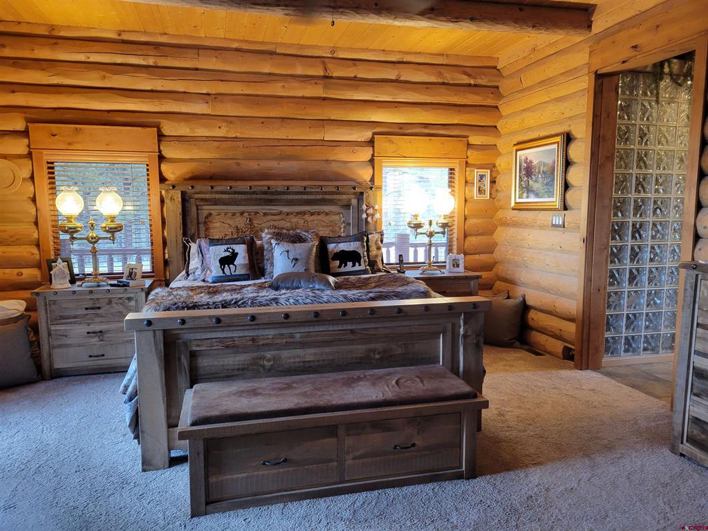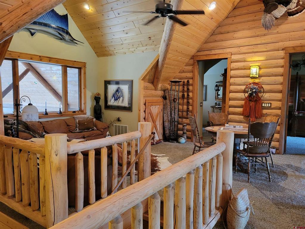 Welcome to the luxury of Log Cabin Living at Hidden Bear Ranch, a stunning mountain home located 25 miles south of our beautiful town, Pagosa Springs in Alpine Lakes Ranch. Perched high on Elk Ridge you will be drawn to the amazing views, dense forest and privacy. This spacious residence spans 3955 square feet and offers a unique blend of rustic charm and modern amenities. High ceilings & all 8 foot solid alder doors with 4 bedrooms & 3 baths this home is perfect for those seeking a comfortable and flexible living space. Reminiscent of a Grand Lodge the porte cache shelters you and your guests as you arrive. As you step inside, you'll immediately notice the open concept design, & 18 foot rock wall wood burning fireplace. There is a seamless flow throughout the home with 2 dining areas along with the chef's kitchen. It boasts alder cabinetry, stainless steel built in appliances, making it a joy to cook and entertain in. Picture yourself preparing meals while enjoying the breathtaking views of the majestic San Juan Mountains. Pantry & Mud Room keep all your food, groceries and items not used all in plain view with easy access. A full wet bar and wine refrigerator has more than ample storage for all your liquors and bar glasses & accessories. Primary ensuite is on the main level with outdoor access to the deck & built in hot tub. which is prefect for enjoying the natural surroundings. Soak and enjoy the stunning sunsets and endless starry nights. Huge walk in shower and a corner tub & walk in closet with cedar ceilings are just a few of the too many features to list here as you must visit this retreat to get the full effect. A 3/4 bath and an additional bedroom/currently used as an office complete the main level. Pecan wood floors throughout. Upstairs boasts a spacious game room in the loft and 2 huge bedroom suites. One full bath with deep soaking clawfoot tub, custom aromatic counters and mirrors with the wood sculpted from the property. One of the standout features of this property is the presence of a 30 KW solar system. Last electric bill was $33.00 with the A/C running. During colder evenings, you can cozy up next to one of the 2 rock fireplaces, located in the living area or primary bedroom creating a warm and inviting atmosphere. Additionally, the fully conditioned crawl space is spacious enough to accommodate the installation of in-floor radiant heat in the primary bath. Geo thermal provides heating & yes Air conditioning as well as instant hot water throughout the home. Step outside and discover the full wrap around deck and back entertainment area. A covered breezeway leads you to the detached 3-car garage, complete with a work shop and storage. RV parking is available. 2 outdoor log sheds are home to a chicken house with a fenced-in yard, ideal for raising a small flock of chickens. Chickens included with sale as there is nothing like the taste of fresh eggs. The pear trees are loaded with fruit and will produce a good harvest this year. If you're an equestrian enthusiast or simply appreciate the charm of a barn, this property has you covered. There's a two-story barn with 3 horse stalls, a hay loft, wash bay & shop and an enclosed tack room. Situated on a sprawling 35 -acre lot, this property provides ample space for outdoor activities and exploration. POA maintains roads year round, property backs to BLM & you can hunt on your own property. All underground utilities including central water. Property has had extensive fire mitigation completed. Embrace the beauty of the Colorado landscape and indulge in the tranquility and serenity of this exceptional mountain retreat home. Experience the perfect blend of artistry, comfort, and natural beauty in one remarkable package.