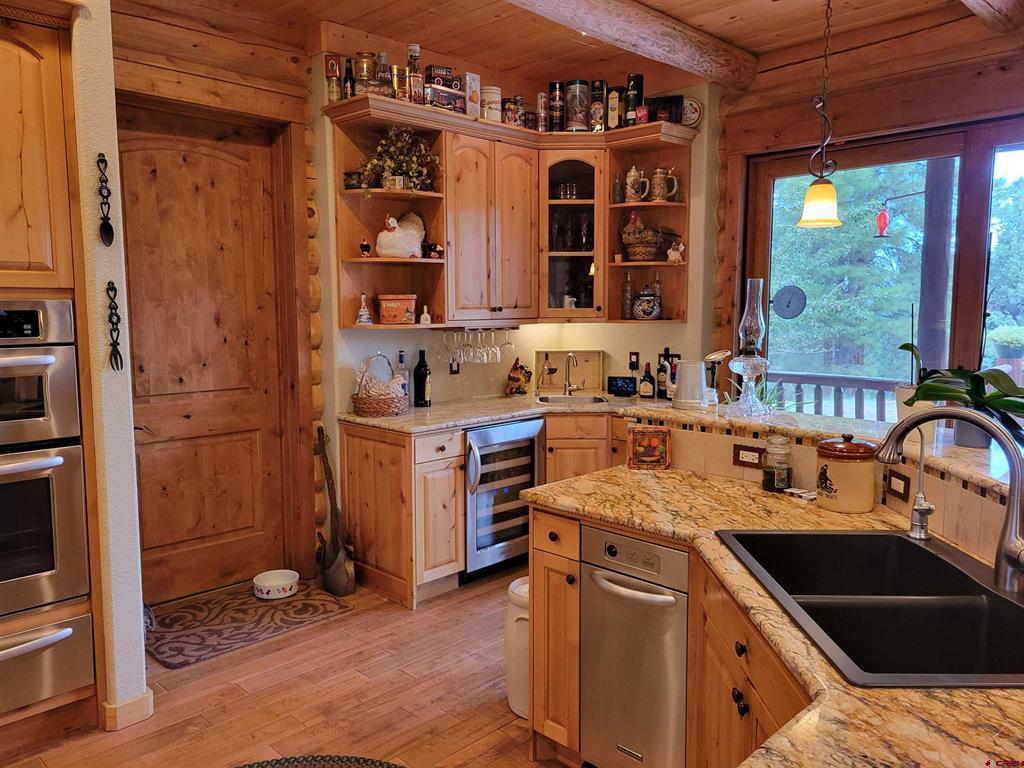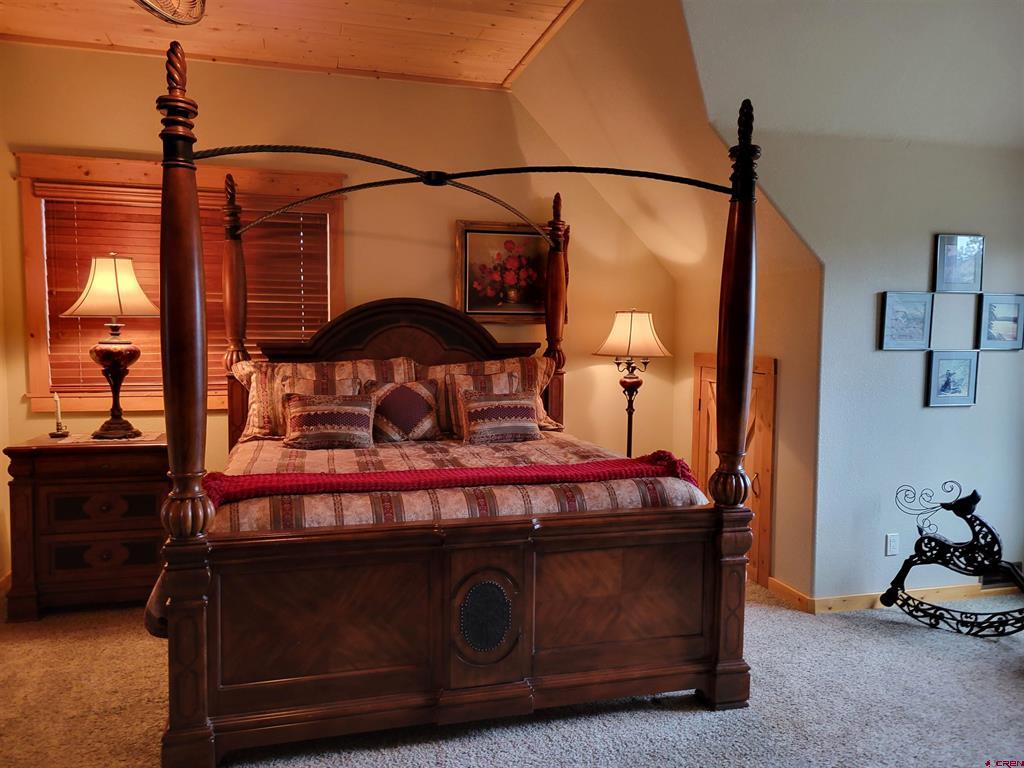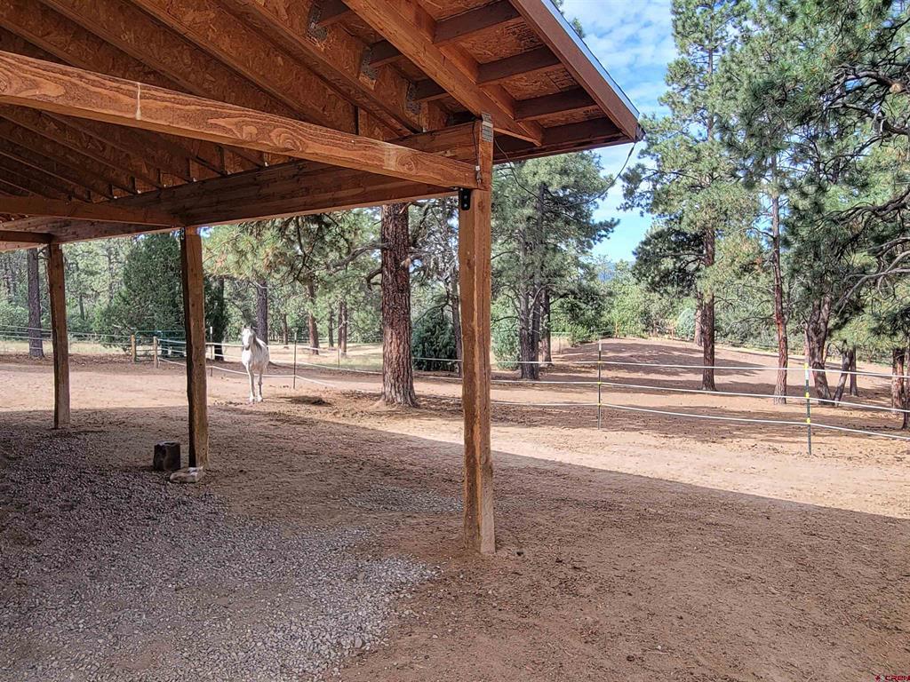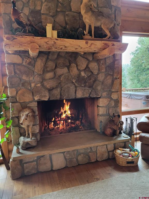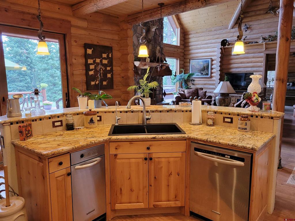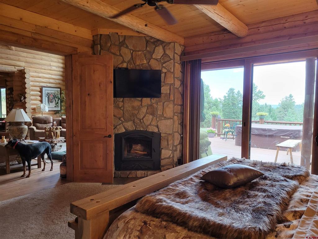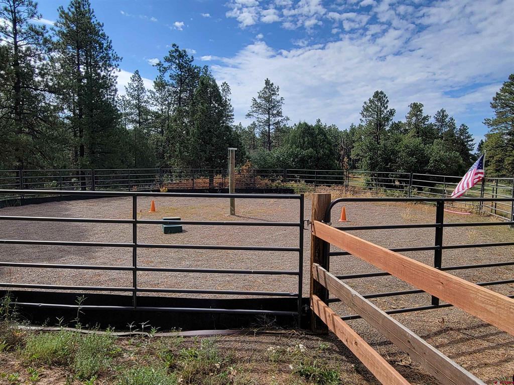 Welcome to the luxury of Log Cabin Living at Hidden Bear Ranch, a stunning mountain home located 25 miles south of our beautiful town, Pagosa Springs in Alpine Lakes Ranch. Perched high on Elk Ridge you will be drawn to the amazing views, dense forest and privacy. This spacious residence spans 3955 square feet and offers a unique blend of rustic charm and modern amenities. High ceilings & all 8 foot solid alder doors with 4 bedrooms & 3 baths this home is perfect for those seeking a comfortable and flexible living space. Reminiscent of a Grand Lodge the porte cache shelters you and your guests as you arrive. As you step inside, you'll immediately notice the open concept design, & 18 foot rock wall wood burning fireplace. There is a seamless flow throughout the home with 2 dining areas along with the chef's kitchen. It boasts alder cabinetry, stainless steel built in appliances, making it a joy to cook and entertain in. Picture yourself preparing meals while enjoying the breathtaking views of the majestic San Juan Mountains. Pantry & Mud Room keep all your food, groceries and items not used all in plain view with easy access. A full wet bar and wine refrigerator has more than ample storage for all your liquors and bar glasses & accessories. Primary ensuite is on the main level with outdoor access to the deck & built in hot tub. which is prefect for enjoying the natural surroundings. Soak and enjoy the stunning sunsets and endless starry nights. Huge walk in shower and a corner tub & walk in closet with cedar ceilings are just a few of the too many features to list here as you must visit this retreat to get the full effect. A 3/4 bath and an additional bedroom/currently used as an office complete the main level. Pecan wood floors throughout. Upstairs boasts a spacious game room in the loft and 2 huge bedroom suites. One full bath with deep soaking clawfoot tub, custom aromatic counters and mirrors with the wood sculpted from the property. One of the standout features of this property is the presence of a 30 KW solar system. Last electric bill was $33.00 with the A/C running. During colder evenings, you can cozy up next to one of the 2 rock fireplaces, located in the living area or primary bedroom creating a warm and inviting atmosphere. Additionally, the fully conditioned crawl space is spacious enough to accommodate the installation of in-floor radiant heat in the primary bath. Geo thermal provides heating & yes Air conditioning as well as instant hot water throughout the home. Step outside and discover the full wrap around deck and back entertainment area. A covered breezeway leads you to the detached 3-car garage, complete with a work shop and storage. RV parking is available. 2 outdoor log sheds are home to a chicken house with a fenced-in yard, ideal for raising a small flock of chickens. Chickens included with sale as there is nothing like the taste of fresh eggs. The pear trees are loaded with fruit and will produce a good harvest this year. If you're an equestrian enthusiast or simply appreciate the charm of a barn, this property has you covered. There's a two-story barn with 3 horse stalls, a hay loft, wash bay & shop and an enclosed tack room. Situated on a sprawling 35 -acre lot, this property provides ample space for outdoor activities and exploration. POA maintains roads year round, property backs to BLM & you can hunt on your own property. All underground utilities including central water. Property has had extensive fire mitigation completed. Embrace the beauty of the Colorado landscape and indulge in the tranquility and serenity of this exceptional mountain retreat home. Experience the perfect blend of artistry, comfort, and natural beauty in one remarkable package.