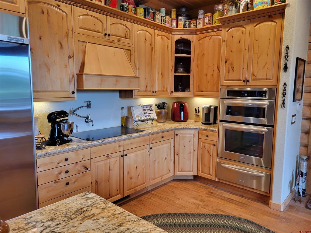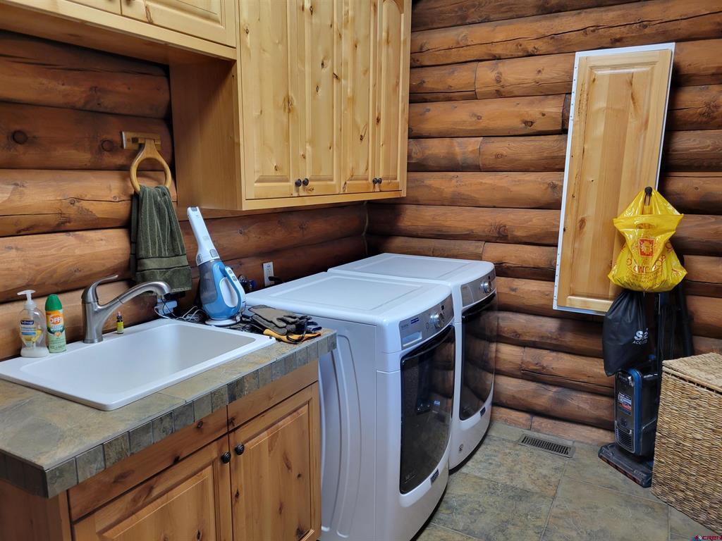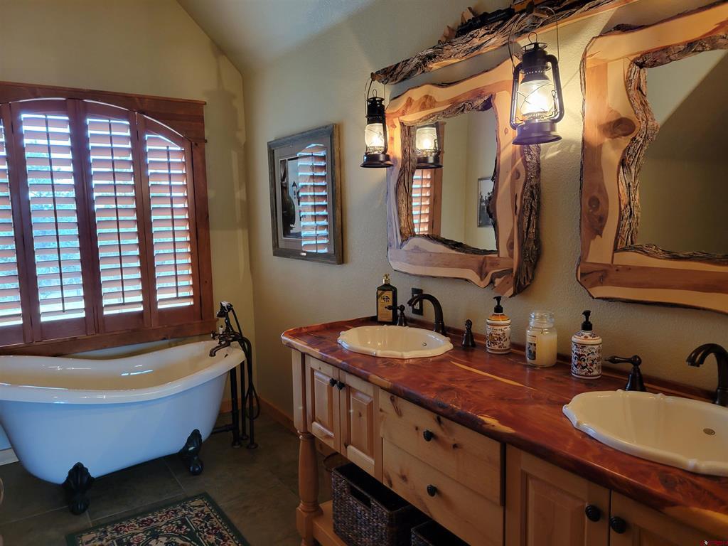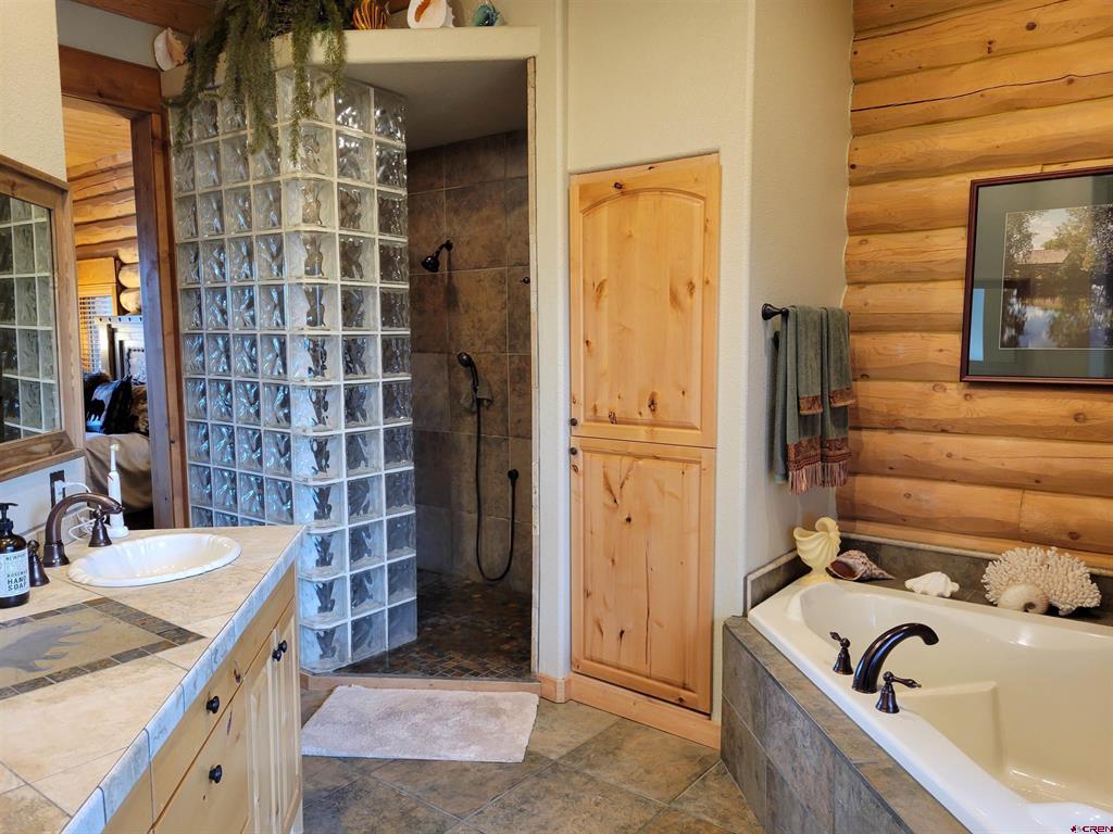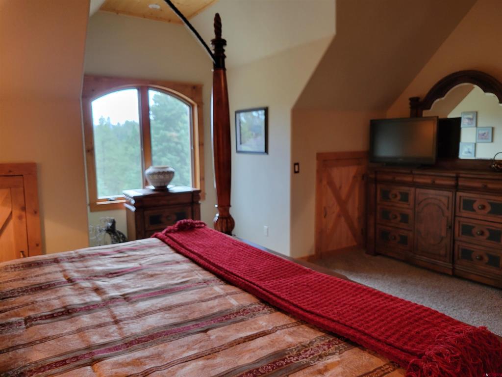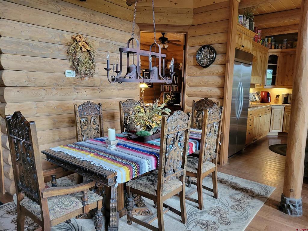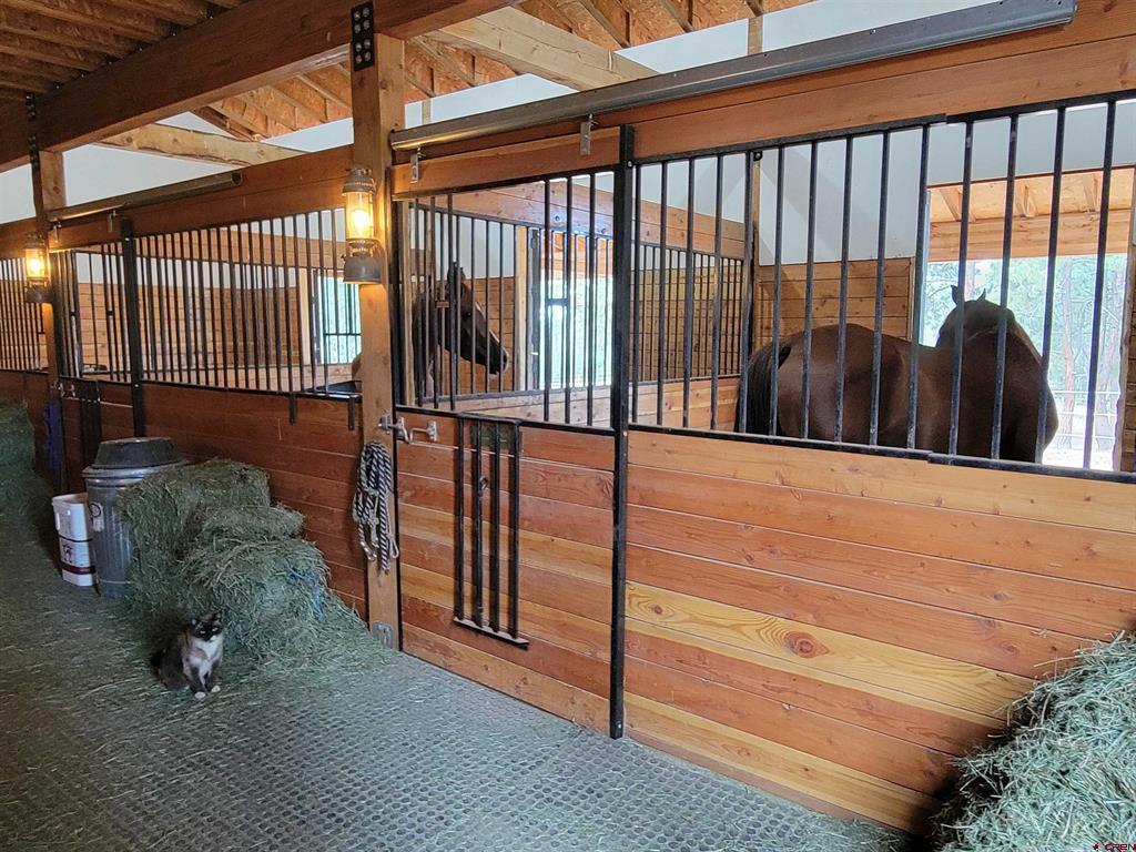 Welcome to the luxury of Log Cabin Living at Hidden Bear Ranch, a stunning mountain home located 25 miles south of our beautiful town, Pagosa Springs in Alpine Lakes Ranch. Perched high on Elk Ridge you will be drawn to the amazing views, dense forest and privacy. This spacious residence spans 3955 square feet and offers a unique blend of rustic charm and modern amenities. High ceilings & all 8 foot solid alder doors with 4 bedrooms & 3 baths this home is perfect for those seeking a comfortable and flexible living space. Reminiscent of a Grand Lodge the porte cache shelters you and your guests as you arrive. As you step inside, you'll immediately notice the open concept design, & 18 foot rock wall wood burning fireplace. There is a seamless flow throughout the home with 2 dining areas along with the chef's kitchen. It boasts alder cabinetry, stainless steel built in appliances, making it a joy to cook and entertain in. Picture yourself preparing meals while enjoying the breathtaking views of the majestic San Juan Mountains. Pantry & Mud Room keep all your food, groceries and items not used all in plain view with easy access. A full wet bar and wine refrigerator has more than ample storage for all your liquors and bar glasses & accessories. Primary ensuite is on the main level with outdoor access to the deck & built in hot tub. which is prefect for enjoying the natural surroundings. Soak and enjoy the stunning sunsets and endless starry nights. Huge walk in shower and a corner tub & walk in closet with cedar ceilings are just a few of the too many features to list here as you must visit this retreat to get the full effect. A 3/4 bath and an additional bedroom/currently used as an office complete the main level. Pecan wood floors throughout. Upstairs boasts a spacious game room in the loft and 2 huge bedroom suites. One full bath with deep soaking clawfoot tub, custom aromatic counters and mirrors with the wood sculpted from the property. One of the standout features of this property is the presence of a 30 KW solar system. Last electric bill was $33.00 with the A/C running. During colder evenings, you can cozy up next to one of the 2 rock fireplaces, located in the living area or primary bedroom creating a warm and inviting atmosphere. Additionally, the fully conditioned crawl space is spacious enough to accommodate the installation of in-floor radiant heat in the primary bath. Geo thermal provides heating & yes Air conditioning as well as instant hot water throughout the home. Step outside and discover the full wrap around deck and back entertainment area. A covered breezeway leads you to the detached 3-car garage, complete with a work shop and storage. RV parking is available. 2 outdoor log sheds are home to a chicken house with a fenced-in yard, ideal for raising a small flock of chickens. Chickens included with sale as there is nothing like the taste of fresh eggs. The pear trees are loaded with fruit and will produce a good harvest this year. If you're an equestrian enthusiast or simply appreciate the charm of a barn, this property has you covered. There's a two-story barn with 3 horse stalls, a hay loft, wash bay & shop and an enclosed tack room. Situated on a sprawling 35 -acre lot, this property provides ample space for outdoor activities and exploration. POA maintains roads year round, property backs to BLM & you can hunt on your own property. All underground utilities including central water. Property has had extensive fire mitigation completed. Embrace the beauty of the Colorado landscape and indulge in the tranquility and serenity of this exceptional mountain retreat home. Experience the perfect blend of artistry, comfort, and natural beauty in one remarkable package.