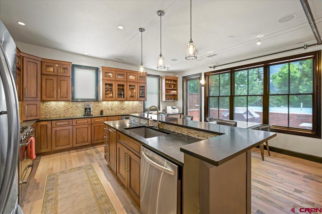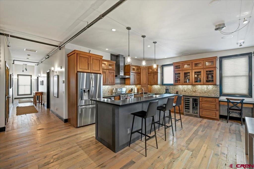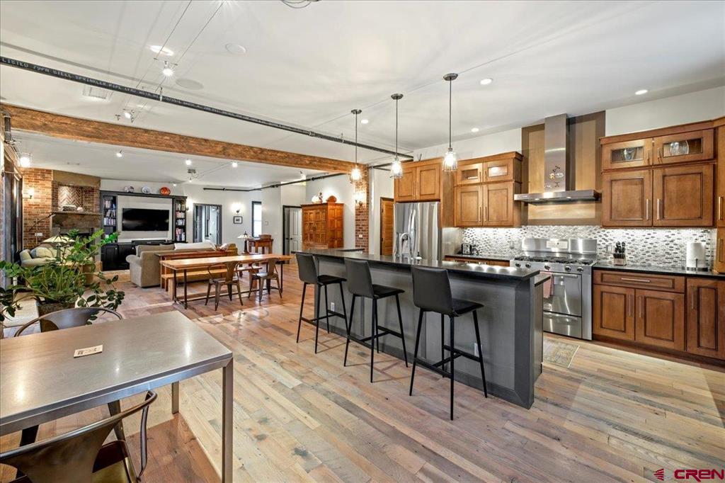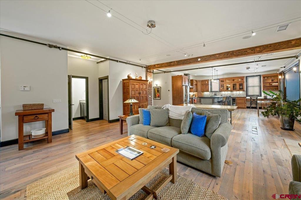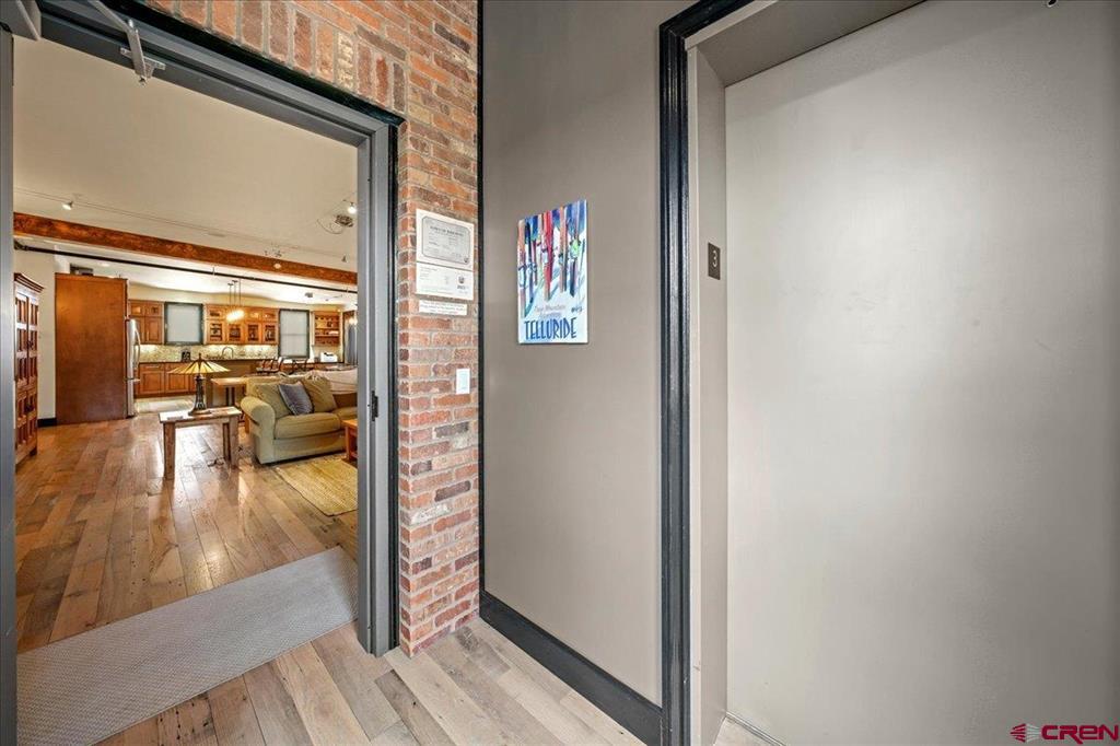 This penthouse is one of the premier properties in downtown Ridgway and a unique opportunity to own a secure, maintenance free lock and leave condo in the Silver San Juan Building. Top level finishes include reclaimed Oak flooring, granite counters and marble tile. Three on suite bedrooms and an additional half bath allow for relaxing spaces and comfortable easy entertaining. Private elevator access opens to single level living with high ceilings open kitchen, living and dining area that flows onto the private brick patio which is a favorite gathering area. The kitchen will impress the most discerning chef with island bar, granite counters, stainless appliances and the convenient beverage refrigerator. There is also an impressive masonry gas fireplace for those cozy Ridgway evenings gathering around the dining table or settling in for a good book or movie. All that Ridgway and the surrounding San Juan mountains has to offer is just outside your door. Don't miss the chance to embrace this one of a kind lifestyle residence which is very unique in the town of Ridgway.