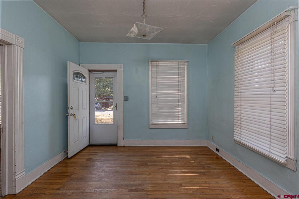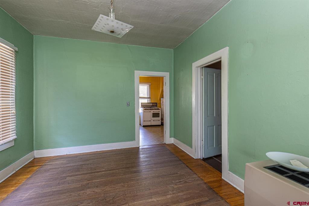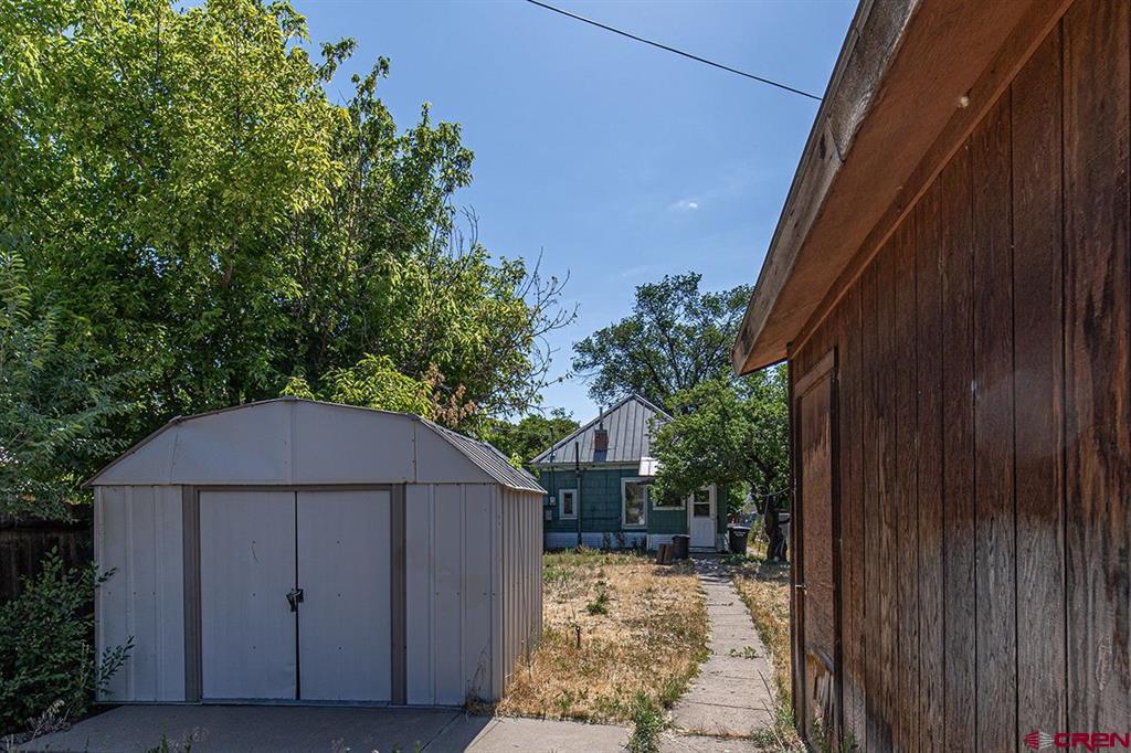 This quaint 2-bedroom, 1-bathroom home, nestled on an in-town lot is within reach of all that Durango has to offer. With its cozy ambiance, original hardwood floors, and ample outdoor space, this property presents a rare opportunity to experience the best of both worlds - the tranquility of a private residence and the convenience of being close to Durango's many amenities. Stepping inside, the interior is inviting and comfortable, creating the perfect spot to relax. The kitchen is simple and functional, offering ample storage and countertop space for your culinary needs. Both bedrooms share a bathroom within this single story, 824 square foot living space. The backyard space is ideal for hosting gatherings, enjoying morning coffee in the fresh air, or simply unwinding after a long day. The shed and detached 1-car garage offer additional space perfect for storing a vehicle, outdoor equipment, tools, or any other belongings, allowing you to keep the main living areas uncluttered and organized. Its prime location is the selling point as it's close to Durango's amenities, including the scenic Animas River, shopping, and an array of restaurants. This 0.16 acre lot offers a rare opportunity to embrace Durango living.