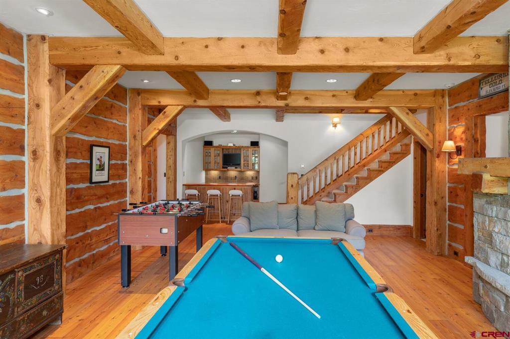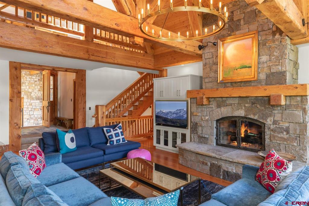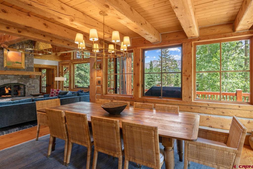 Located in the prestigious ski resort of Telluride, Colorado, 117 Snowfield is a 6,524 sq. ft. Artisan Built Split Timber Beam Masterpiece with a distinctively unique character nodding to both elegance and substance in a quiet and serene neighborhood. The home has ample natural light positioned on a flat to gently upwards slope with commanding views of the iconic San Sophia Mountain range. The exquisite handcrafted nature of the wood finishes and joinery throughout this 7 bedroom/7.5 bathroom mountain contemporary are highlighted by mortise and tenon joinery in the great room and hand hewn finishes applied at every inch. Four dry stack stone fireplaces invite downtime. There are four family gathering rooms allowing generous space for every generation to enjoy.