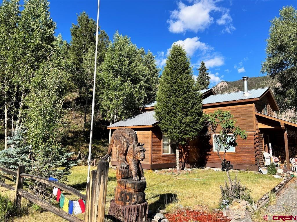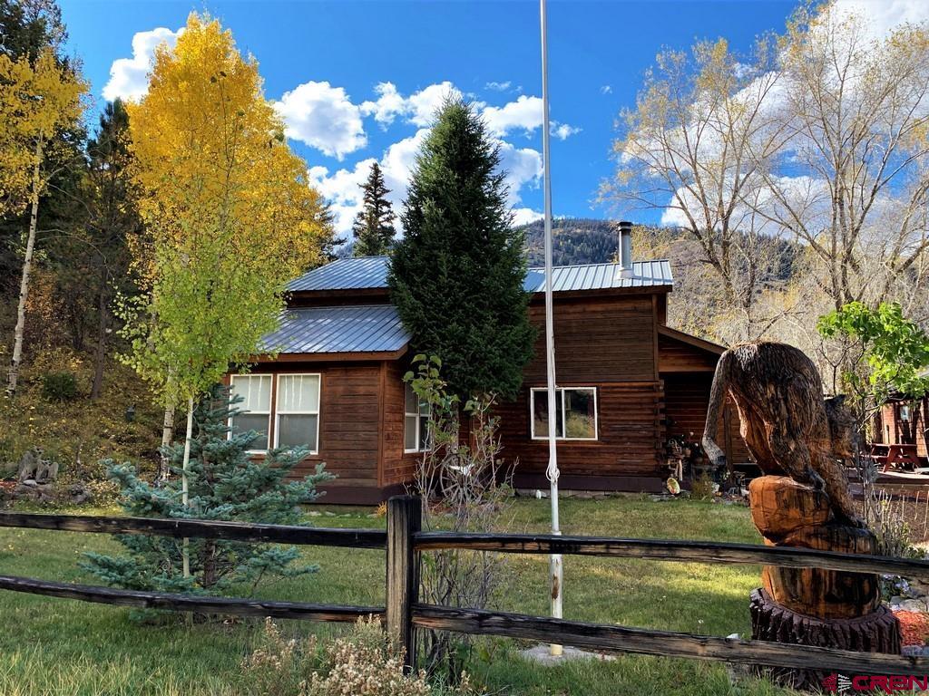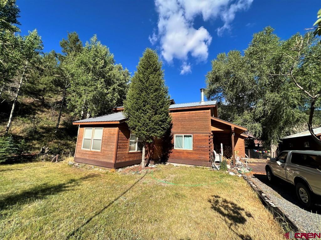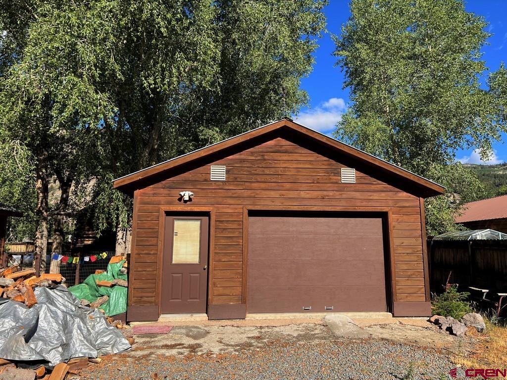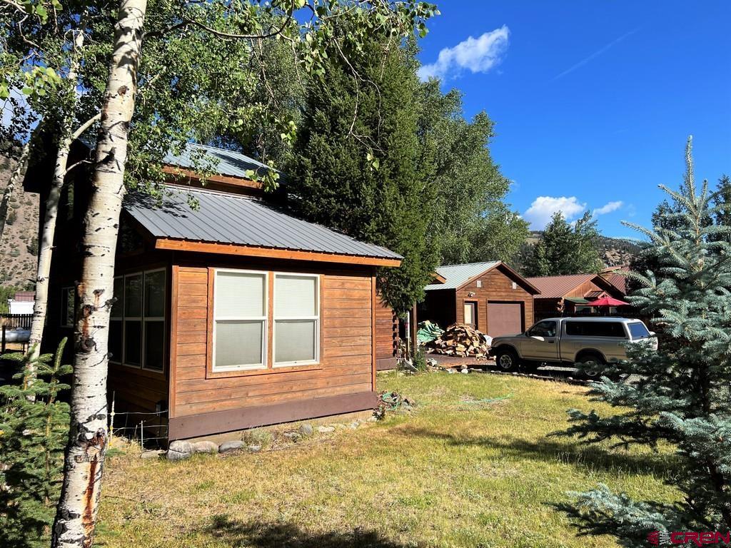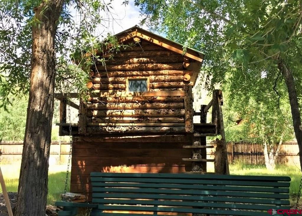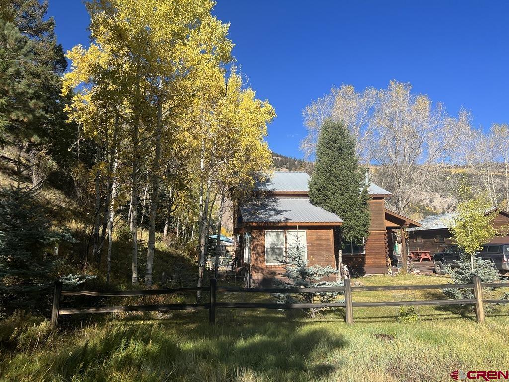Charming cabin with a great end of the street location. The cabin is situated on 5 city lots offering the comfort of in town living with a quaint mountain setting vibe. The cabin has city utilities and is walkable to historical downtown Lake City and the Lake Fork of the Gunnison River. The 1 1/2-story cabin is 1,591± square feet with 2 bedrooms plus a loft and 2.5 bathrooms. The main floor gives you a cozy living space with 12-foot tongue and groove ceilings, a dining/ sitting area with wood burning stove, guest bathroom, kitchen, separate laundry/storage room, bedroom with private bathroom. There is access to the back deck and a large, fenced yard off the hallway. The second level has a nice size loft, perfect for an office or extra sleeping space, and a bedroom with its own half bath. Outside the front of the cabin there is a deck connecting the cabin with an oversized one car garage/workshop. A storage building, log tree house for the kids or extra space for hobbies, a six-foot privacy fence, a back deck and a large front and back yard. Call us today for your showing on this charming mountain retreat. New photos coming soon!!