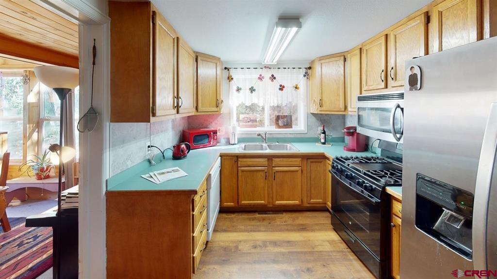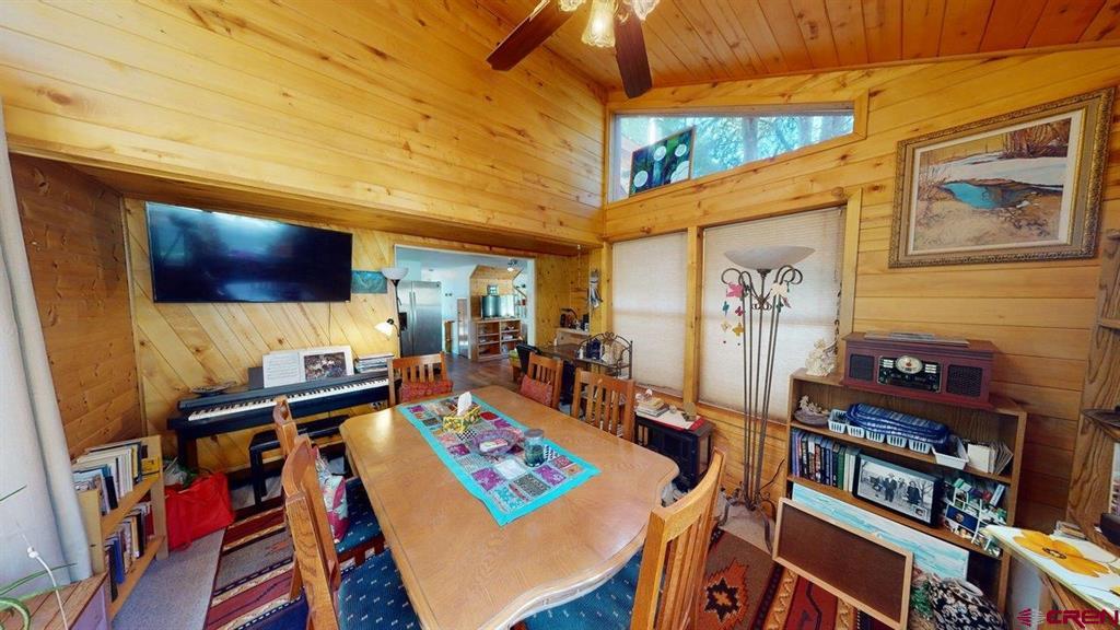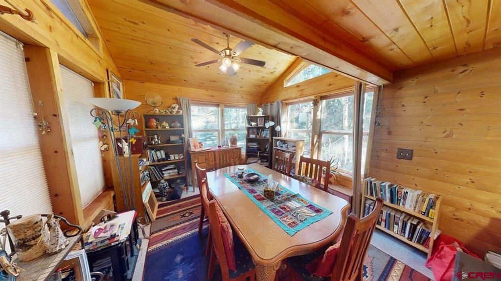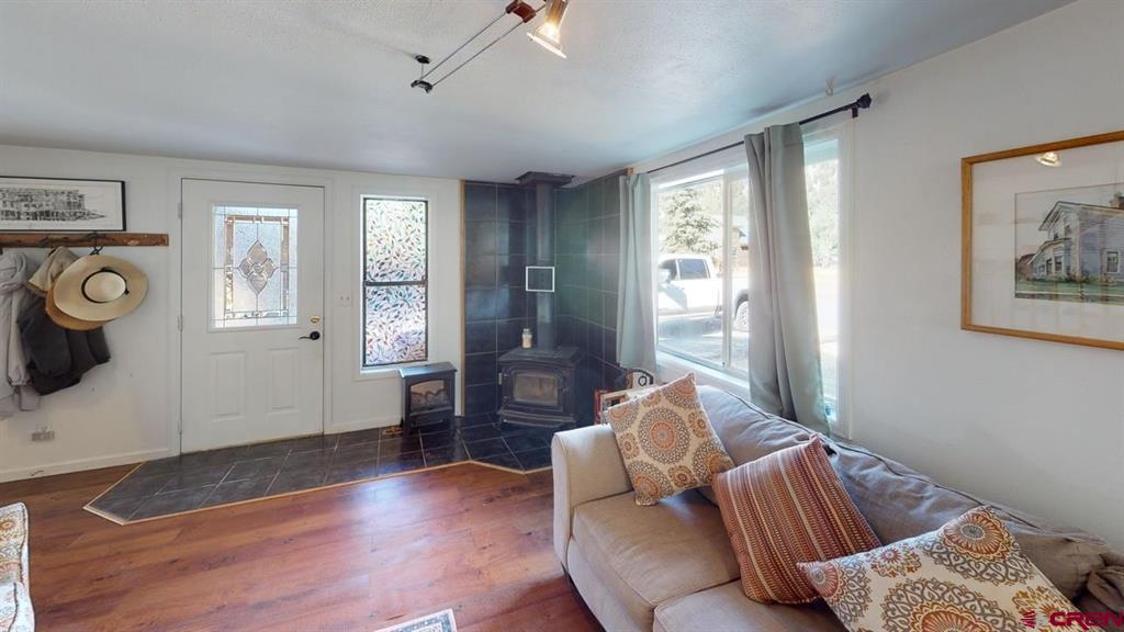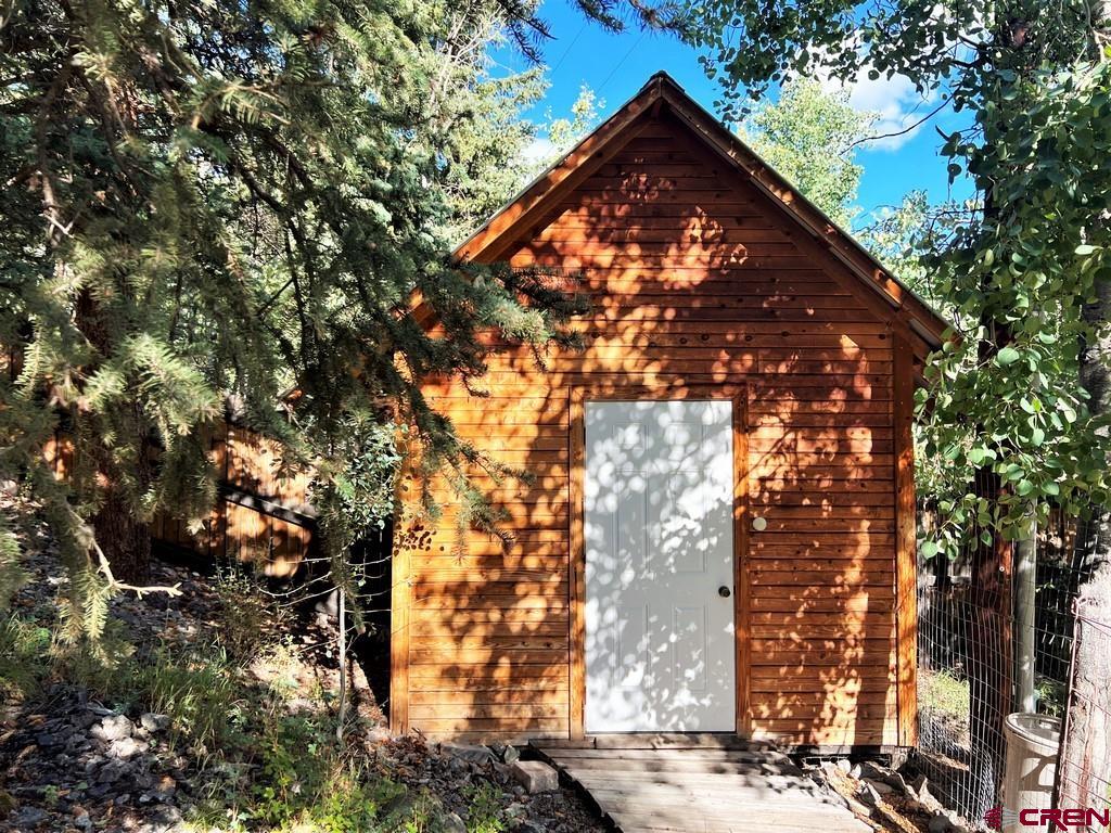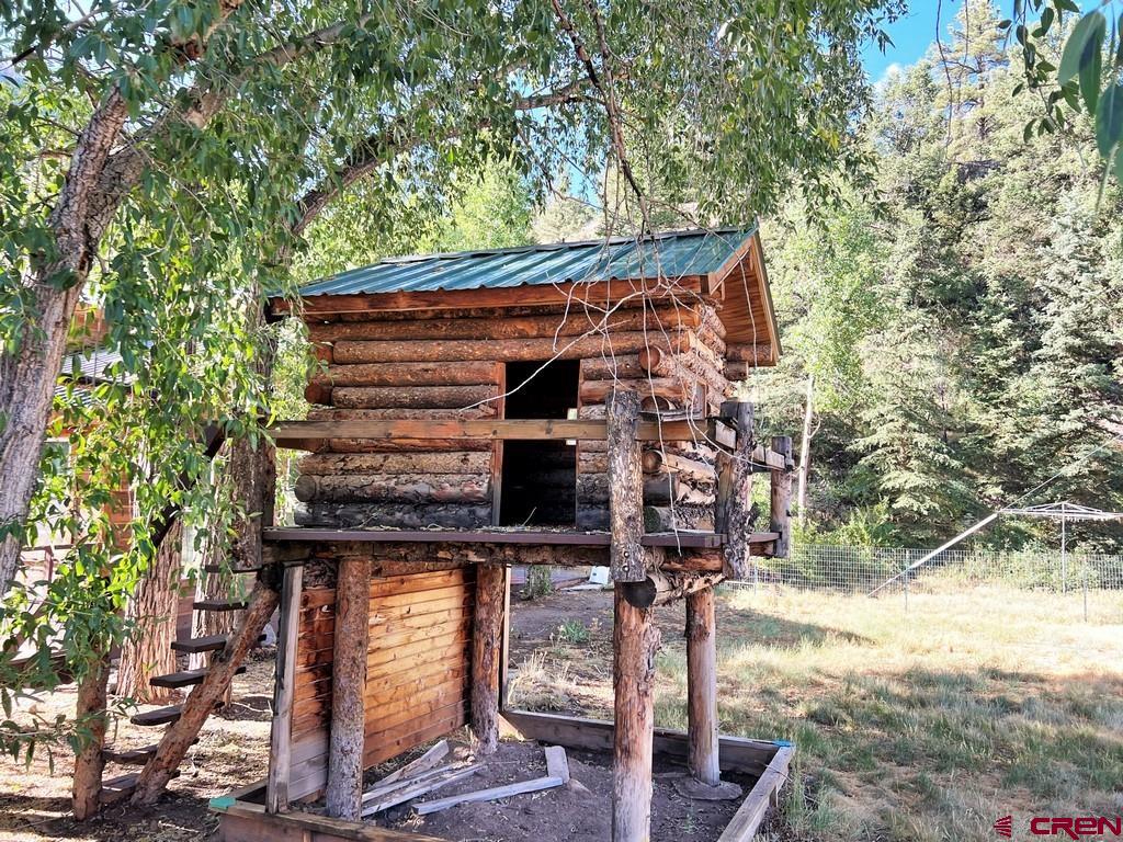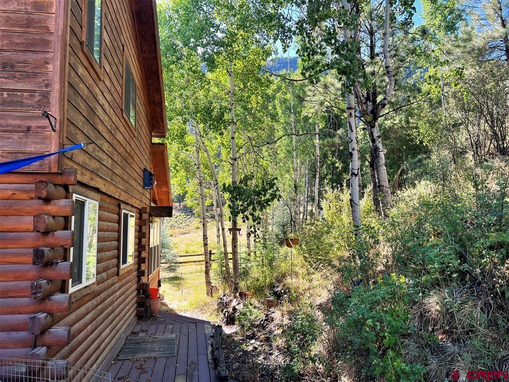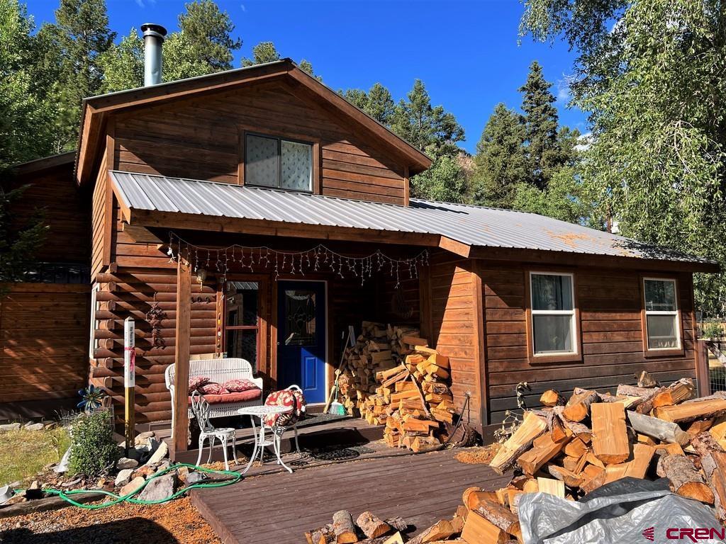 Charming cabin with a great end of the street location. The cabin is situated on 5 city lots offering the comfort of in town living with a quaint mountain setting vibe. The cabin has city utilities and is walkable to historical downtown Lake City and the Lake Fork of the Gunnison River. The 1 1/2-story cabin is 1,591± square feet with 2 bedrooms plus a loft and 2.5 bathrooms. The main floor gives you a cozy living space with 12-foot tongue and groove ceilings, a dining/ sitting area with wood burning stove, guest bathroom, kitchen, separate laundry/storage room, bedroom with private bathroom. There is access to the back deck and a large, fenced yard off the hallway. The second level has a nice size loft, perfect for an office or extra sleeping space, and a bedroom with its own half bath. Outside the front of the cabin there is a deck connecting the cabin with an oversized one car garage/workshop. A storage building, log tree house for the kids or extra space for hobbies, a six-foot privacy fence, a back deck and a large front and back yard. Call us today for your showing on this charming mountain retreat. New photos coming soon!!