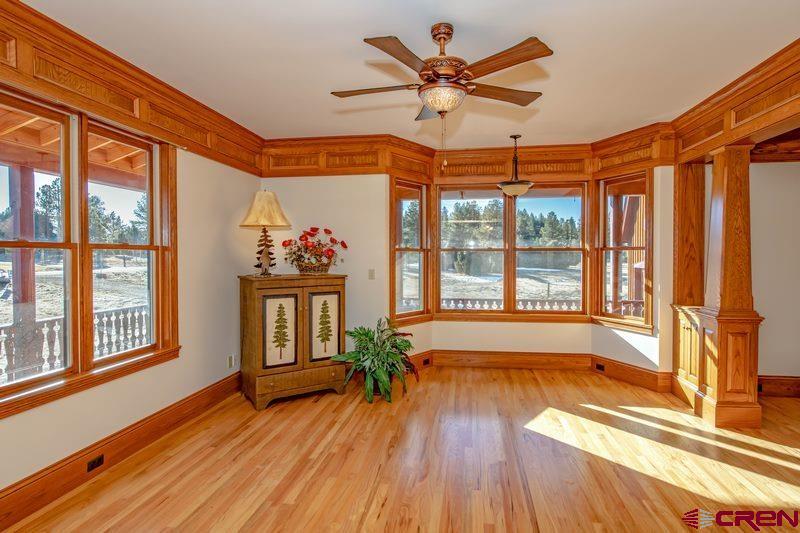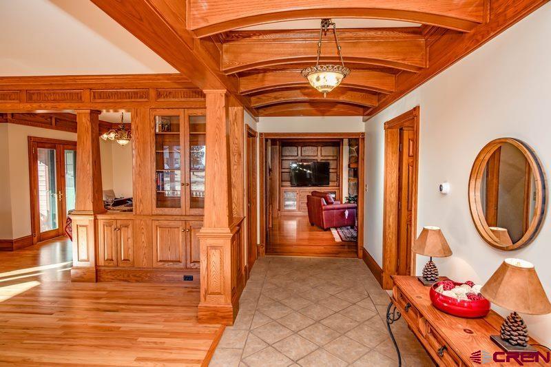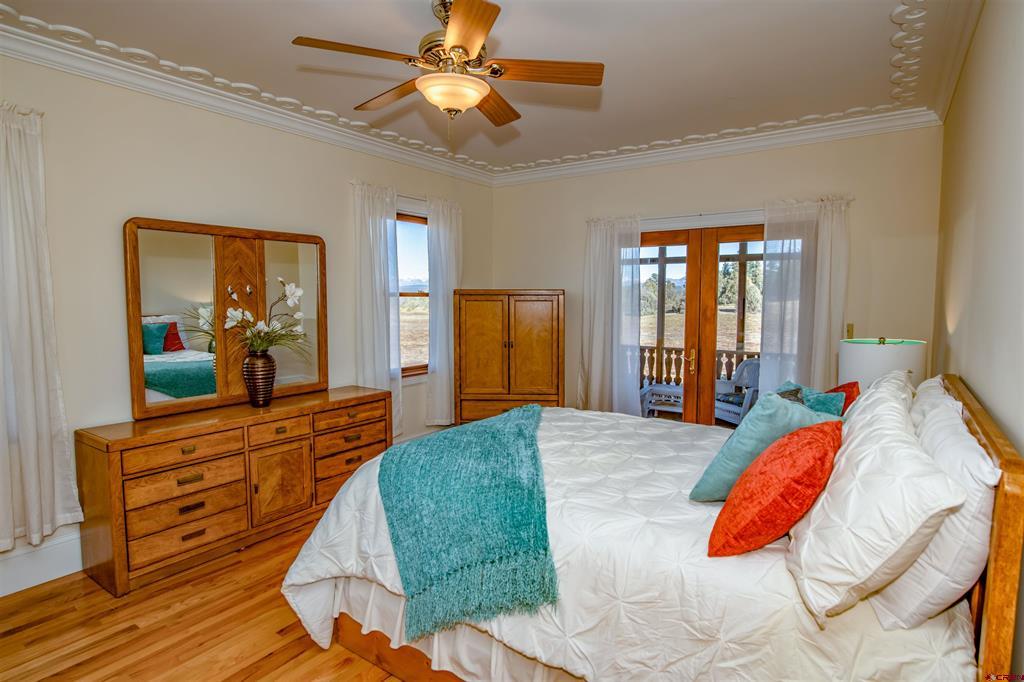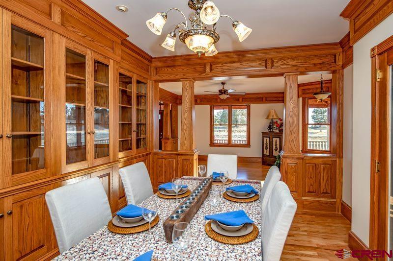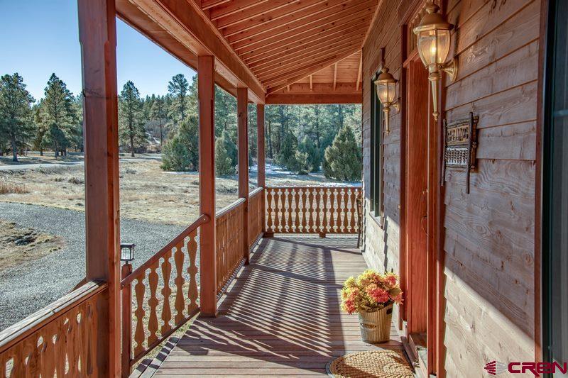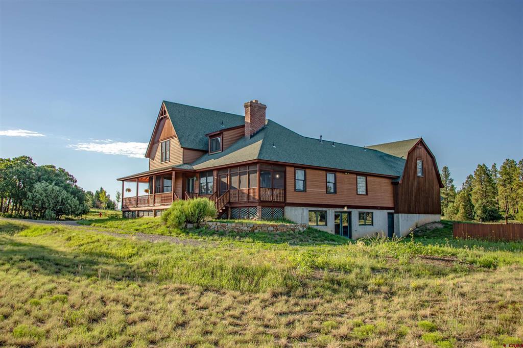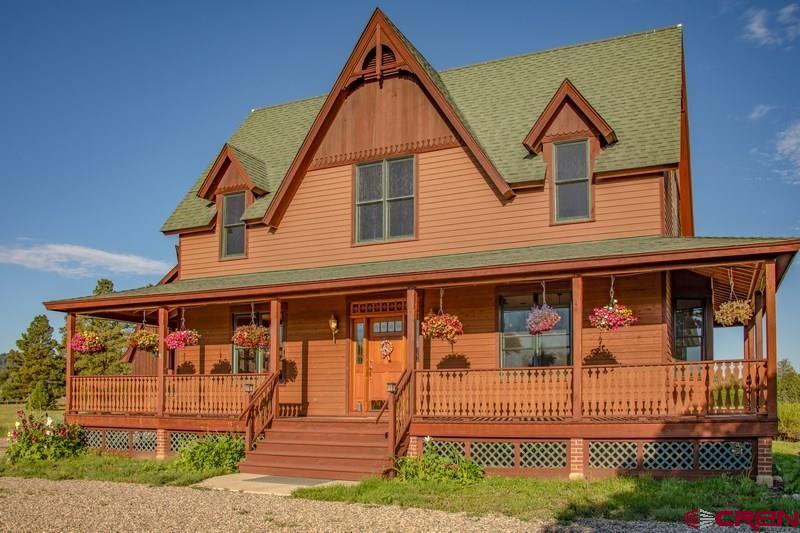 EXQUISITE CUSTOM CRAFTED FARMHOUSE!!!!!!As you walk into this gracious hand crafted home you are instantly taken in by the warmth and charm that invites you to enjoy the many special hand designed features throughout this lovely 5 bedroom/5 bath home with the additional bonus of a guest suite that has its own small kitchen, full bath and bedroom and walk-in closet. This mother-in-law apartment is also accessed with a separate entrance. This lovely home offers a large front living area/library, that opens to a spacious dining room with built in china cabinets. All will enjoy the cozy and inviting kitchen with a full dining area and kitchen bar, all of which opens to the warmth of an extra living area with a wood burning rock fireplace. The master bedroom shares the main floor and offers a large on-suite bathroom with double sinks, glassed walk-in shower and jacuzzi soaking tub and a spacious custom built walk-in closet. Laundry room and guest 1/2 bath share the main level for easy access.... each area opens onto a full wrap around redwood covered deck. This is truly a great family home or corporate get away, as it offers 4 more bedrooms and 2 bathrooms upstairs plus lots of extra built-in storage spacel and built-in oak drawers and cabinets through out this home. As you enter the completely finished downstairs walk out basement, you will be amazed at the infinite possibilities this space offers. 2 offices, a gorgeous custom crafted bar with wet sink and wine frig, expansive game/hobby room that can offer endless opportunities for game tables, model railroading, home theater and niches for art or trophies and all with in-floor radiant heart throughout the home. Just a treasure of a home with so much space for entertaining, unlimited storage, areas to work from home, family gatherings and peacful mountain living at its finest!!!! lots of open space surrounds this property with a 5 acre open space adjacent to this 3 acre parcel. Come and walk into your forever home located in the beautiful and majestic Colorado mountains of Pagosa Springs, just minutes from shopping, golf, fishing, lakes, biking trails and famous Wolf Creek Ski area. Call NOW for your own private showing!!!