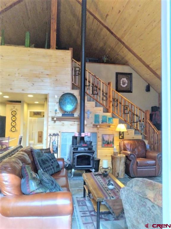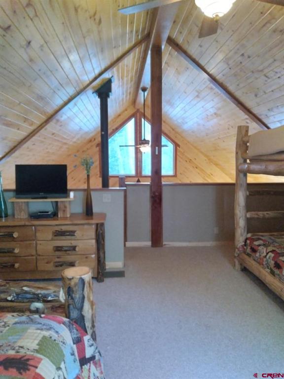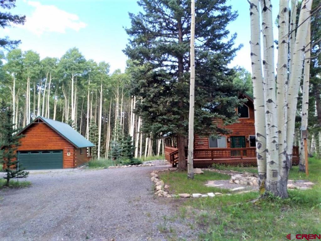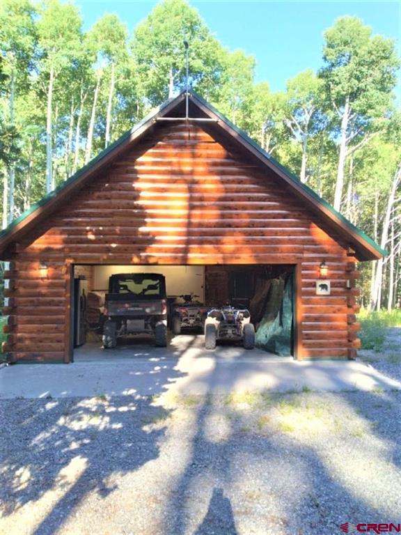 Custom built cabin with wrap around deck and detached 2 car garage with an Office attached. This cabin is nestled among beautiful majestic aspens and evergreens with a private driveway and rock lined firepit area for outdoor entertaining right off the deck. Step inside to the Living and Dining area with slate tile floors, cedar walls, vaulted ceiling and a quadra fire woodburning fireplace. Windows wrap around to enjoy the views of this special property from every angle. The kitchen is a chef's delight with plenty of storage and 2 pantry closets. Samsung french door refrigerator with bottom freezer. Utility/Mud Room with front loading washer/dryer and utility sink. The spacious master bedroom is on the main level while the guest loft with 3/4 bath and queen log bed and bunk bed with full & twin mattress will sleep 5. This spectacular mountain retreat comes completely furnished including the log furniture/custom pieces and ready for you to begin your mountain adventures. The oversized 2 car garage is deep and has plenty of extra storage including a 2nd refrigerator. The Office has its own private deck and entrance on the back side of the garage.
