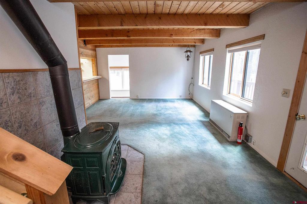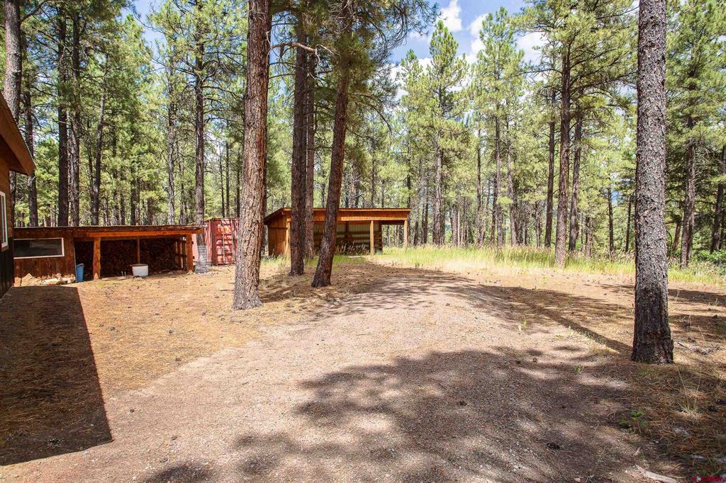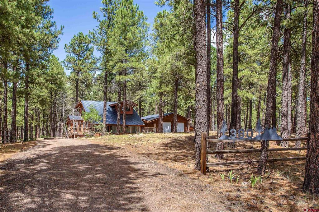 Welcome to your DREAM RETREAT! This charming two-story single-family home is nestled on a picturesque 3.26-acre wooded lot and is a true gem. Step inside and be greeted by the warmth of the ornate woodstove in the living room, perfect for cozy evenings with loved ones. The home has two bedrooms, with a cozy den/office that could easily be considered a bedroom. The flooring is a blend of partial carpet and laminate, offering comfort and ease of maintenance. The oversized garage with a workshop heated with an energy-efficient wall-mounted heater or a woodstove could be installed. The shop space is large enough for all your projects and storage needs. Need even more storage? No worries – the property has additional open-face sheds, a shipping container, a chicken coup, and a woodshed. In front, a partial split rail fence adds character and enhances the curb appeal of this lovely home. Accessible via a county public gravel road, the property also benefits from public winter maintenance, ensuring hassle-free year-round living. Water is sourced from Pagosa Area Water, and waste is managed through a septic system. Take this opportunity to own your private oasis. Schedule a showing today and make this property your own!