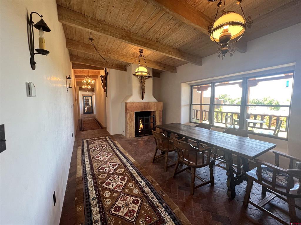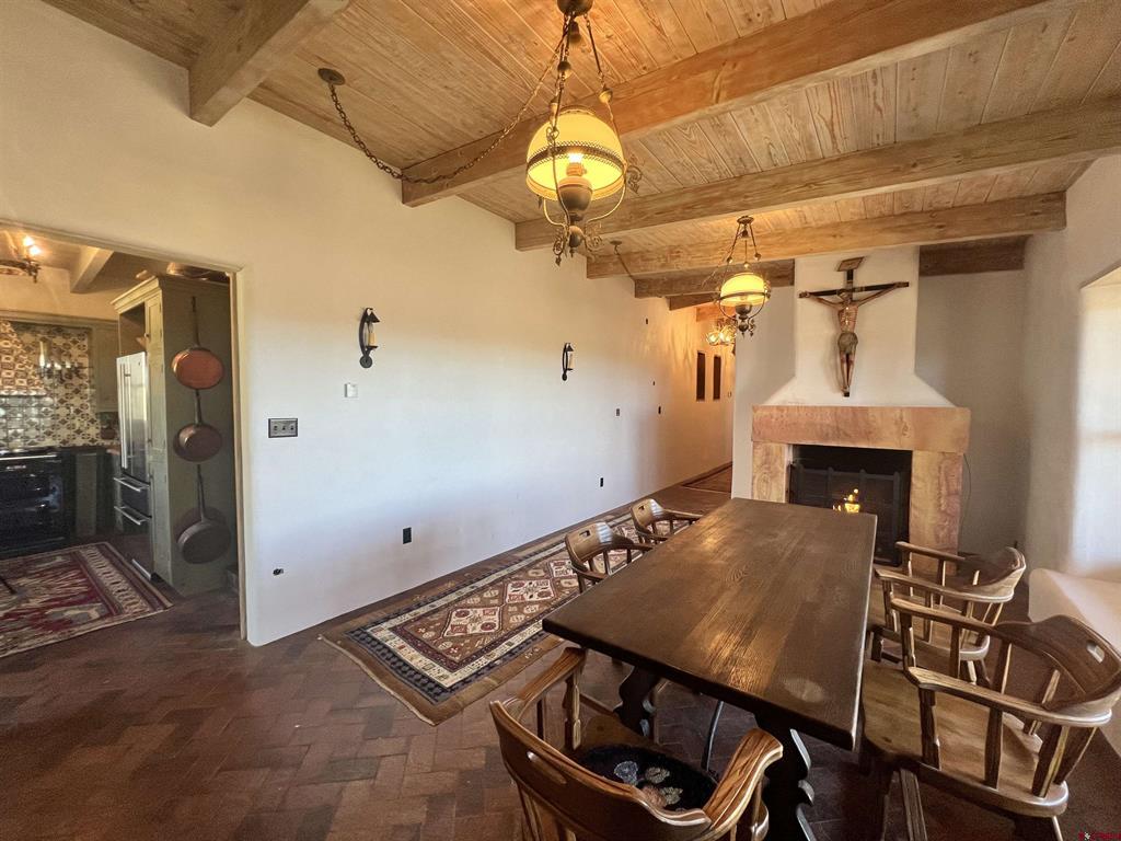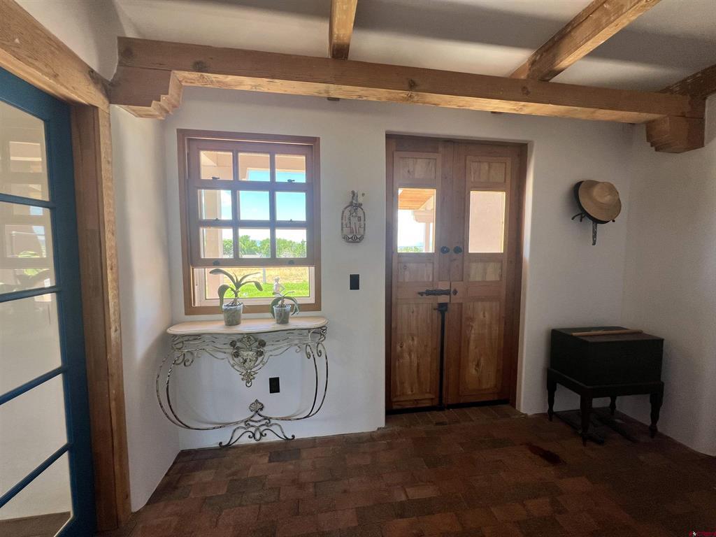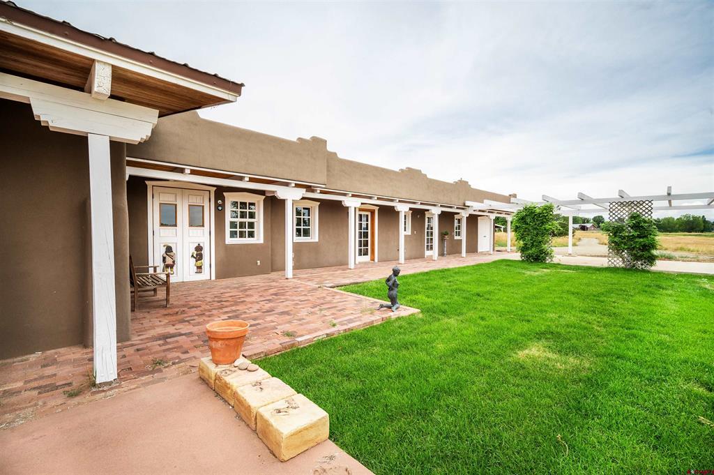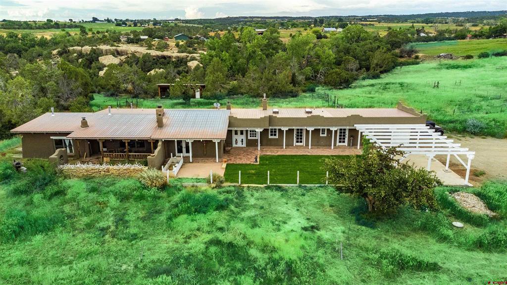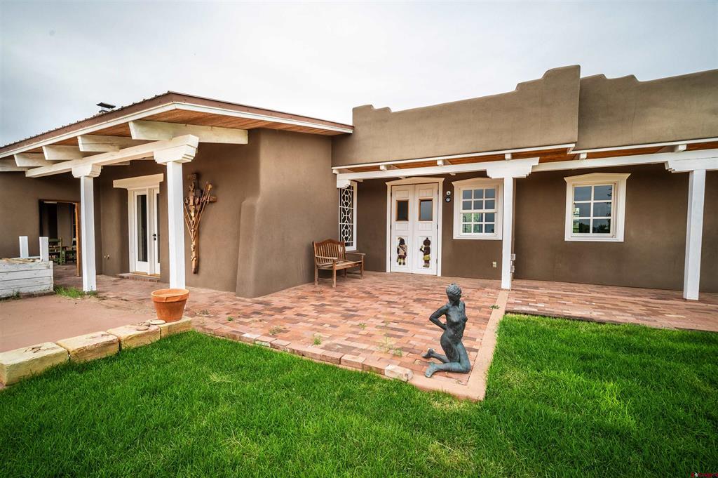For the discerning buyer, offered is an extraordinary adobe 3,424 SF home with attached Casita, on 24+irrigated acres. Secluded and private. Gorgeous views of Ute Mountain, a year-round running creek and 100-year-old conifers. Highest end construction, finishes and fixtures: Adobe walls up to 22" thick; solid brick floors in herringbone and running patterns; ceilings are pitched 9' - 11' of wood beams and Aspen tongue and groove; exterior doors are Schiavone Woodworks ($2,500 each, uninstalled) and Simpson French 10 light; interior doors are Simpson Spanish 8 raised panels in clear Douglas fir; windows are La Loma cedar ($2,500 each average, uninstalled) and vintage Anderson wood double hung; all door and window jamb and casings are clear cedar to last generations (imported from Frost Hardwood, San Diego, CA); garage carriage doors by Christie Woodworks in clear, vertical grain Douglas Fir ($8,000, uninstalled); all exterior finishes are oil based; hand painted Mexican tile details in kitchens and baths; 7 fireplaces - 4 Jotul cast iron, enameled and thermostat controlled ($4.500 each, uninstalled), 1 large Rumford fireplace with gas log insert and Dakota Stone mantel ($18,000) and 2 Kiva (corner) wood burning; British AGA 3 oven cooker in cobalt blue ($12,000 installed and no longer imported into the USA) with Mexican tile hood; Bosch SS dishwasher, GE Monogram SS fridge, hand hammered copper sink with $1,000 Rohl Italian bronze faucet set and Dakota Stone countertops. To build this home today is $500 - $600SF. A separately deeded, equally high-end 3 Bedroom 2 Bath residential home on 3.630 Acres with a natural stone facade will be offered separately.