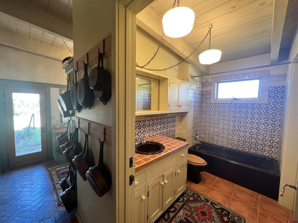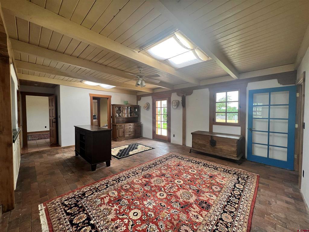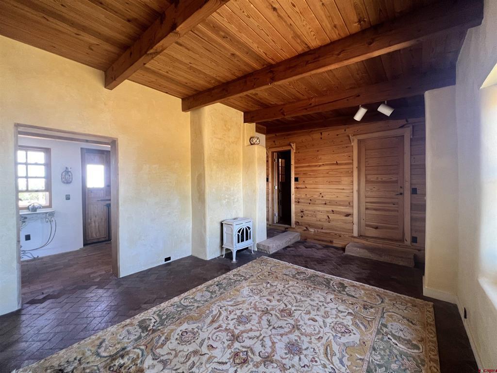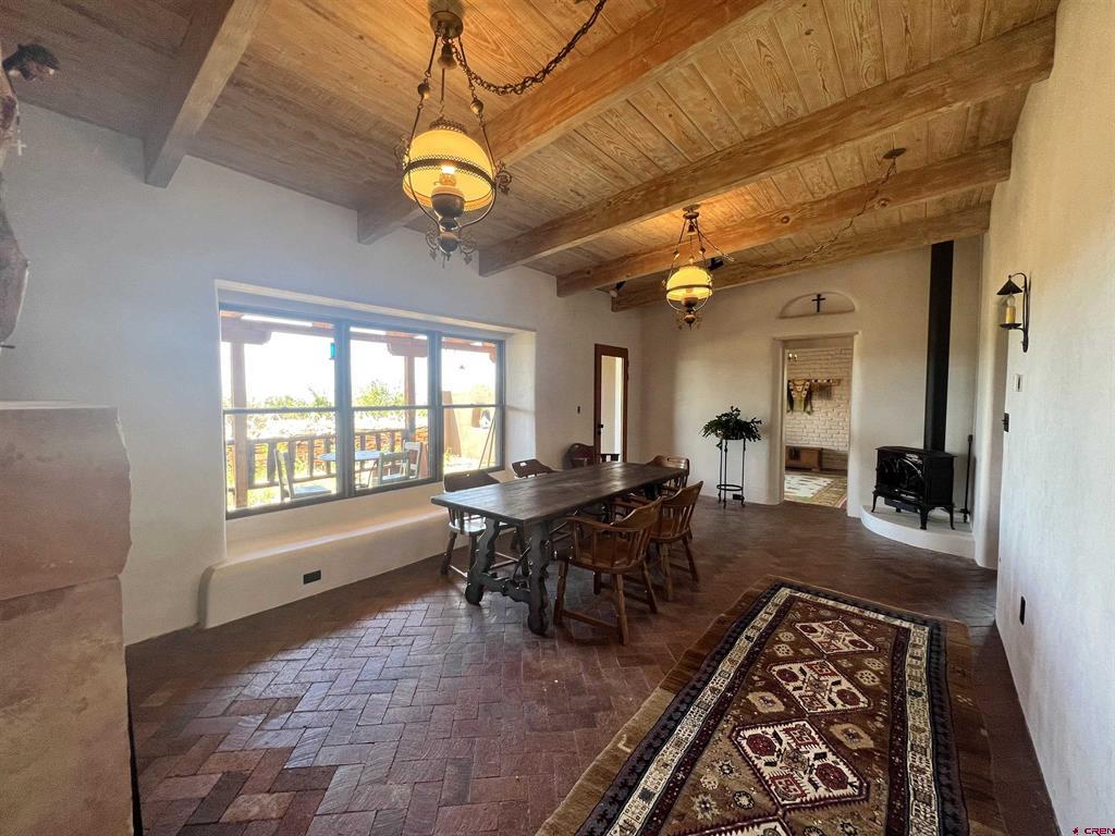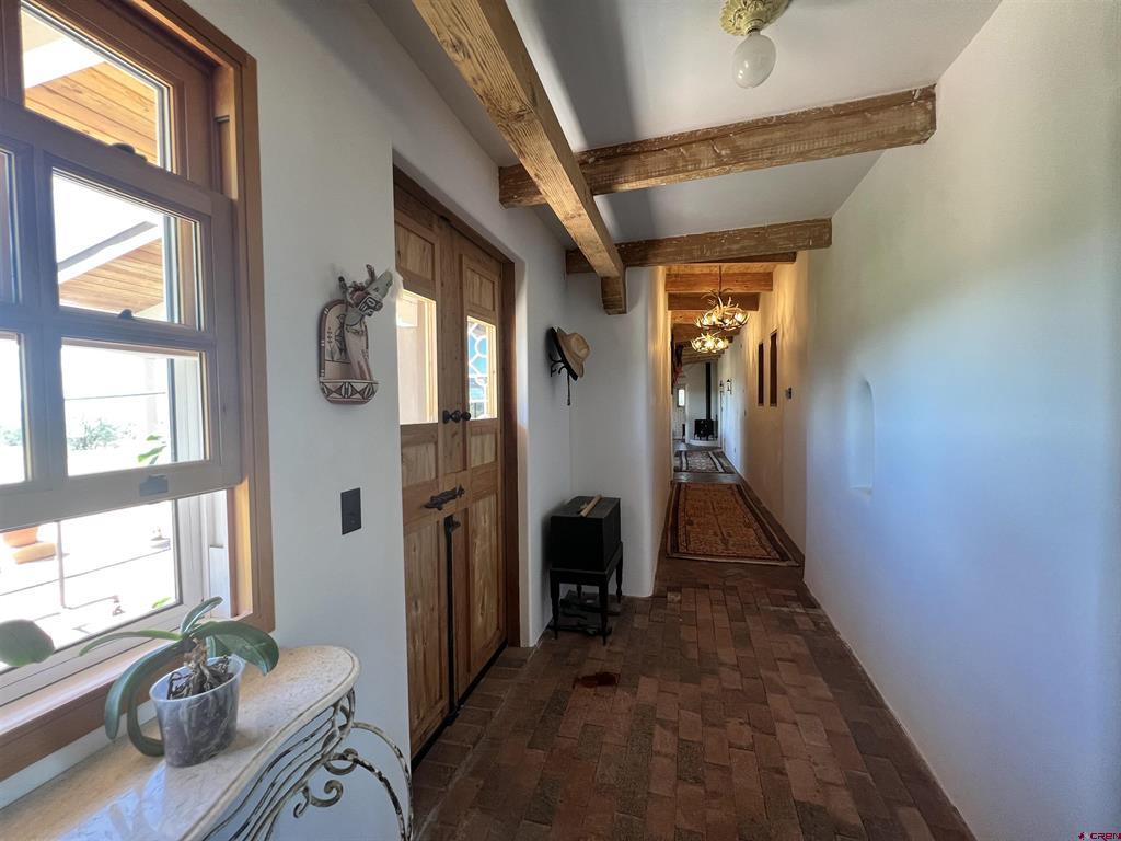 For the discerning buyer, offered is an extraordinary adobe 3,424 SF home with attached Casita, on 24+irrigated acres. Secluded and private. Gorgeous views of Ute Mountain, a year-round running creek and 100-year-old conifers. Highest end construction, finishes and fixtures: Adobe walls up to 22" thick; solid brick floors in herringbone and running patterns; ceilings are pitched 9' - 11' of wood beams and Aspen tongue and groove; exterior doors are Schiavone Woodworks ($2,500 each, uninstalled) and Simpson French 10 light; interior doors are Simpson Spanish 8 raised panels in clear Douglas fir; windows are La Loma cedar ($2,500 each average, uninstalled) and vintage Anderson wood double hung; all door and window jamb and casings are clear cedar to last generations (imported from Frost Hardwood, San Diego, CA); garage carriage doors by Christie Woodworks in clear, vertical grain Douglas Fir ($8,000, uninstalled); all exterior finishes are oil based; hand painted Mexican tile details in kitchens and baths; 7 fireplaces - 4 Jotul cast iron, enameled and thermostat controlled ($4.500 each, uninstalled), 1 large Rumford fireplace with gas log insert and Dakota Stone mantel ($18,000) and 2 Kiva (corner) wood burning; British AGA 3 oven cooker in cobalt blue ($12,000 installed and no longer imported into the USA) with Mexican tile hood; Bosch SS dishwasher, GE Monogram SS fridge, hand hammered copper sink with $1,000 Rohl Italian bronze faucet set and Dakota Stone countertops. To build this home today is $500 - $600SF. A separately deeded, equally high-end 3 Bedroom 2 Bath residential home on 3.630 Acres with a natural stone facade will be offered separately.
