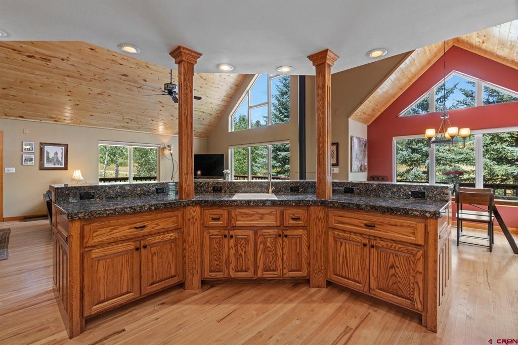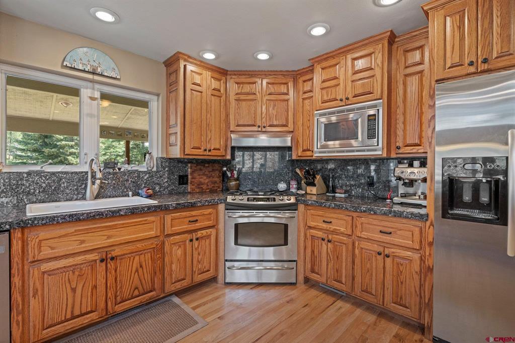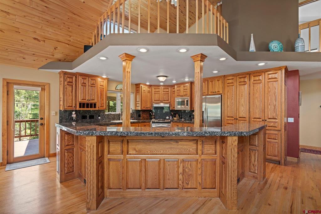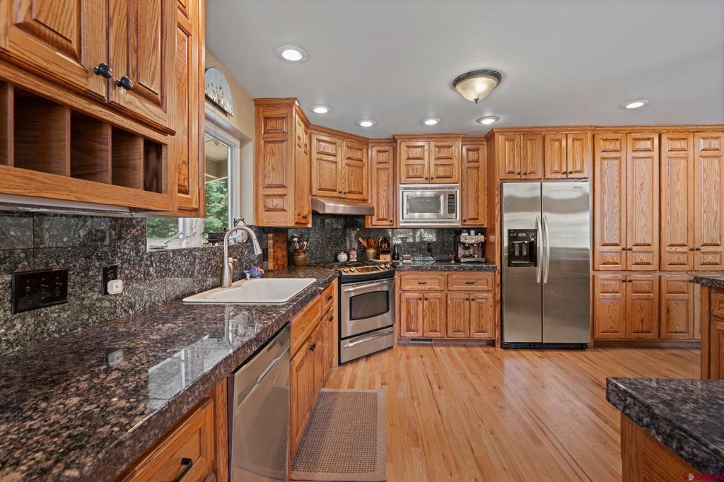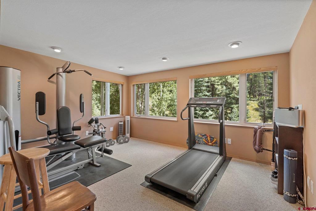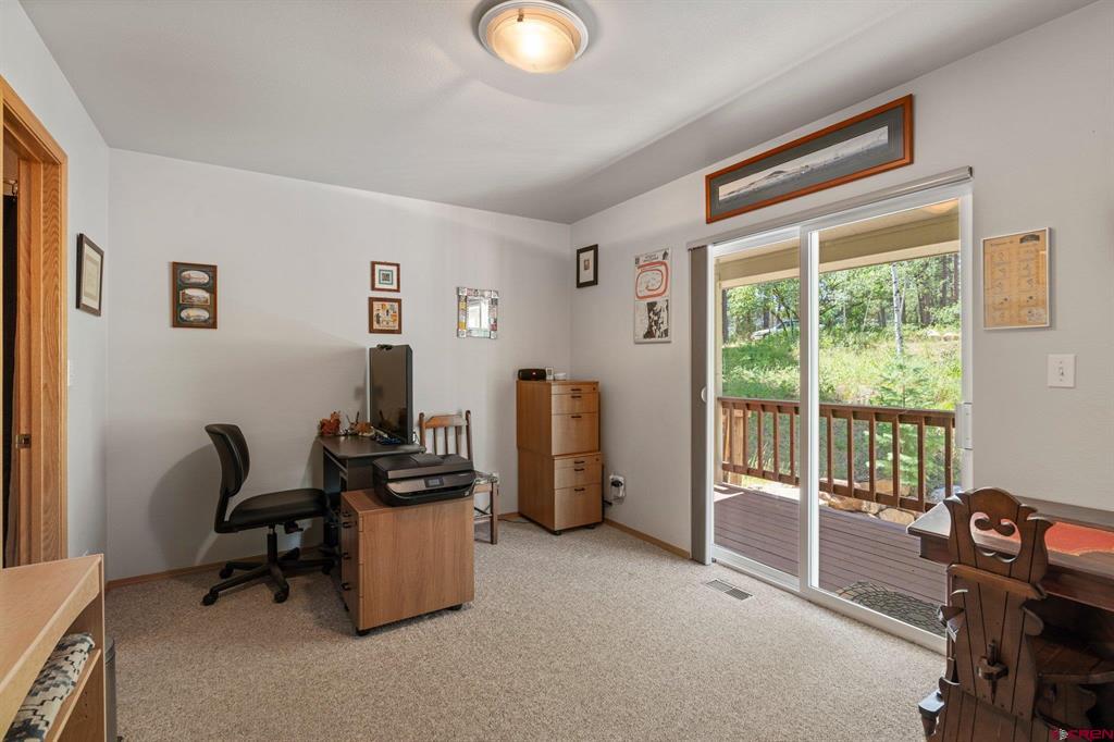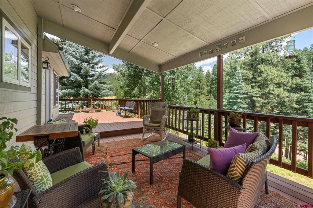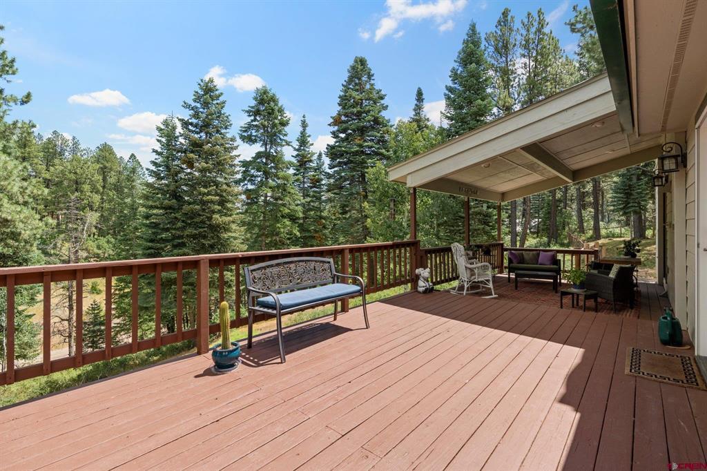 Welcome to a picturesque Colorado Mountain retreat, nestled amidst towering Ponderosa Pines, Pinons, and Blue Spruce trees. This residence offers a sensation akin to being ensconced in a charming treehouse. Step inside to discover the elegance of wood floors, the sophistication of granite counters, and the modernity of updated Kitchen and Baths. An expansive hobby space awaits, along with gym. 2-car attached garage and an additional 2-car-plus workshop detached garage – a haven for car and motorcycle aficionados. A delightful guest suite adds to the allure. Just a short 20-minute drive to downtown Durango, and a mere 10 minutes to both Lemon Reservoir and the vast expanse of the San Juan National Forest – an idyllic haven for outdoor enthusiasts.