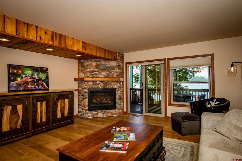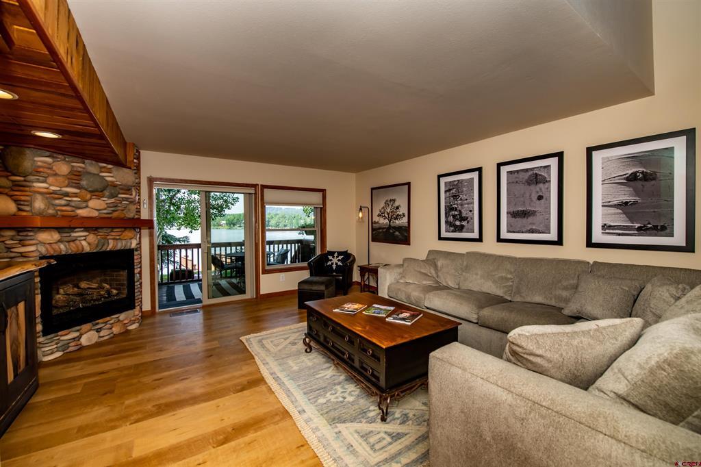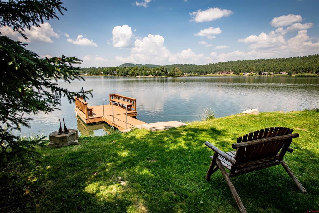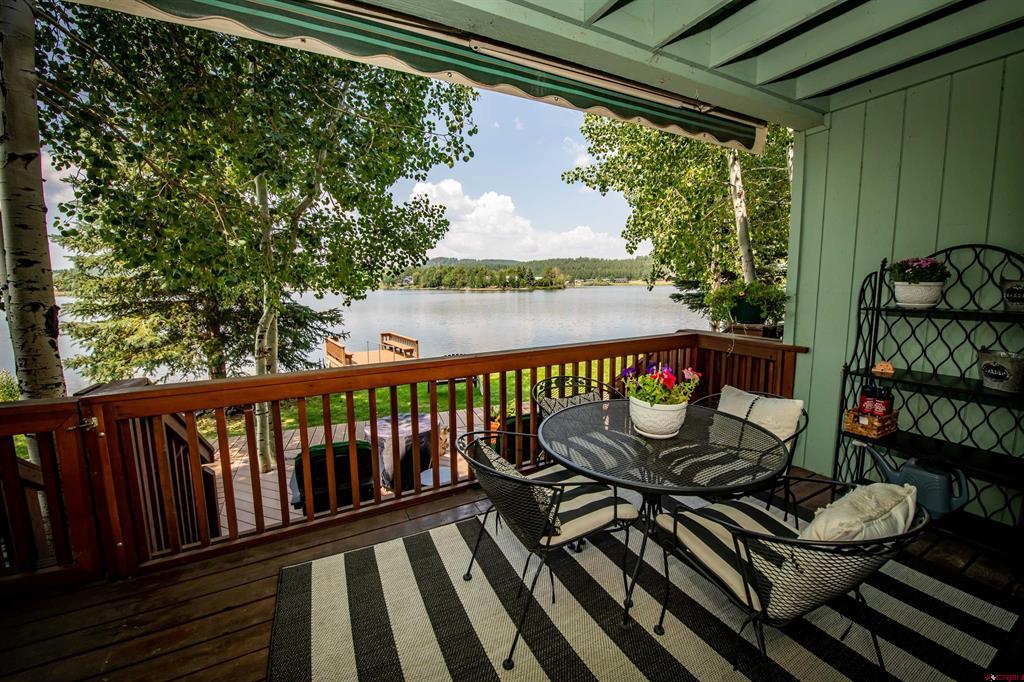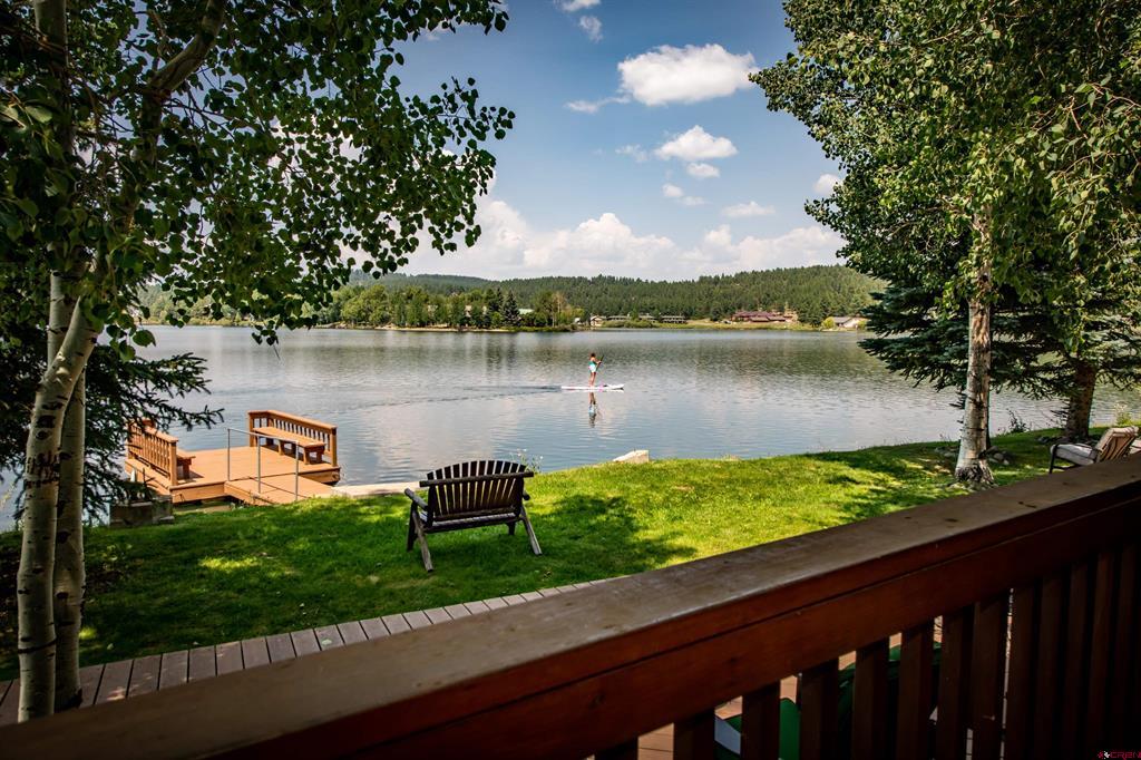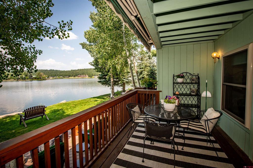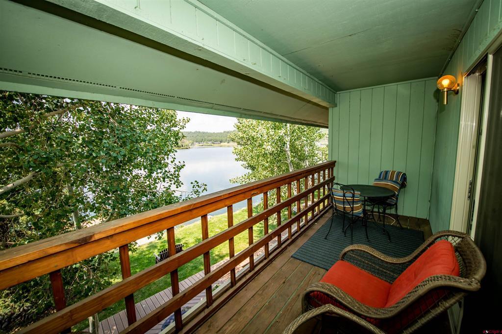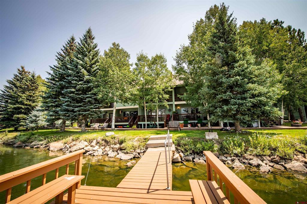 Remodeled condo directly on Lake Pagosa! Coveted and rarely available, this condo is truly one-of-a-kind. The ground level has direct access to the lake with community lakefront seating and a boat dock for ease of kayaking, fishing or mastering that stand-up board. The living area has direct access to the 17' long deck, a custom bar with wine refrigerator, and lovely river rock, stacked, gas fireplace. For additional enjoyment, there is a lower level deck for extra seating and a firepit which you will love on those cool August nights... The kitchen has GE appliances, including washer and dryer, granite counters with undermount double sink, bar seating for 3, room for table dining for 4-6 and and even new cabinetry. Portable air-conditioner units are in both bedrooms. The Master bedroom is spacious, has an additional gas fireplace, river rock facing, a walk in closet, shower and privacy toilet. The private balcony beckons for lounge chairs and a "table for 2", for a more intimate approach to enjoying the lake. Adjacent to the second bedroom, with its own 3/4 bathroom, is a perfect area for an office, play space or additional sleeping. There is storage galore with even an unfinished 14' X 16' lower level room that is perfect for larger sporting equipment, suitcases, food storage, holiday decorations, or maybe a wine cellar. The location is minutes to all recreational opportunities, shopping, restaurants and medical facilities. Because the location on the lake is so special, units in this condo development never come on the open market. You might find a single family home on one of the lakes for a minimum of $1.5M…or you could own this condo for a fraction of the cost. Hurry and congratulate yourself for being lucky enough to own this special piece of Pagosa!