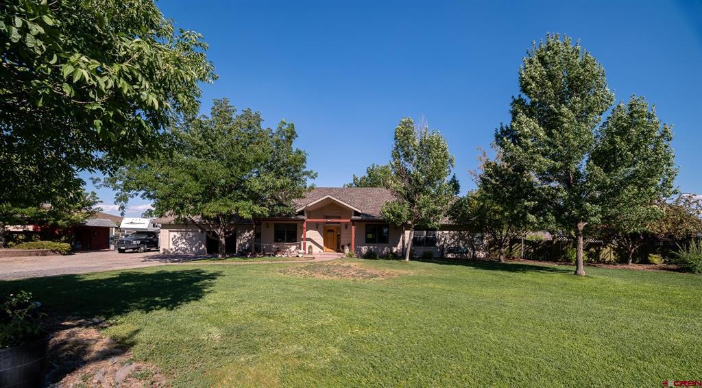 If you are looking for your Country Dream home, you have found it with this Quality Custom Built Home! With a park like setting on the edge of Coogan's Bluff and at the end of a private lane, you will enjoy views of the San Juans, Grand Mesa, Uncompahgre Plateau, Black Canyon or the West Elks from every part of the 4.62 acre Property. Front and back yards are fully fenced with a 11 zone sprinkler system, irrigation pond, Horse corral with an automatic Bar Bar A waterer, RV parking, outbuildings and a few Cherry trees. With a covered back patio and covered front porch, you won't want to miss the incredible Western Slope Sunrises and Sunsets. T&G vaulted ceilings and hardwood floors flow throughout the home, 2 gas fireplaces, central vacuum, Butlers pantry, laundry room and an insulated and heated oversized 2 car garage with overhead storage. Waking up with the Serenity surrounding you, everyday will feel like you are on vacation.