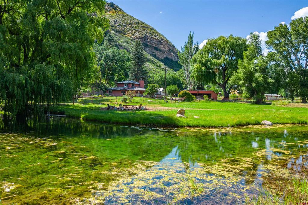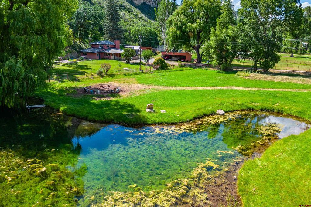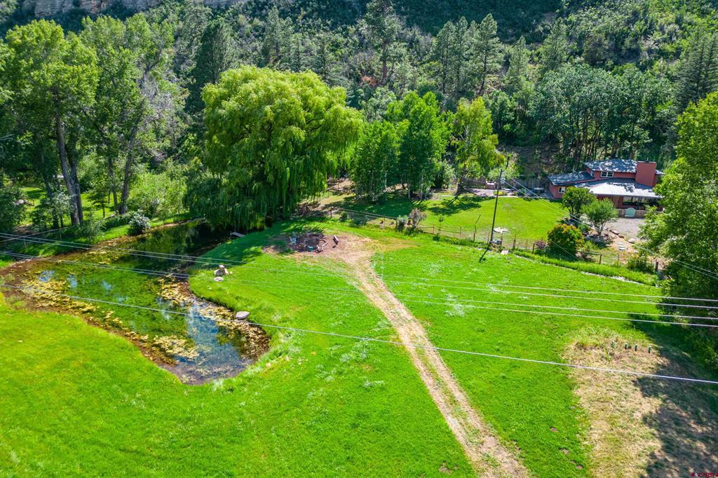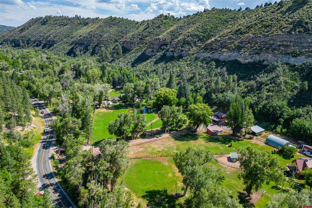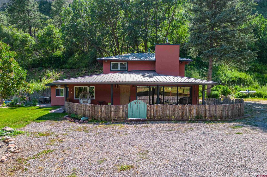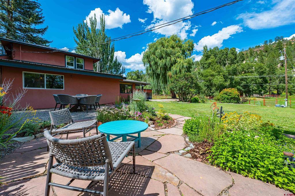 Junction Creek frontage, bordering public lands, irrigated horse property, tastefully remodeled, and only 1.5 miles to the fairgrounds and Durango Rec Center. Junction Creek runs through the northern portion of the property, while a spring-fed pond covers the west, beautiful cliffs to the south bordering BLM and CO State Land, surrounded by irrigated pasture for the animals, lovely and mature landscaping and gardens, cliff views, old-growth trees, making this ranch home on 11+ acres a little slice of heaven. Set up for horses, bring the donkeys or goats, the Quonset barn has paddocks, watering stands and two separate pastures for easy grazing. A large carport for parking toys, tractors, and an original detached garage for additional storage. Interior of the home is cozy and welcoming with loads of natural light in the living space, centered by a nice pellet stove for cool winter nights. Spacious kitchen with a breakfast nook looking out to the west patio and gardens. Primary bedroom on the main level with a remodeled bath. Upstairs in the home are two spacious bedrooms and a perfect vintage look bathroom that perfects the space. Mature landscaping includes outdoor seating area with pavers, a covered front porch for enjoying morning coffee, lilacs, huge willow trees, blue spruce, pines, and plentiful flowers. A private yoga studio built in 2022, with electric and heat, a perfect getaway for a reading room or some exercise, an office, or just a sweet space set amongst the trees. The home was remodeled in 2018 with plenty of new features, then again remodeled in 2021 to include new septic tank and leach field, new water heater, water softener, new boiler 2018, fresh paint, bathrooms, and more. This beautifully manicured property is ready for a new owner, can come mostly furnished, and ready for immediate occupancy. Enjoy country living, yet close to town, no HOA, no covenants, and space to enjoy. Bridge over Junction Creek was redone a few years ago, super sturdy. Close to all that Durango living has to offer, convenient to town, across the street from rock climbing and the Colorado Trail just down the road, 25 minutes to Purgatory and only a few minutes to the River Trail. Full RV hookups with electrical, water, sewer. Tiny home onsite can be purchased, but is not included in current list price.