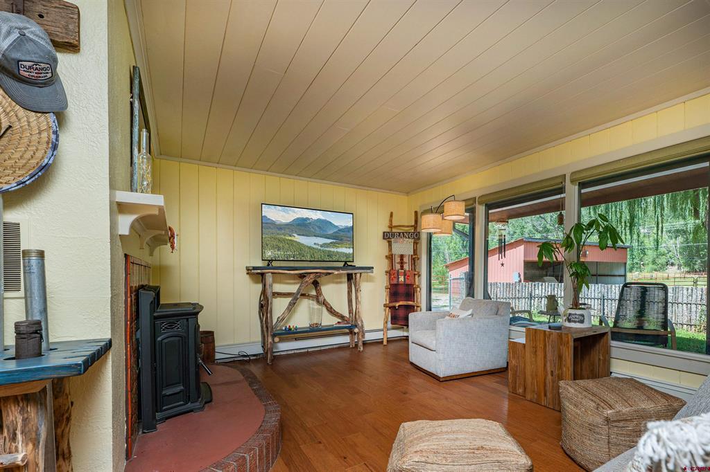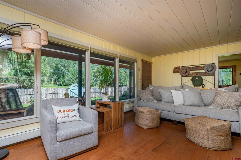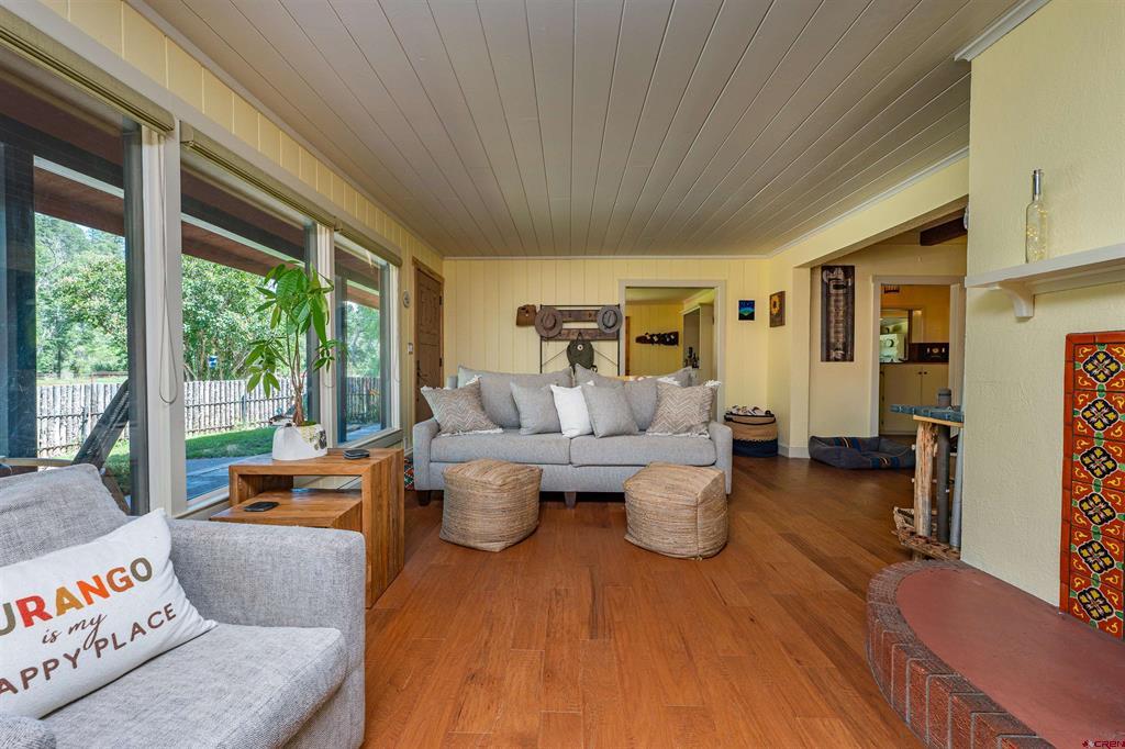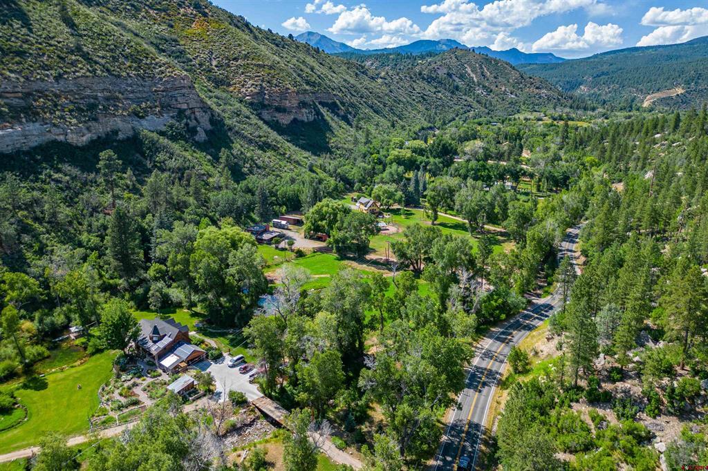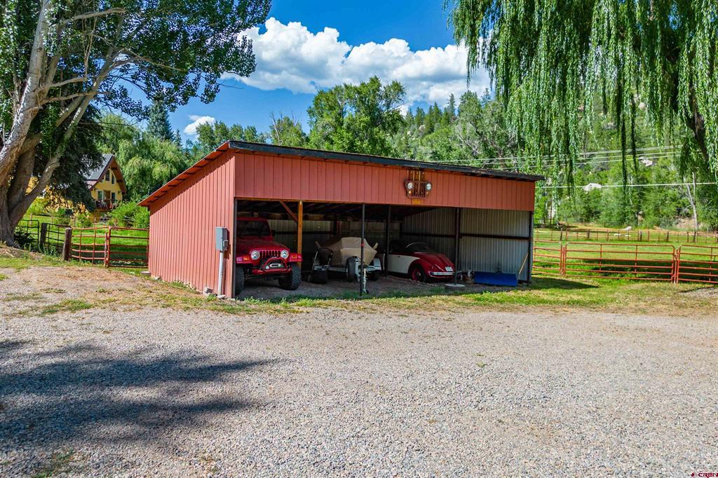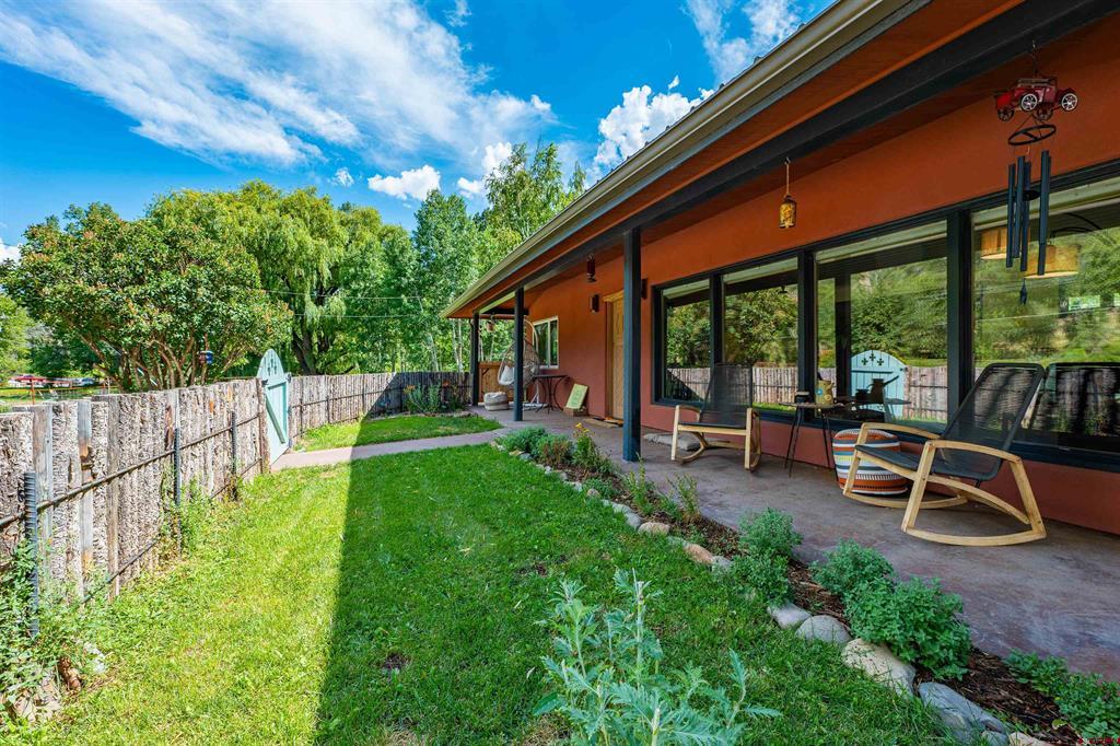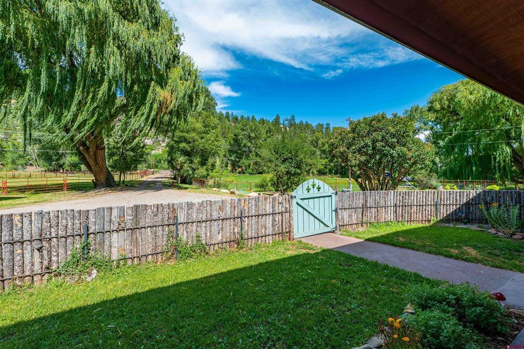 Junction Creek frontage, bordering public lands, irrigated horse property, tastefully remodeled, and only 1.5 miles to the fairgrounds and Durango Rec Center. Junction Creek runs through the northern portion of the property, while a spring-fed pond covers the west, beautiful cliffs to the south bordering BLM and CO State Land, surrounded by irrigated pasture for the animals, lovely and mature landscaping and gardens, cliff views, old-growth trees, making this ranch home on 11+ acres a little slice of heaven. Set up for horses, bring the donkeys or goats, the Quonset barn has paddocks, watering stands and two separate pastures for easy grazing. A large carport for parking toys, tractors, and an original detached garage for additional storage. Interior of the home is cozy and welcoming with loads of natural light in the living space, centered by a nice pellet stove for cool winter nights. Spacious kitchen with a breakfast nook looking out to the west patio and gardens. Primary bedroom on the main level with a remodeled bath. Upstairs in the home are two spacious bedrooms and a perfect vintage look bathroom that perfects the space. Mature landscaping includes outdoor seating area with pavers, a covered front porch for enjoying morning coffee, lilacs, huge willow trees, blue spruce, pines, and plentiful flowers. A private yoga studio built in 2022, with electric and heat, a perfect getaway for a reading room or some exercise, an office, or just a sweet space set amongst the trees. The home was remodeled in 2018 with plenty of new features, then again remodeled in 2021 to include new septic tank and leach field, new water heater, water softener, new boiler 2018, fresh paint, bathrooms, and more. This beautifully manicured property is ready for a new owner, can come mostly furnished, and ready for immediate occupancy. Enjoy country living, yet close to town, no HOA, no covenants, and space to enjoy. Bridge over Junction Creek was redone a few years ago, super sturdy. Close to all that Durango living has to offer, convenient to town, across the street from rock climbing and the Colorado Trail just down the road, 25 minutes to Purgatory and only a few minutes to the River Trail. Full RV hookups with electrical, water, sewer. Tiny home onsite can be purchased, but is not included in current list price.