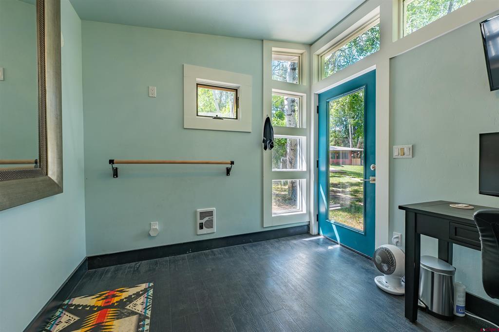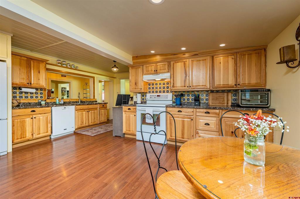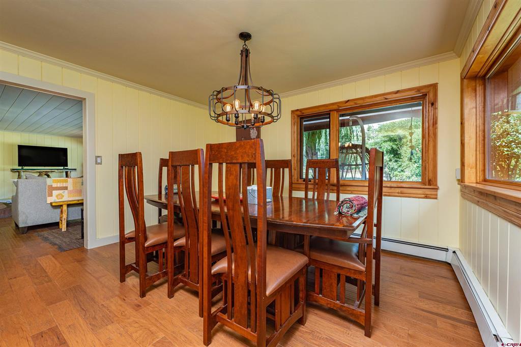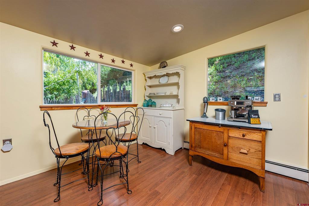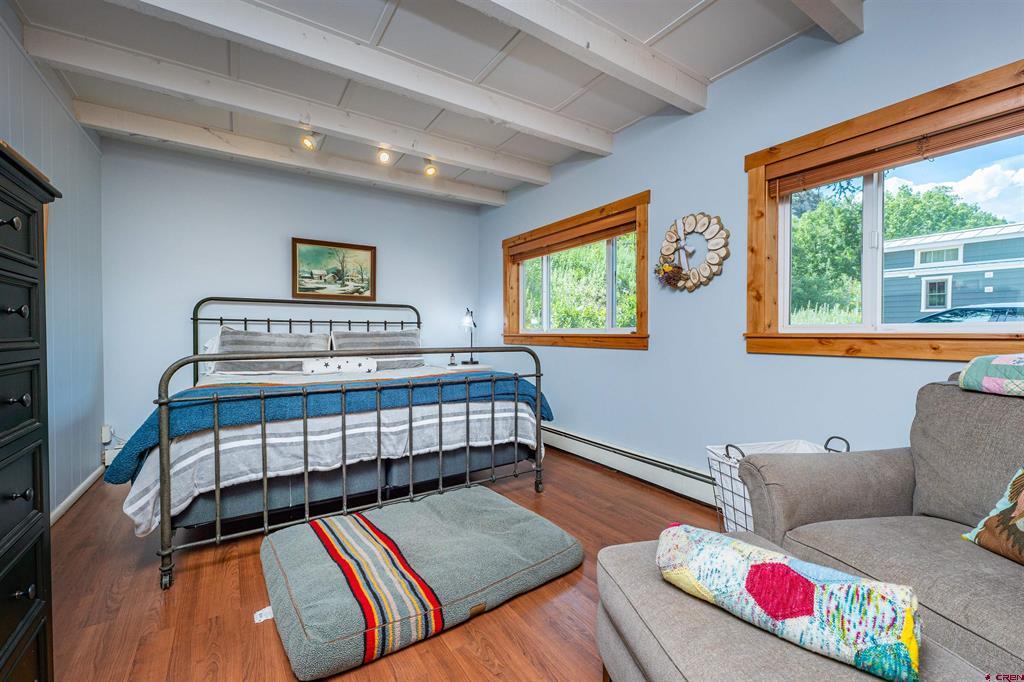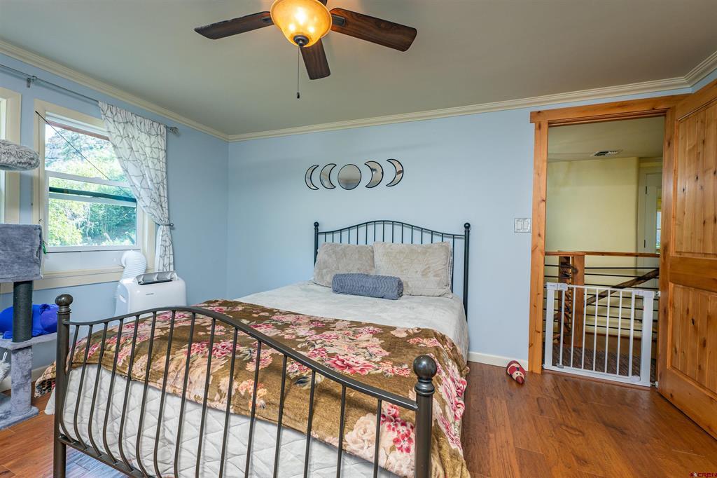 Junction Creek frontage, bordering public lands, irrigated horse property, tastefully remodeled, and only 1.5 miles to the fairgrounds and Durango Rec Center. Junction Creek runs through the northern portion of the property, while a spring-fed pond covers the west, beautiful cliffs to the south bordering BLM and CO State Land, surrounded by irrigated pasture for the animals, lovely and mature landscaping and gardens, cliff views, old-growth trees, making this ranch home on 11+ acres a little slice of heaven. Set up for horses, bring the donkeys or goats, the Quonset barn has paddocks, watering stands and two separate pastures for easy grazing. A large carport for parking toys, tractors, and an original detached garage for additional storage. Interior of the home is cozy and welcoming with loads of natural light in the living space, centered by a nice pellet stove for cool winter nights. Spacious kitchen with a breakfast nook looking out to the west patio and gardens. Primary bedroom on the main level with a remodeled bath. Upstairs in the home are two spacious bedrooms and a perfect vintage look bathroom that perfects the space. Mature landscaping includes outdoor seating area with pavers, a covered front porch for enjoying morning coffee, lilacs, huge willow trees, blue spruce, pines, and plentiful flowers. A private yoga studio built in 2022, with electric and heat, a perfect getaway for a reading room or some exercise, an office, or just a sweet space set amongst the trees. The home was remodeled in 2018 with plenty of new features, then again remodeled in 2021 to include new septic tank and leach field, new water heater, water softener, new boiler 2018, fresh paint, bathrooms, and more. This beautifully manicured property is ready for a new owner, can come mostly furnished, and ready for immediate occupancy. Enjoy country living, yet close to town, no HOA, no covenants, and space to enjoy. Bridge over Junction Creek was redone a few years ago, super sturdy. Close to all that Durango living has to offer, convenient to town, across the street from rock climbing and the Colorado Trail just down the road, 25 minutes to Purgatory and only a few minutes to the River Trail. Full RV hookups with electrical, water, sewer. Tiny home onsite can be purchased, but is not included in current list price.