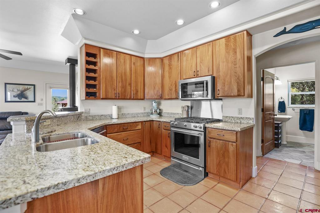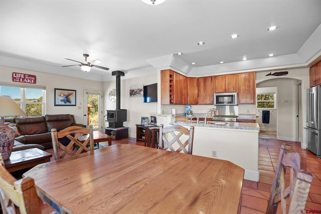 Escape to the peaceful allure of this 3-bedroom, 4-bathroom Dolores home, offering 2600 square feet of modern comfort and scenic beauty. Step inside to a bright living area with vaulted ceilings, seamlessly connecting to the well-equipped kitchen featuring stainless steel appliances, a breakfast bar and a coffee bar. Adjacent is the dining area overlooking stunning landscapes, perfect for gatherings. A private primary bedroom presents an ensuite bathroom and ample closet space. Two more bedrooms offer flexibility, while the third-story bonus office space provides an ideal work-from-home sanctuary. Enjoy the convenience of 2 attached garages, and soak in the valley views. Outdoor enthusiasts will appreciate the nearby hiking, biking, fishing, and boating opportunities at McPhee Reservoir. This Dolores gem invites you to experience a serene lifestyle. Schedule a showing today and make this retreat your own.