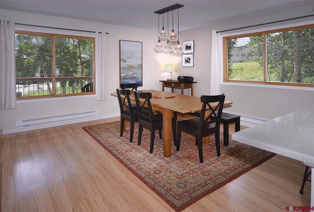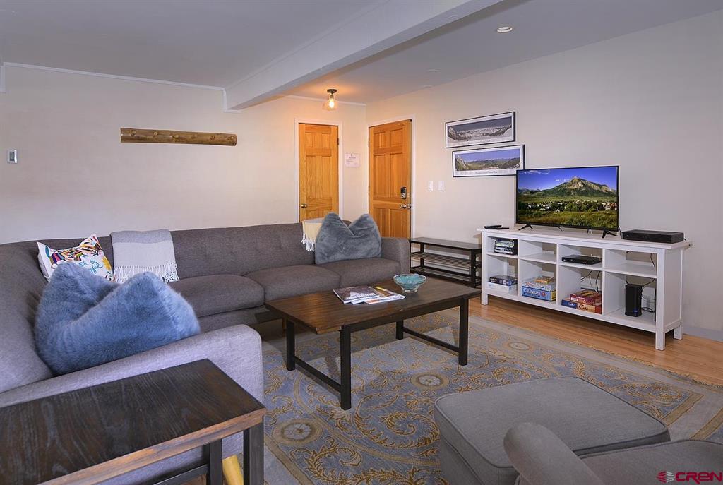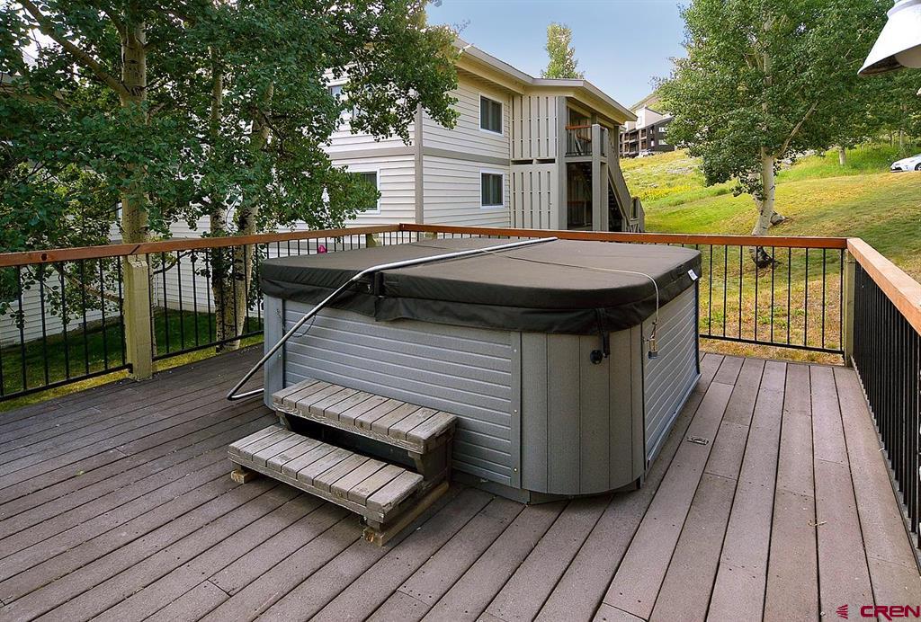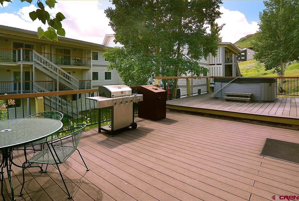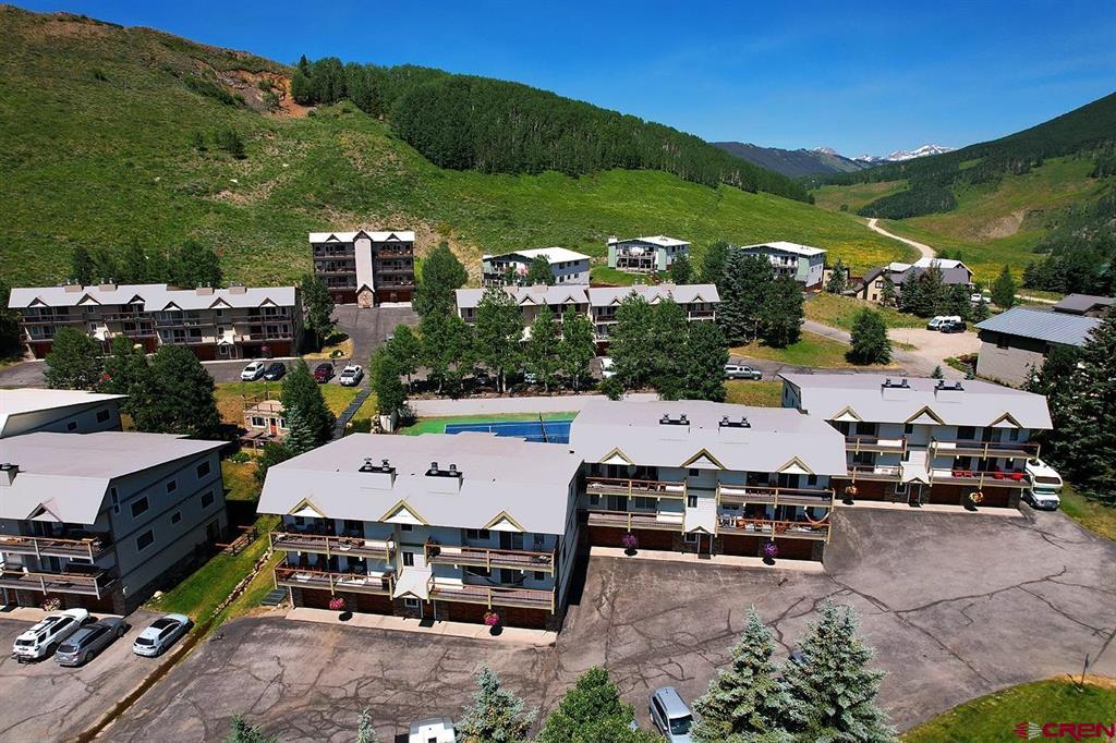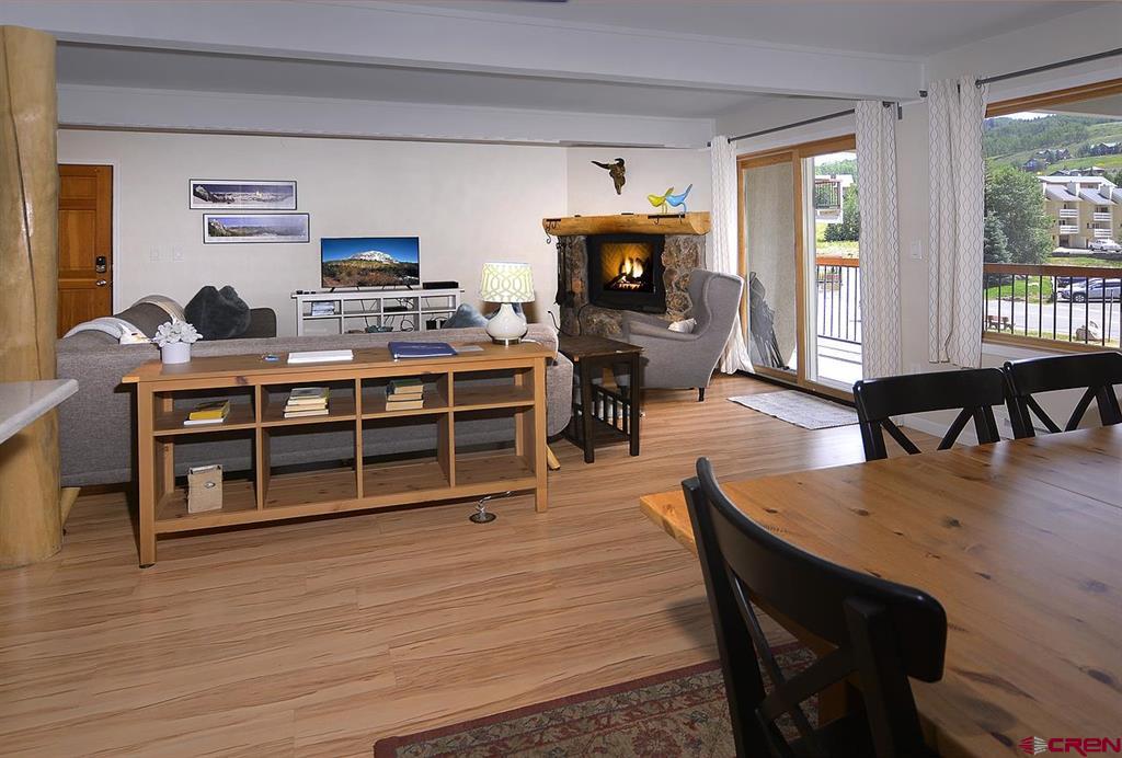 Welcome to 721 Gothic Road, Out Run A1! This updated 3 bedroom / 2 bathroom unit, offered fully furnished, has beautiful wood flooring throughout the entire condo and enjoys a bright, open feel. Tastefully appointed, the kitchen is complete with stainless appliances, under mount sink and wooden cabinetry. All bedrooms are nicely sized each with their own closet. The primary bedroom suite has its own private deck allowing easy access to the outdoors. The living room is warm and welcoming with a fireplace to cozy up to after a days outing. From the living room, venture out onto your private balcony where you can take in the gorgeous mountain views. Enjoy your own private garage and storage closet offering a place to store all your gear! The Out Run complex is located in an extremely convenient location in Mt. Crested Butte. The Condo free shuttle bus stops just outside the front door making getting to the base area and to downtown Crested Butte a breeze. This complex has great amenities including a common area tennis court, grill area and hot tub.