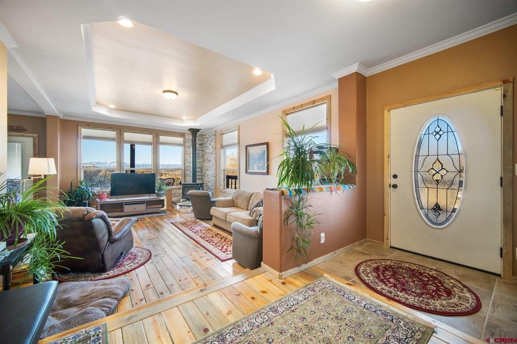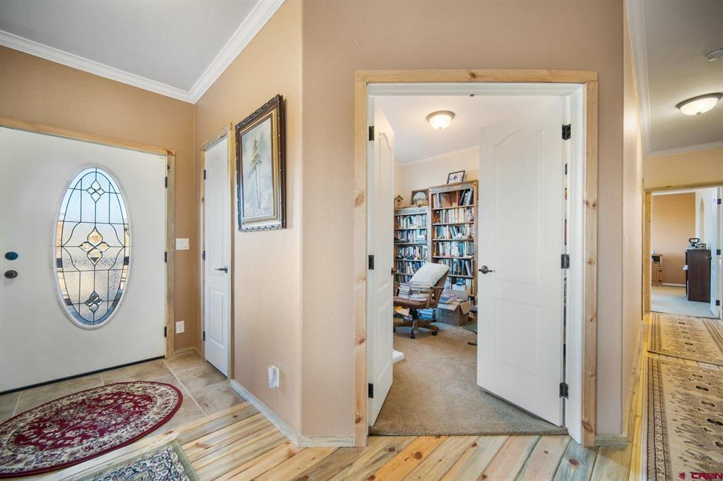 Ready to start your hobby farm? Look no further than 121 Happy Valley Lane. This 2 bedroom and 2.5 bathroom home is complete with beautiful touches throughout. Enjoy the views from either your front deck or from your living room as they both overlook the mountains. The kitchen is ready for all your cooking needs with a large walk-in pantry and updated appliances. Find a large full bathroom in the hallway and a perfectly sized bedroom at the back of your home. The primary room sits on the end of the home with an oversized en suite complete with double sinks. The home also has an office that would be a great location for homeschooling, craft room, or for those working from home. To top it all off the home is equipped with a large laundry room and mudroom with a half bath tucked off the back door. Outside, enjoy the fenced pasture, ponds, and over sized shed. Sitting on 6 acres this home gives you plenty of elbow room for those looking for a quiet neighborhood and easy access into Ignacio and Arboles.