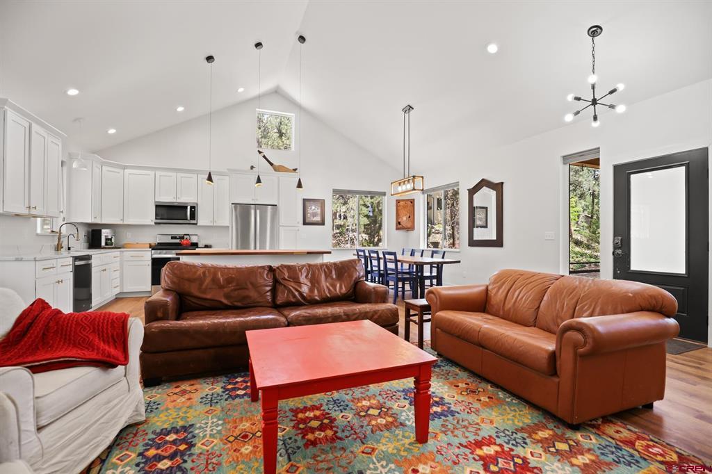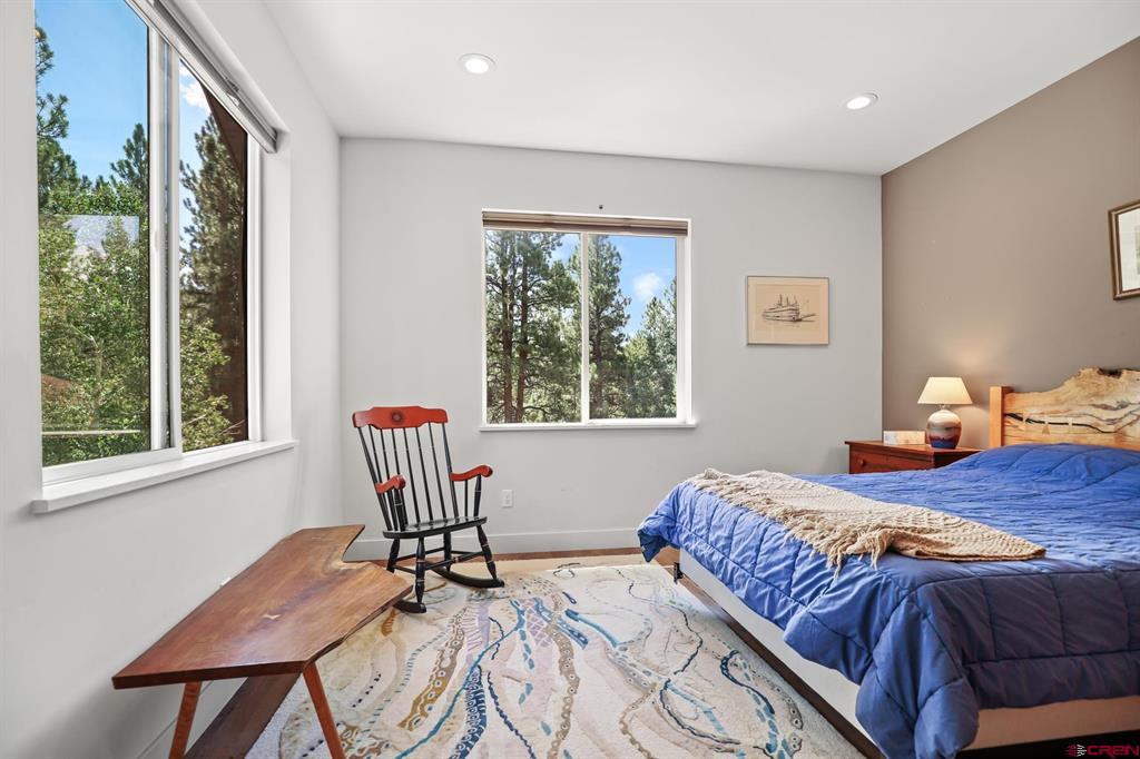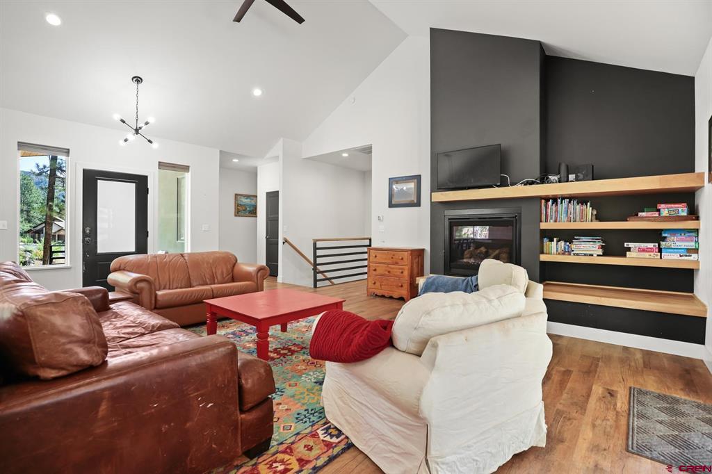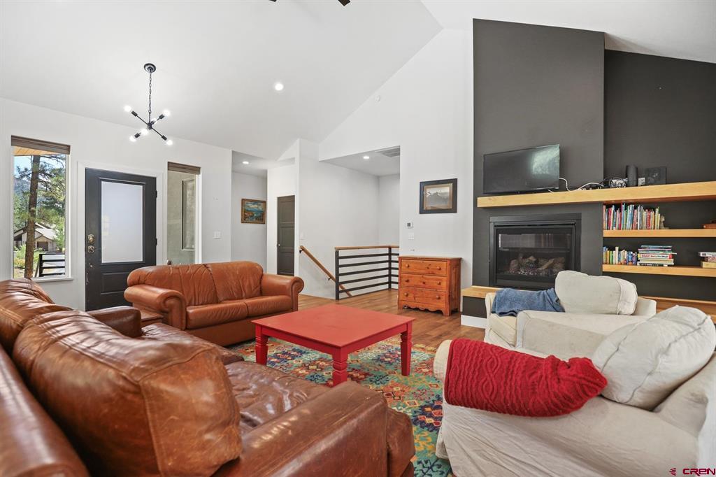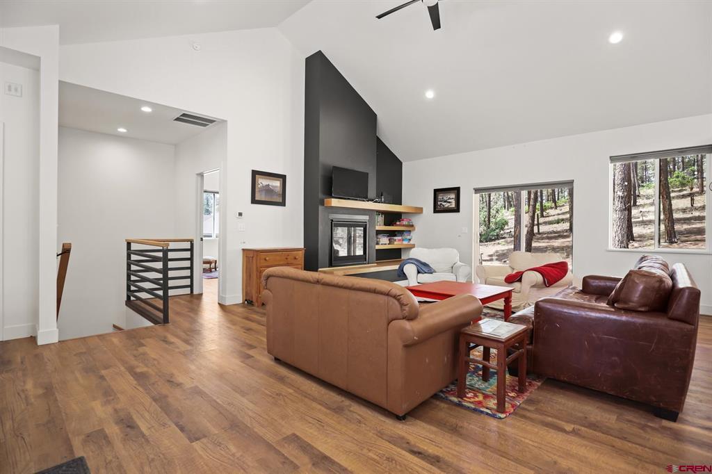 Built in 2020, this is one of the newer homes in the original Edgemont Ranch area, situated on what is arguably one of the nicest homesites in the entire development, comprising over half an acre at the end of a very private cul-de-sac. The topography of the site offered an opportunity to design a floorplan that provides a fresh mountain contemporary style with vaulted ceilings, gas fireplace, and an open concept living/dining/kitchen area with abundant natural light and sliding patio doors leading to the covered back deck and expansive natural, low-maintenance yard space beyond. This level offers a generously sized primary suite with beautiful windows and views of the pines, a walk-in closet and attached full bath with soaking tub and separate shower, as well as an additional bedroom with adjacent ¾ bath off of the central hallway. The lower level is comprised of a second living room/game room, two additional bedrooms, a full bath, and laundry room with washer and dryer included. The layout is perfect for providing separation for various household members if desired, plenty of flexible living space, and abundant storage areas for all of the toys and equipment commensurate with the Durango lifestyle. It's rare for a home to live so comfortably and accessibly, while simultaneously offering so much expansiveness and flexibility in its floor plan. It's perfect for hosting your guests, or for any sized family, while providing right-sized living areas that maximize the efficiency of every square foot. Edgemont Ranch is the area's premier alpine neighborhood with seemingly endless open space, miles of trails, tennis court, playground, and over 1.5 miles of Florida river blue-ribbon fishing access, all of it providing out-the-back door adventure unique to any mountain community. The home is just a short-drive to Mercy Regional hospital as well as downtown Durango, with premiere restaurants and amenities, including all of the area's sought after recreational diversity. Rarely are buyers presented with a home that is so well crafted and realized that it offers a perfect floorplan, high-end and carefully selected finishes, and such an overwhelmingly appealing design aesthetic throughout.