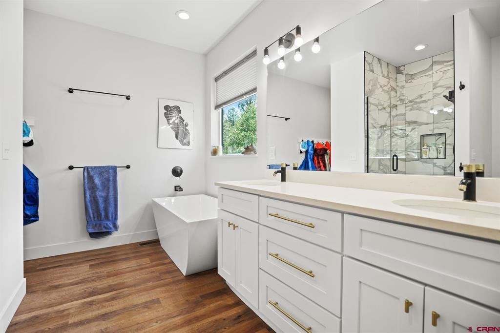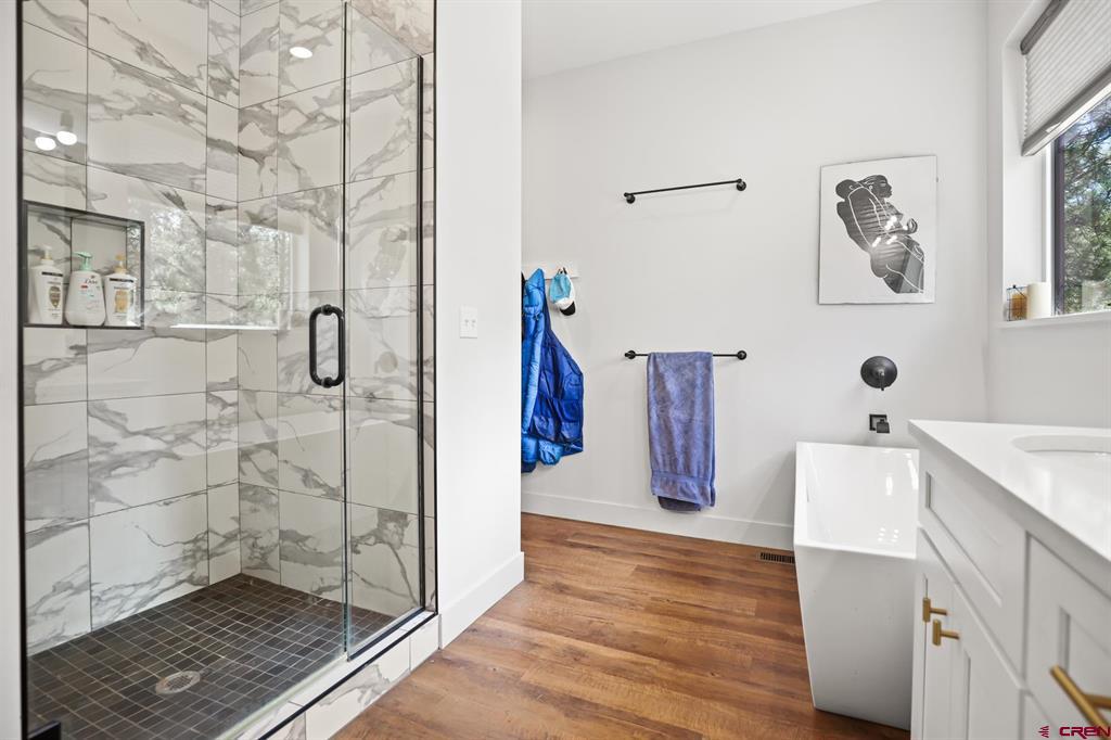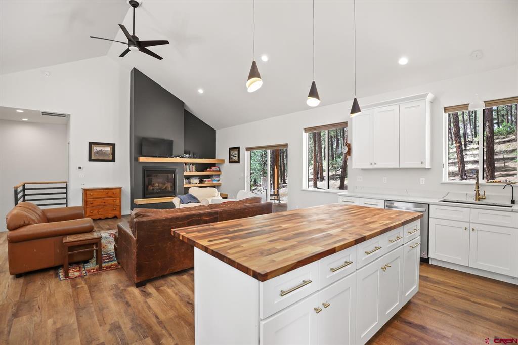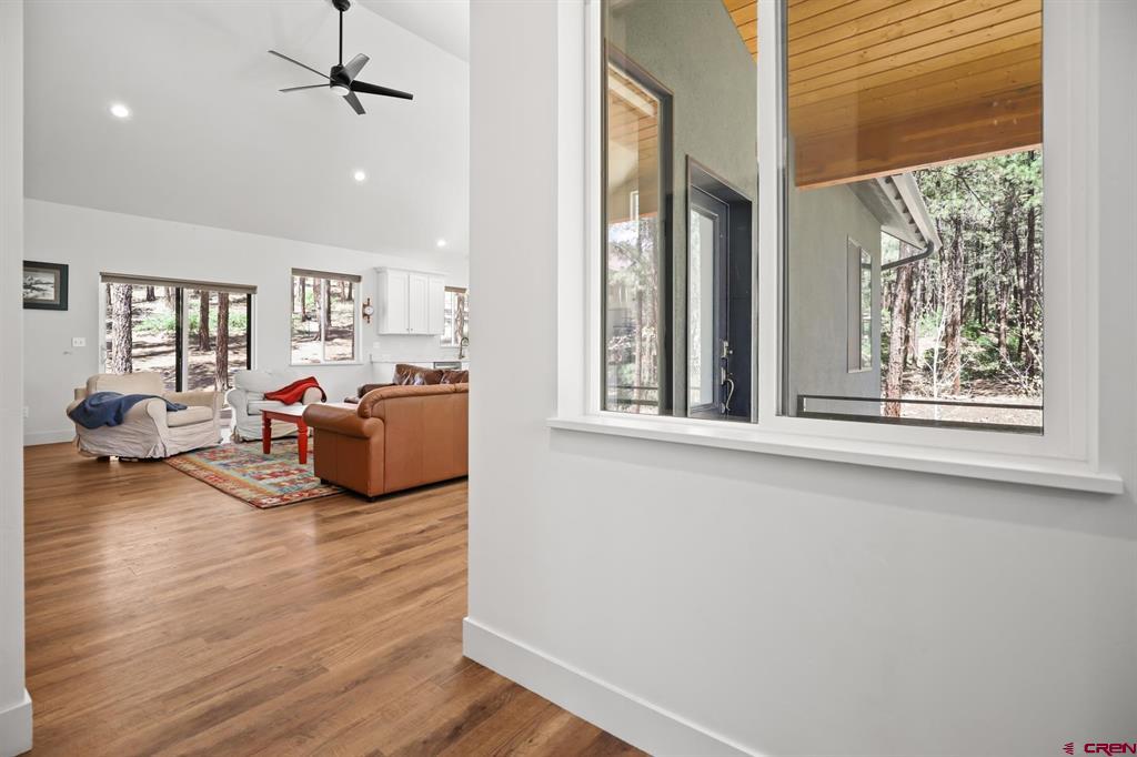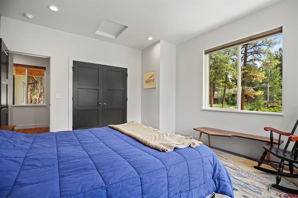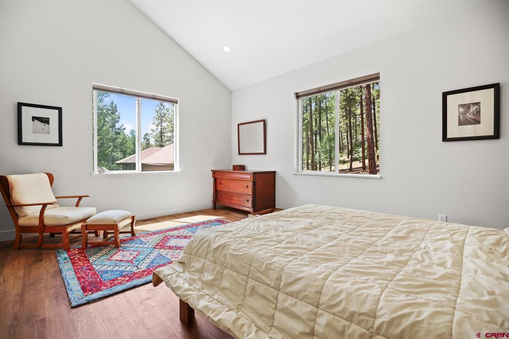 Built in 2020, this is one of the newer homes in the original Edgemont Ranch area, situated on what is arguably one of the nicest homesites in the entire development, comprising over half an acre at the end of a very private cul-de-sac. The topography of the site offered an opportunity to design a floorplan that provides a fresh mountain contemporary style with vaulted ceilings, gas fireplace, and an open concept living/dining/kitchen area with abundant natural light and sliding patio doors leading to the covered back deck and expansive natural, low-maintenance yard space beyond. This level offers a generously sized primary suite with beautiful windows and views of the pines, a walk-in closet and attached full bath with soaking tub and separate shower, as well as an additional bedroom with adjacent ¾ bath off of the central hallway. The lower level is comprised of a second living room/game room, two additional bedrooms, a full bath, and laundry room with washer and dryer included. The layout is perfect for providing separation for various household members if desired, plenty of flexible living space, and abundant storage areas for all of the toys and equipment commensurate with the Durango lifestyle. It's rare for a home to live so comfortably and accessibly, while simultaneously offering so much expansiveness and flexibility in its floor plan. It's perfect for hosting your guests, or for any sized family, while providing right-sized living areas that maximize the efficiency of every square foot. Edgemont Ranch is the area's premier alpine neighborhood with seemingly endless open space, miles of trails, tennis court, playground, and over 1.5 miles of Florida river blue-ribbon fishing access, all of it providing out-the-back door adventure unique to any mountain community. The home is just a short-drive to Mercy Regional hospital as well as downtown Durango, with premiere restaurants and amenities, including all of the area's sought after recreational diversity. Rarely are buyers presented with a home that is so well crafted and realized that it offers a perfect floorplan, high-end and carefully selected finishes, and such an overwhelmingly appealing design aesthetic throughout.