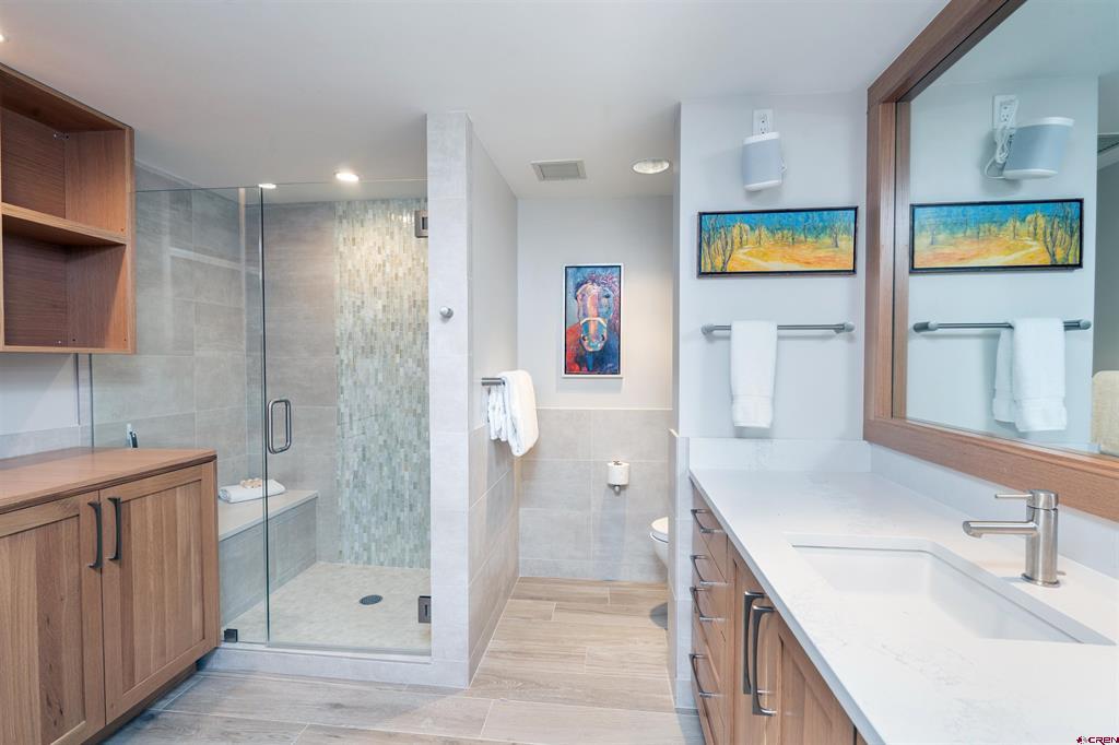 One of a kind in the Peaks. Two fully remodeled adjoining lodge units that are not subject to occupancy restrictions. The recent complete remodel replaced the small, low living room windows with large picture windows. Air conditioning was added with individual thermostats in each room. There are 270 degree views from San Sophia Ridge to the ski mountain to Mt Wilson. Ownership includes 8 passes to the Peak's 40,000 square foot spa. Valet parking. Ski valet service. Golf access. Art is not included in the sale. These units are managed by SilverStar Luxury Rentals. Two separate deeds, but Seller would prefer to sell them together. Must be seen.