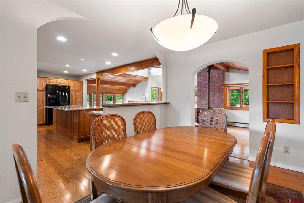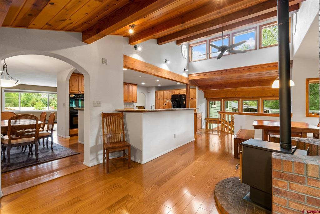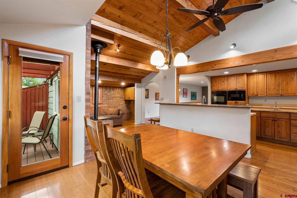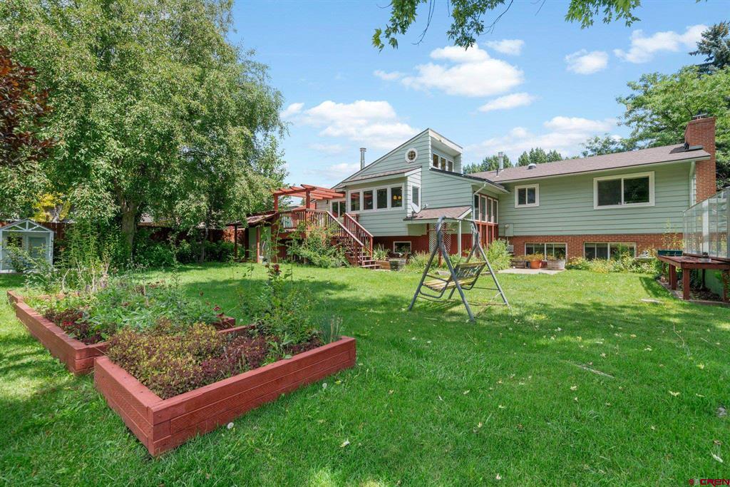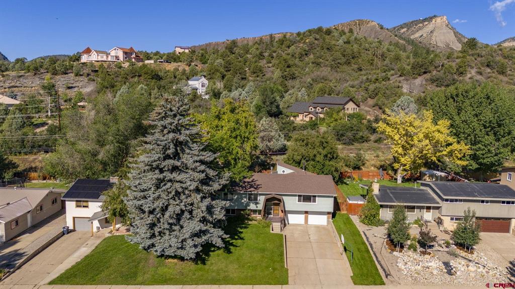 This exquisite updated split-level home is nestled on a generously sized lot in one of the most desirable locations in Durango. The in-town home backs to open space, offering unrivaled tranquility and privacy. This captivating residence boasts various features that cater to comfort, style, and functionality. Upon entering, you'll be greeted by an inviting atmosphere created by abundant natural light and attractive updates. The expansive chef's kitchen is the heart of the home, adorned with modern amenities catering to culinary enthusiasts. The double ovens, custom cabinets, and granite island with a convenient prep sink make it an ideal space for creating culinary masterpieces. Hardwood floors throughout the main level lead you through the open layout, connecting the spacious family rooms offering versatile relaxation and entertainment spaces. With three well-appointed bedrooms and three baths, including an updated primary bath, this home ensures everyone's comfort and convenience. Natural light pours in through the numerous windows, accentuating the beauty of the hardwood floors and the charming details such as the tongue and groove ceiling. The fireplace and woodstove provide warmth and ambiance during cooler seasons, creating an inviting space to gather with loved ones. Thanks to ample storage spaces thoughtfully integrated into the design, storage is never an issue. The hydronic baseboard heating system guarantees cozy winters, and the thoughtful layout promotes efficient cooling during the warmer months. Step outside to discover a serene oasis featuring mature landscaping, including a greenhouse for nurturing your green thumb. The .26-acre lot extends to the open space beyond, ensuring an uninterrupted connection to nature. The oversized two-car garage provides shelter for your vehicles and additional storage options. Built-in 1968, this home exudes timeless charm while seamlessly blending modern updates that complement its character. The desirable in-town location offers convenience to local amenities, shops, and restaurants, making this residence an ideal retreat that balances serenity with accessibility. Take advantage of the opportunity to own this remarkable split-level gem, where every corner reflects thoughtful design, comfort, and the joys of living in harmony with indoor elegance and natural beauty.