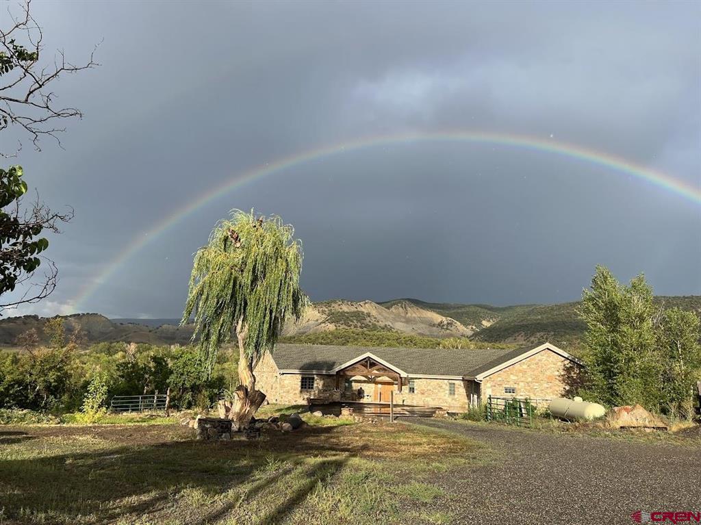 The River Runs Through it. The Uncompreghre River that is. At least 1/2 mile. 50 Acres MOL. Just surveyed. The property has a beautiful one level home built in 1999 by John Mack. Local Builder. Home is 2632 square feet with an oversized 2 car attached garage. 3 bedrooms, 2 and 1/2 bath. There is a smaller home on property that has been rented for several years. Two out buildings Metal Construction. 1st building is 58.5 X 38.5 with 3 10 foot overhead doors. It has a 1/2 bath. Second building is 32 X 56 has been used as a gym. Property is wooded and has pasture to the South and West. Excellent fishing holes along many places on the River. Must See.