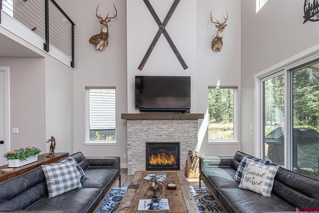 Escape to your new mountain retreat! Built in 2021, this lovely four bedroom, four bathroom home sits directly across from Purgatory Ski Resort, on a quiet cul-de-sac that borders National Forest and is just a short walk to Twilight Lake. This stunning property feels like it’s brand new and features plenty of natural light, modern finishes, and an open floor plan that’s perfect for entertaining. The MAIN LEVEL features a large open concept kitchen with quartzite countertops, custom raised panel cabinets, stainless steel appliances with double ovens, tile backsplash, wine fridge and a breakfast bar with seating for five. The kitchen flows seamlessly into the spacious great room with soaring vaulted ceilings, huge windows and a cozy gas log fireplace to warm up on the snowy Winter evenings. A large double sliding door off the great room allows you to take full advantage of the private covered outdoor patio space, peaceful surroundings and open-air living in the Summer months. The patio also comes complete with a gas fire pit and hot tub, perfect for soaking after a day on the slopes. The open concept main floor continues with multiple dining area options as well as game room space (as it’s currently set up with a convertible ping pong/pool table). This additional flex space also has a large double sliding door with access to the patio for more fresh air and outdoor living space. This level also hosts one bedroom with an en-suite bathroom (designed for guest use, but could also be used as the primary bedroom). A lovely sitting area, powder room, and full sized laundry room round out the main level of the home. On the UPPER LEVEL you’ll find the second and main primary bedroom with 5 piece bathroom and extra large walk-in closet. Also upstairs are two additional bedrooms each with two twin beds in them, another full bathroom and a large open loft area. The loft overlooks the great room and is currently being utilized as an extra game/flex space but could be a perfect home office set up as well. Finally, a two car garage is plenty big enough to store all your gear and toys and has a convenient side door to the exterior of the home as well. The home comes FULLY FURNISHED and ready to move in, and has been a successful vacation rental as well. Recent upgrades to the home include brand new couches from Artesanos fine furnishings, and a water softener. Owners are part of the Durango Mountain Master Association (DMMA) and get to enjoy all of the off slope amenities at Purgatory Resort including the heated year-round pool, hot tub, fitness center, spa, private owner's restaurant/lounge, tennis courts, and on-demand resort shuttle service. With National Forest access and trails right out your back door, you’ll have endless opportunities for adventures including hiking, biking, paddleboarding, skiing, snowshoeing fishing and more. Your perfect mountain escape awaits!